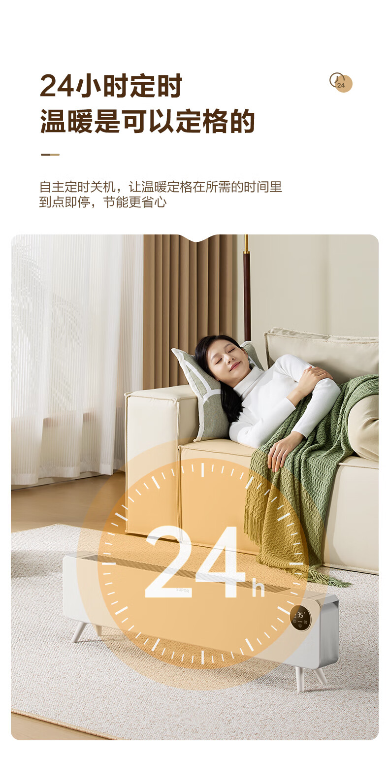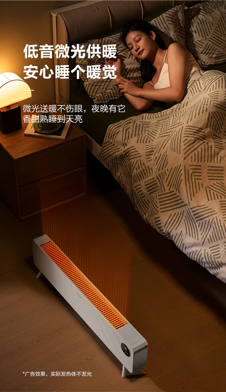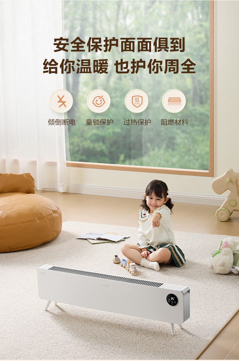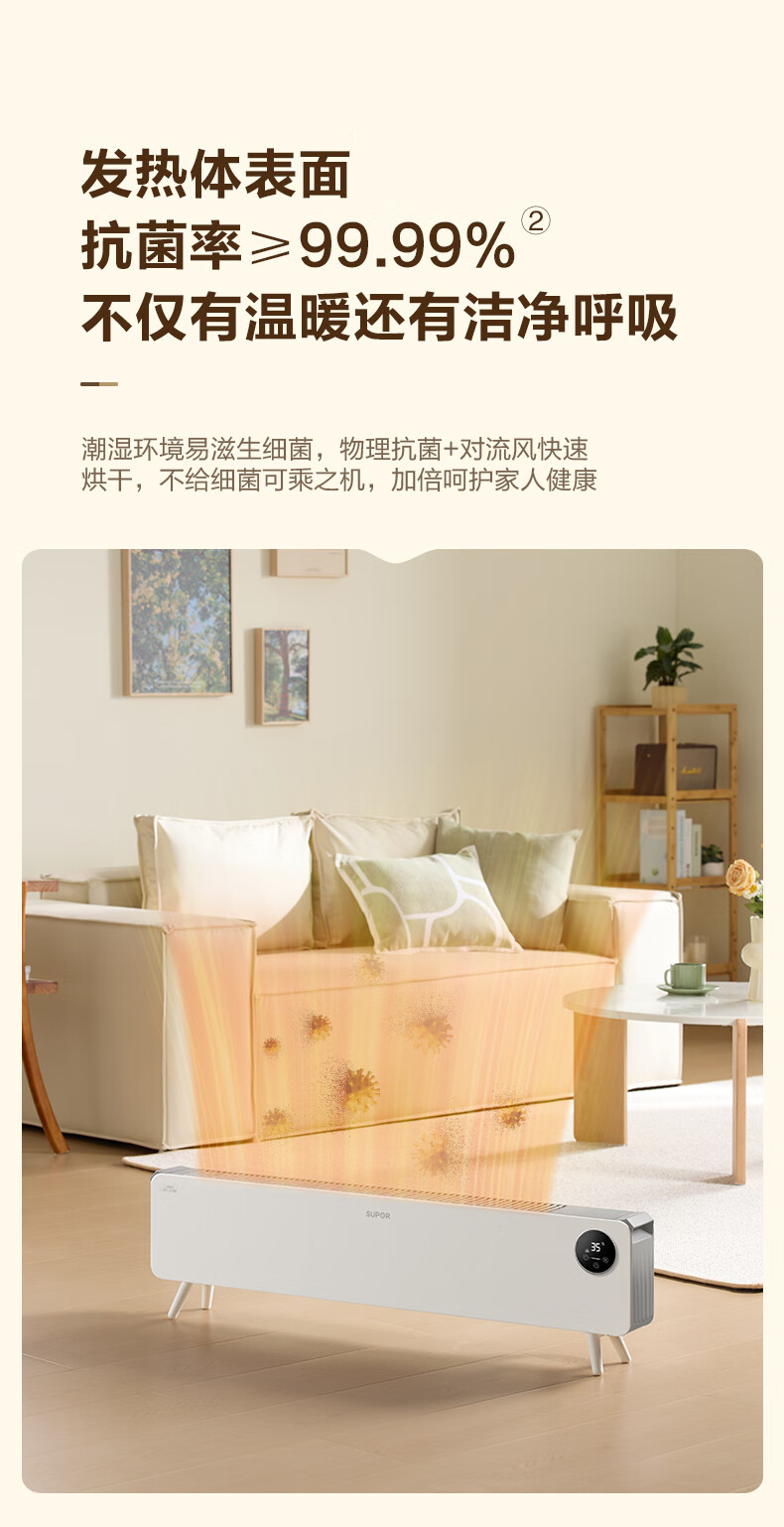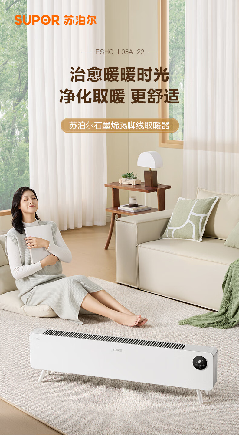 苏泊尔石墨烯踢脚线取暖器电暖气电暖器家用暖气片移动地暖IPX4级防水居浴两用对流卧室办公室暖脚 【遥控+声控】ESHC-L06A-22/珍珠白