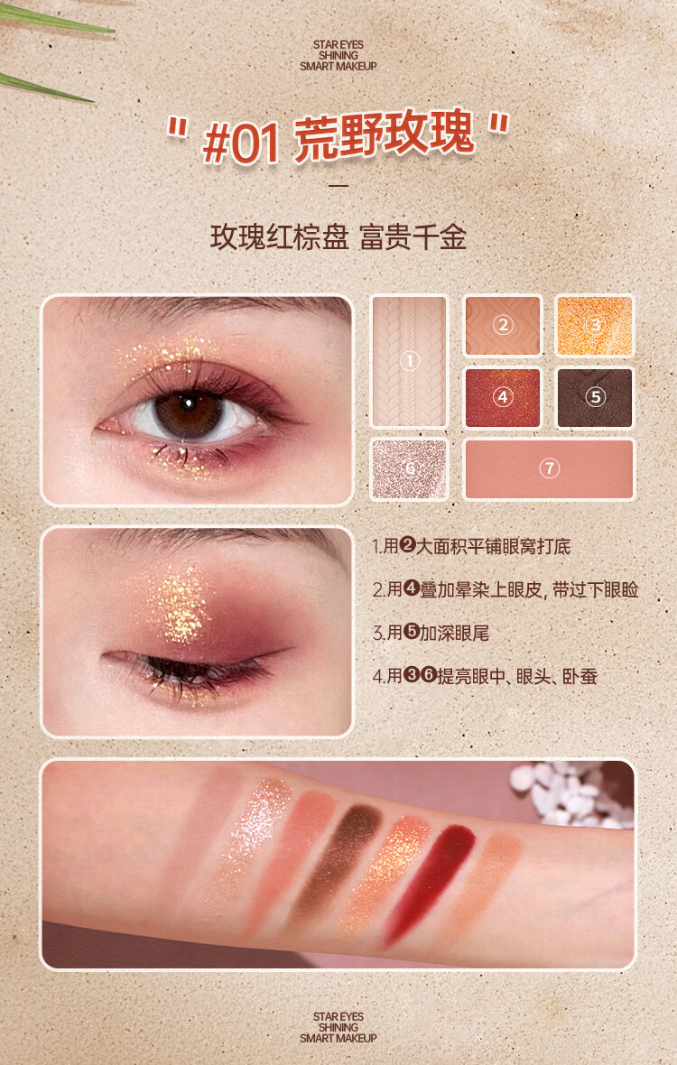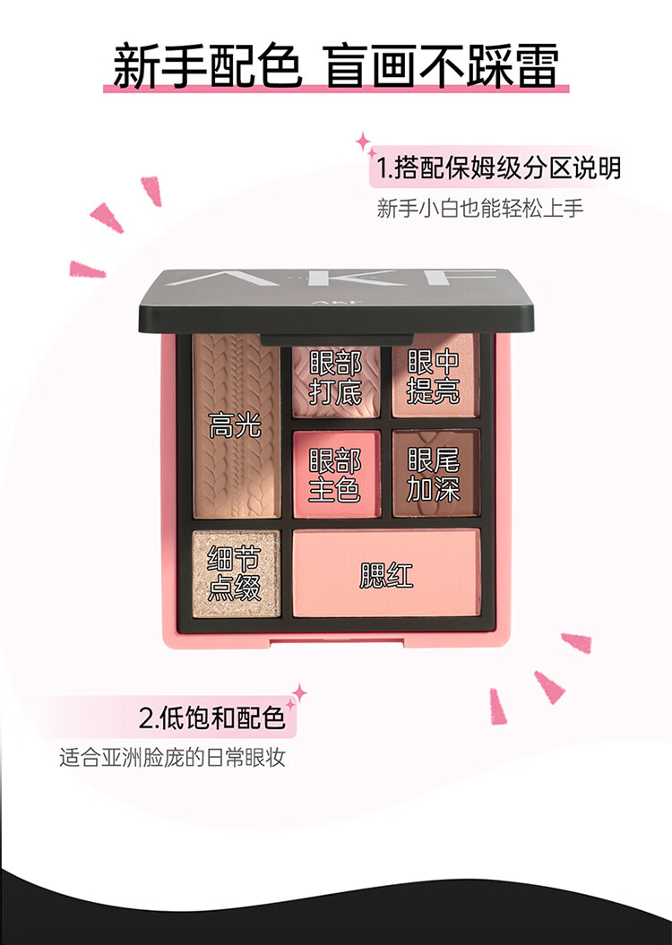 AKF眼影盘腮红高光提亮卧蚕修容盘哑光珠光细闪易上色全妆一体盘礼物 #01荒野玫瑰[玫瑰红棕盘]