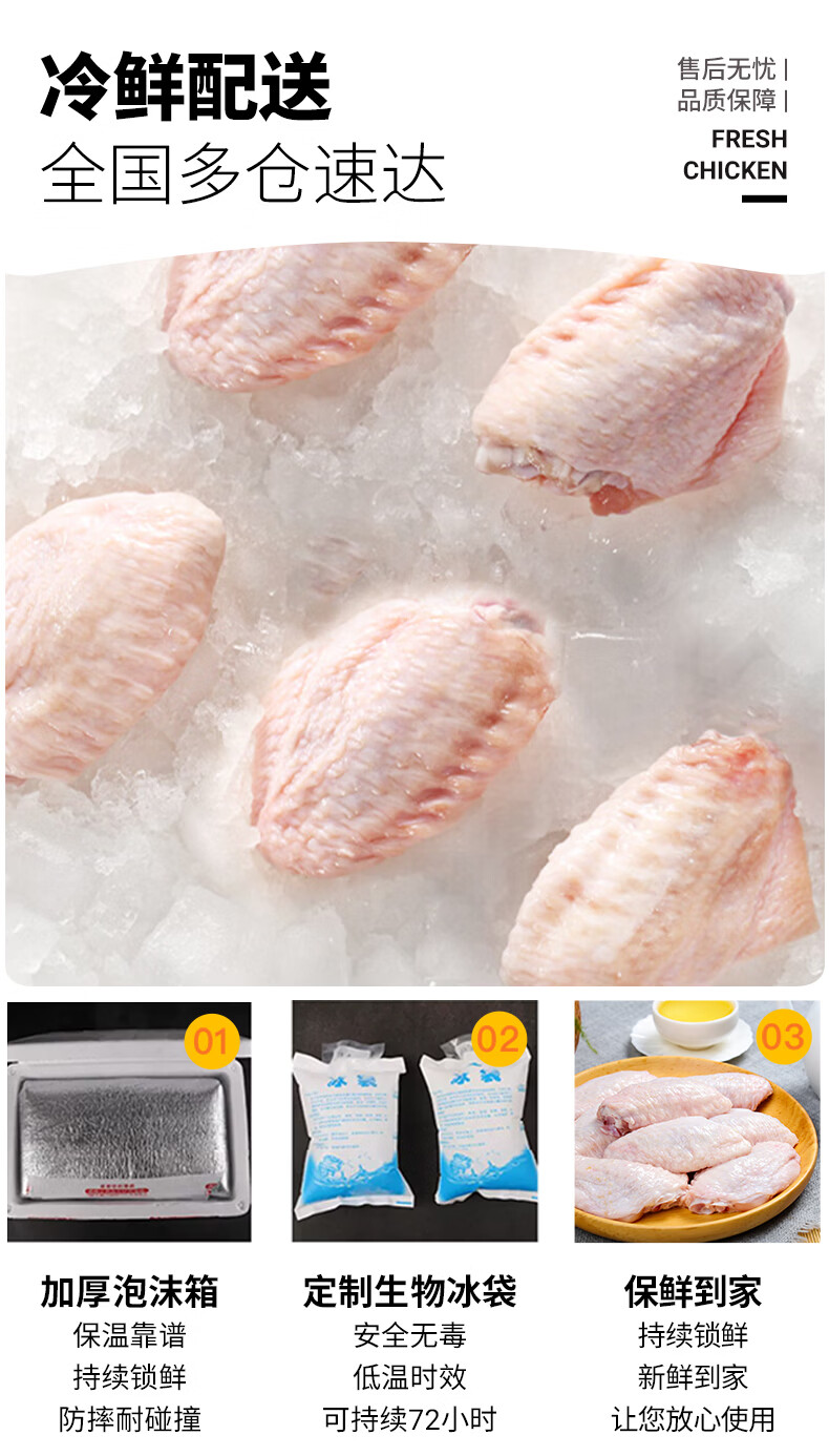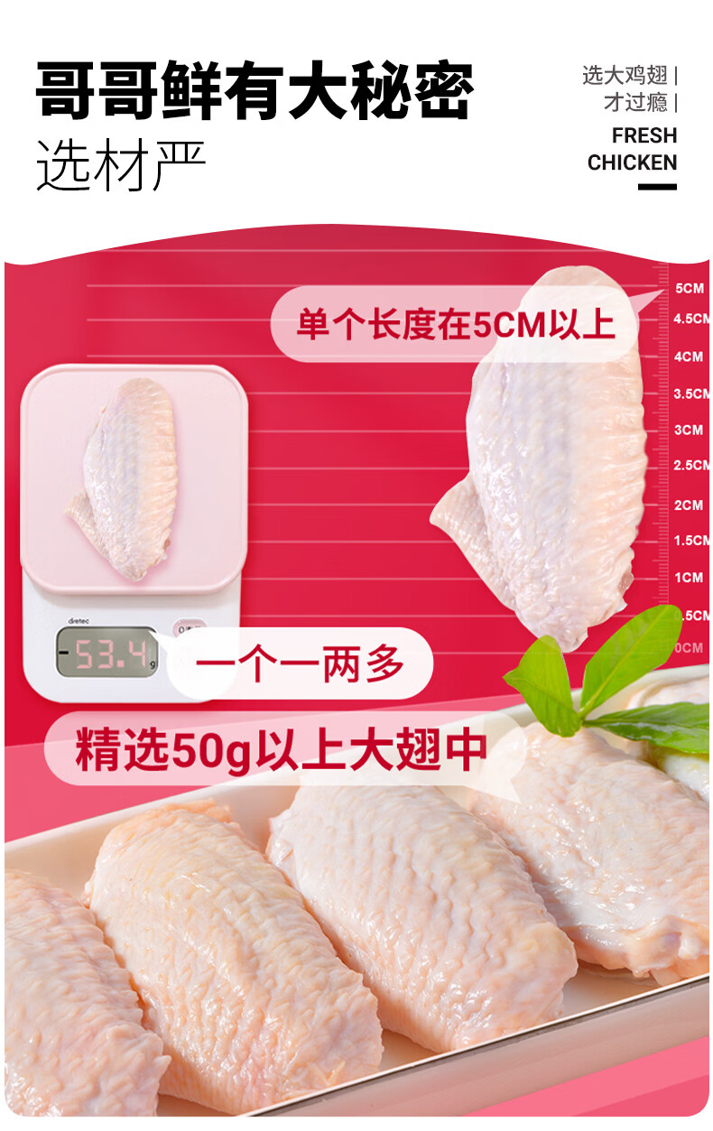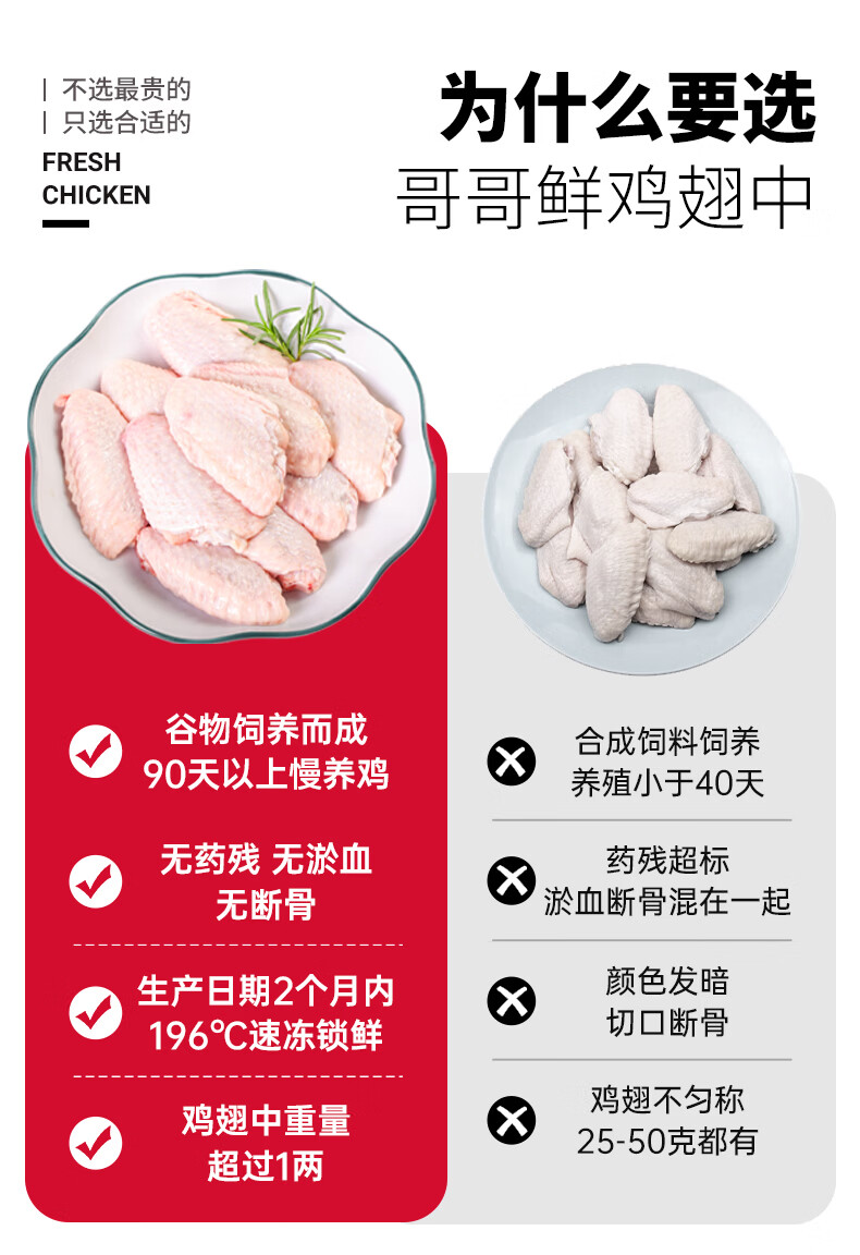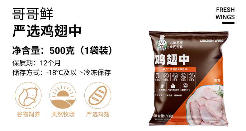 哥哥鲜鸡翅翅中散养大号鸡翅中速冻鸡中翅食材新鲜冷冻无抗鲜嫩食材 鸡翅中500g*4袋