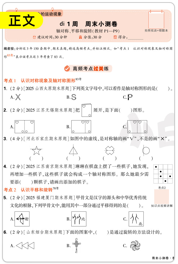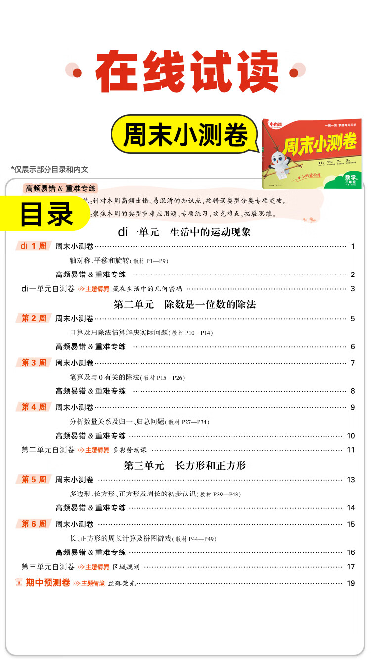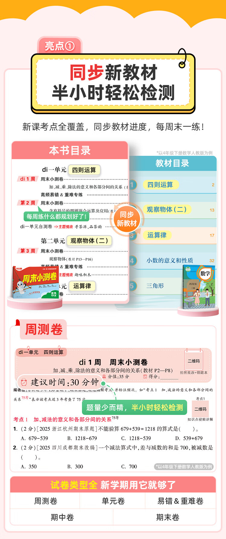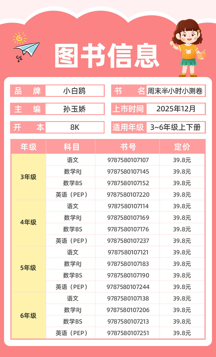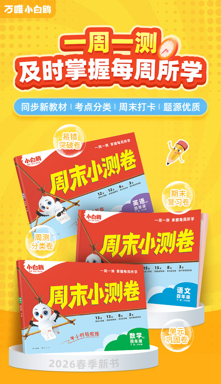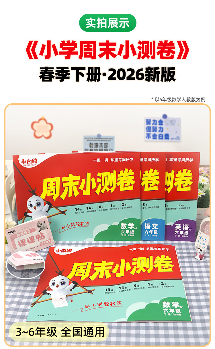万唯小白鸥周末半小时小测卷2026春季小学语文数学英语三年级四五六上下册教材同步期中期末单元练习册试卷学霸思维训练天天练小白鸽情景题 三年级下册 数学【人教版】