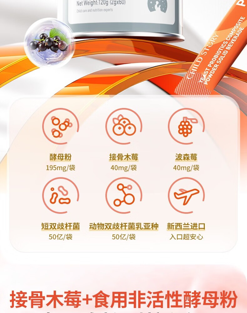 童年故事新款进口 爱彼呵酵母益生菌复合粉 含益生元波森莓接骨木莓粉剂 【热门款】爱彼呵粉剂60袋原装进口