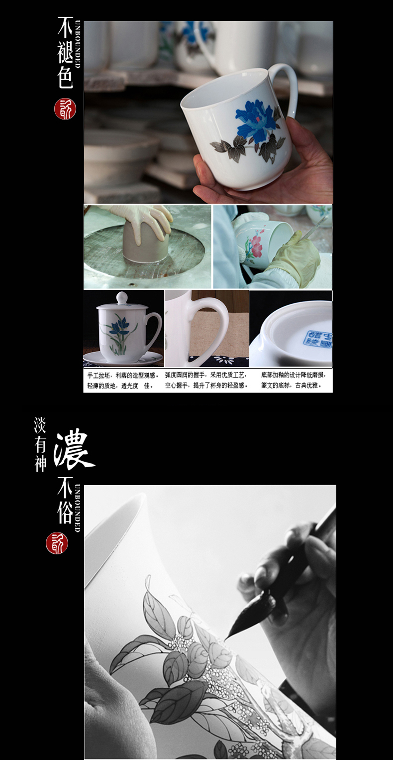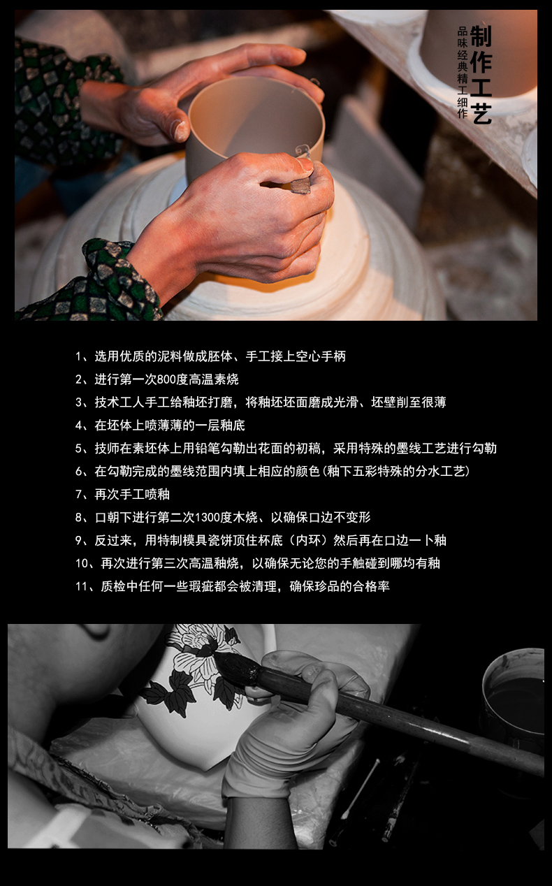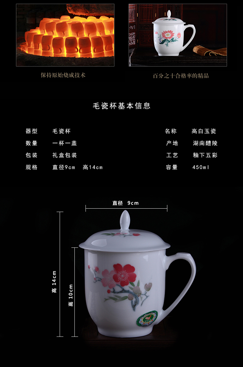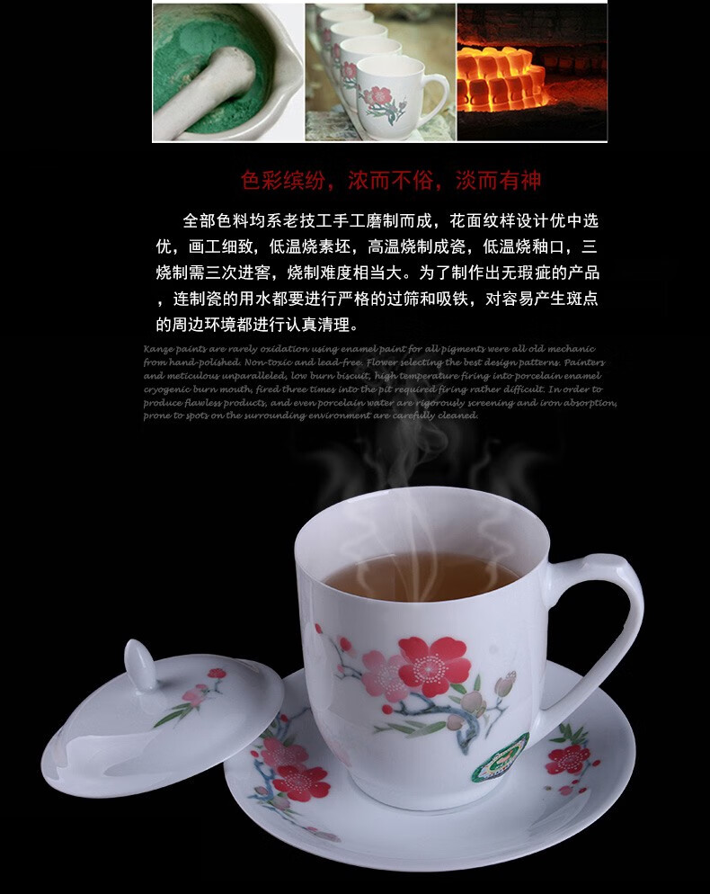 苗苗红茶杯陶瓷高级釉下五彩纯手绘泡茶水杯子春节会议商务礼品定制CZY 兰花红-锦盒470ml1只