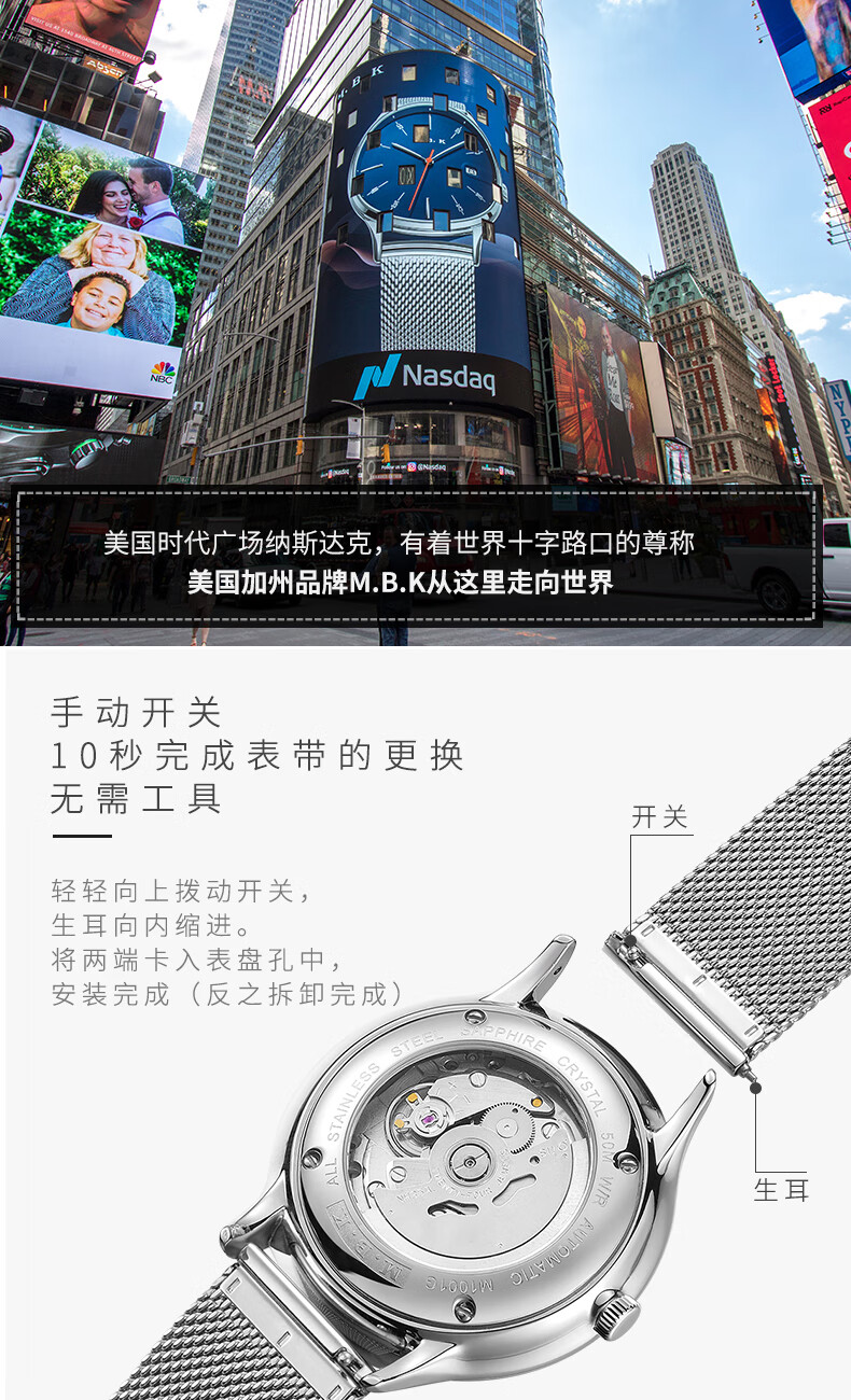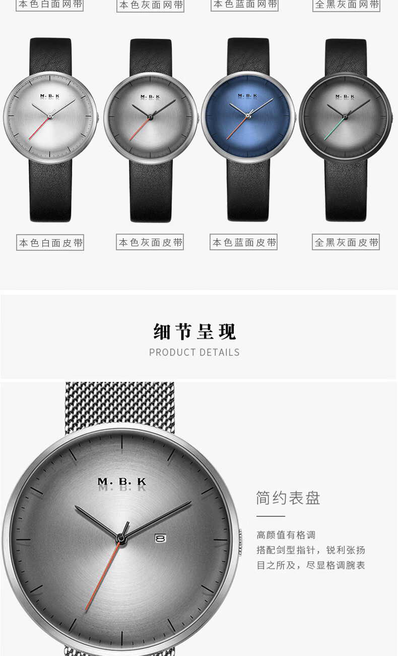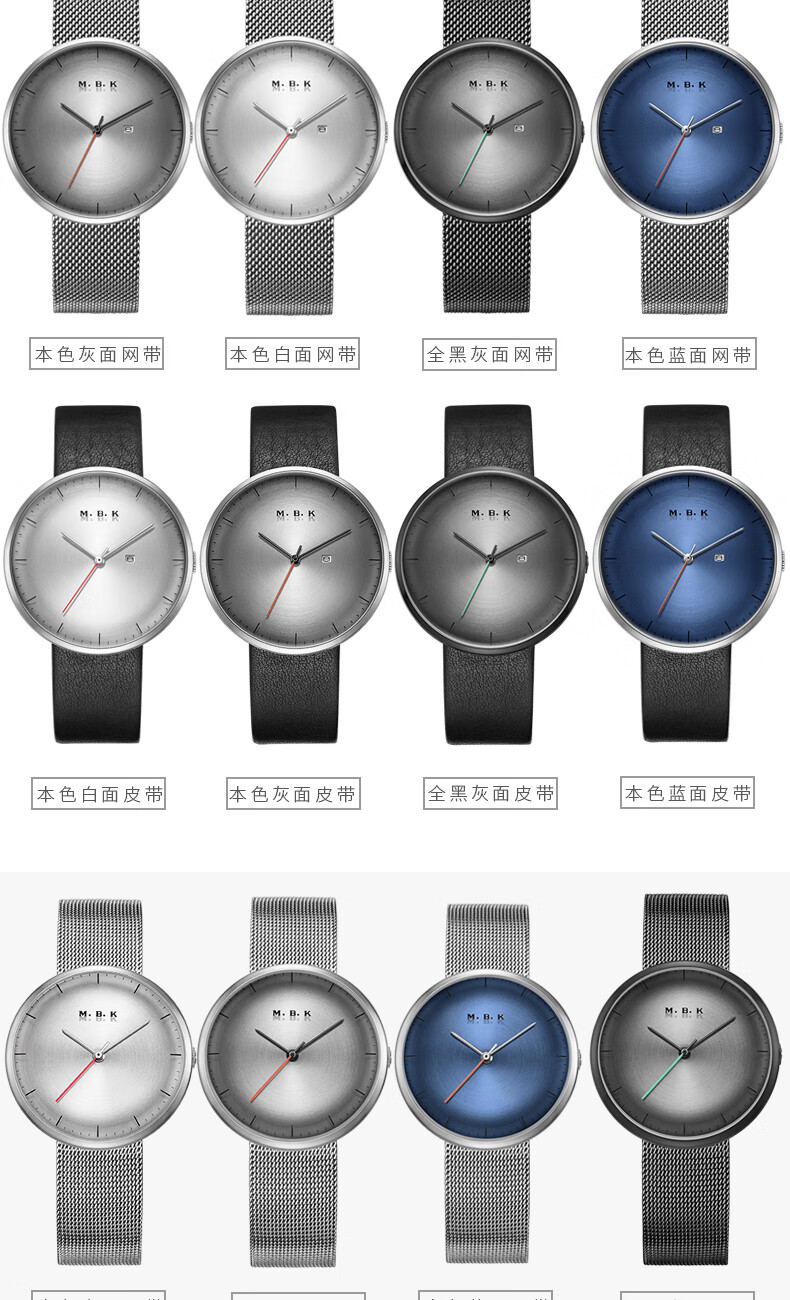 M.B.K美国品牌进口手表女潮流女士手表格简约休闲腕表时尚商务女表品牌 本色蓝面皮带【进口机芯】