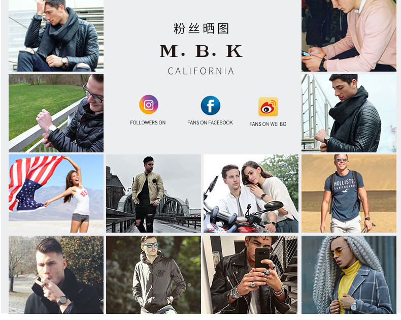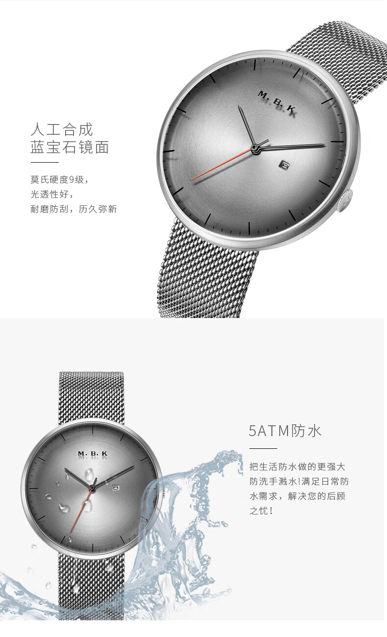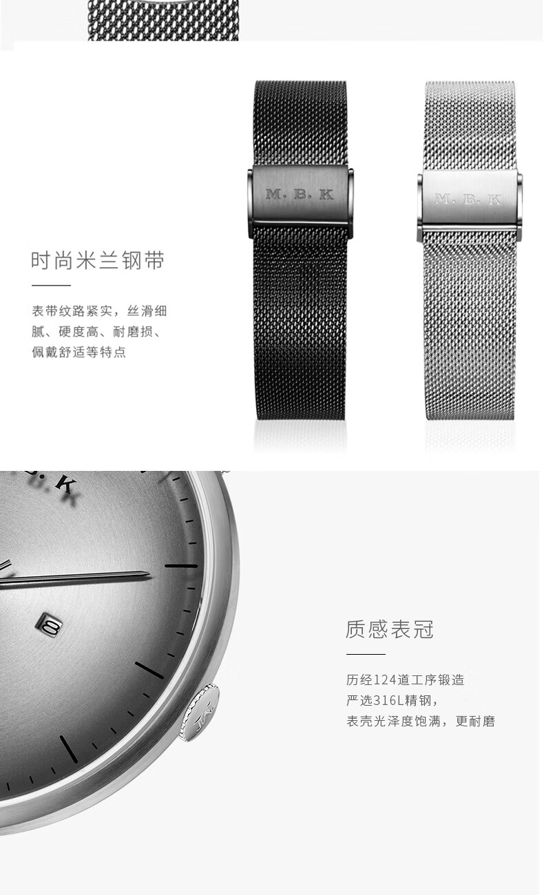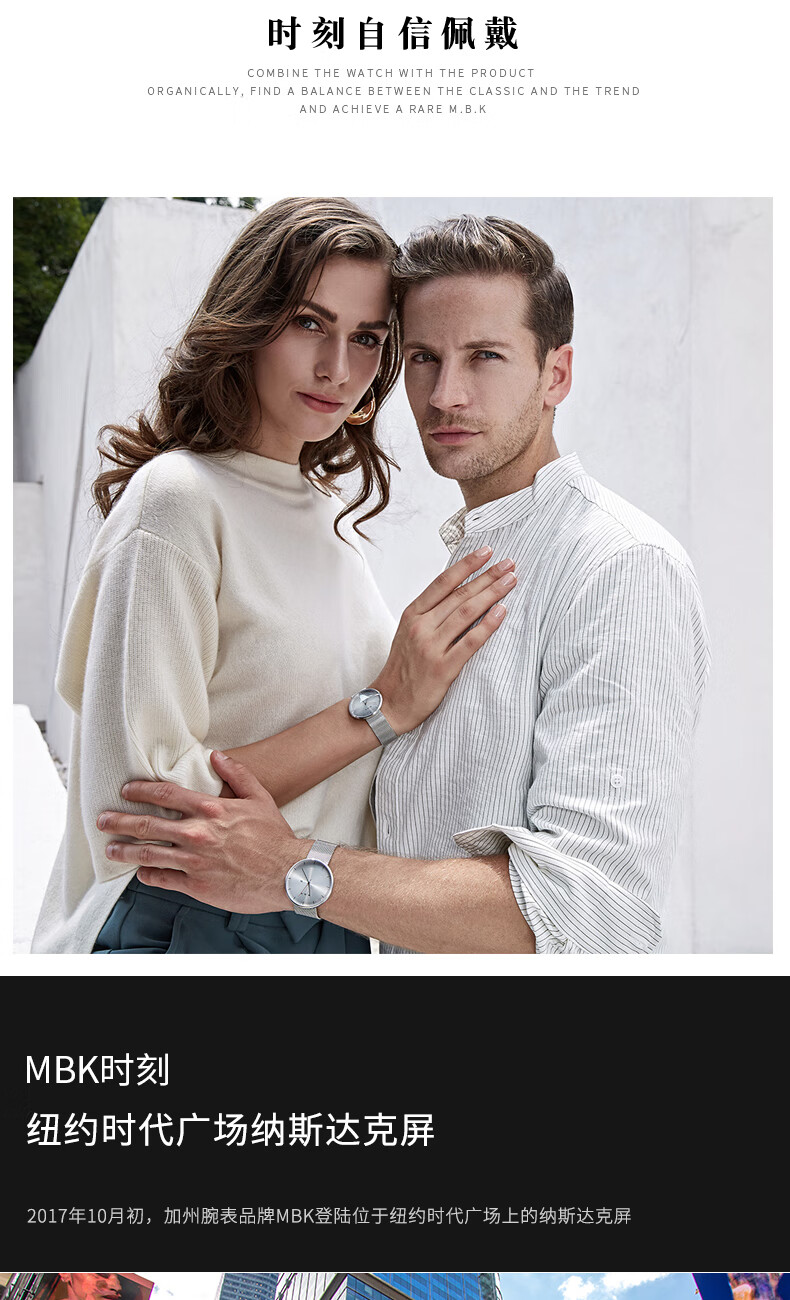 M.B.K美国品牌进口手表女潮流女士手表格简约休闲腕表时尚商务女表品牌 本色蓝面皮带【进口机芯】