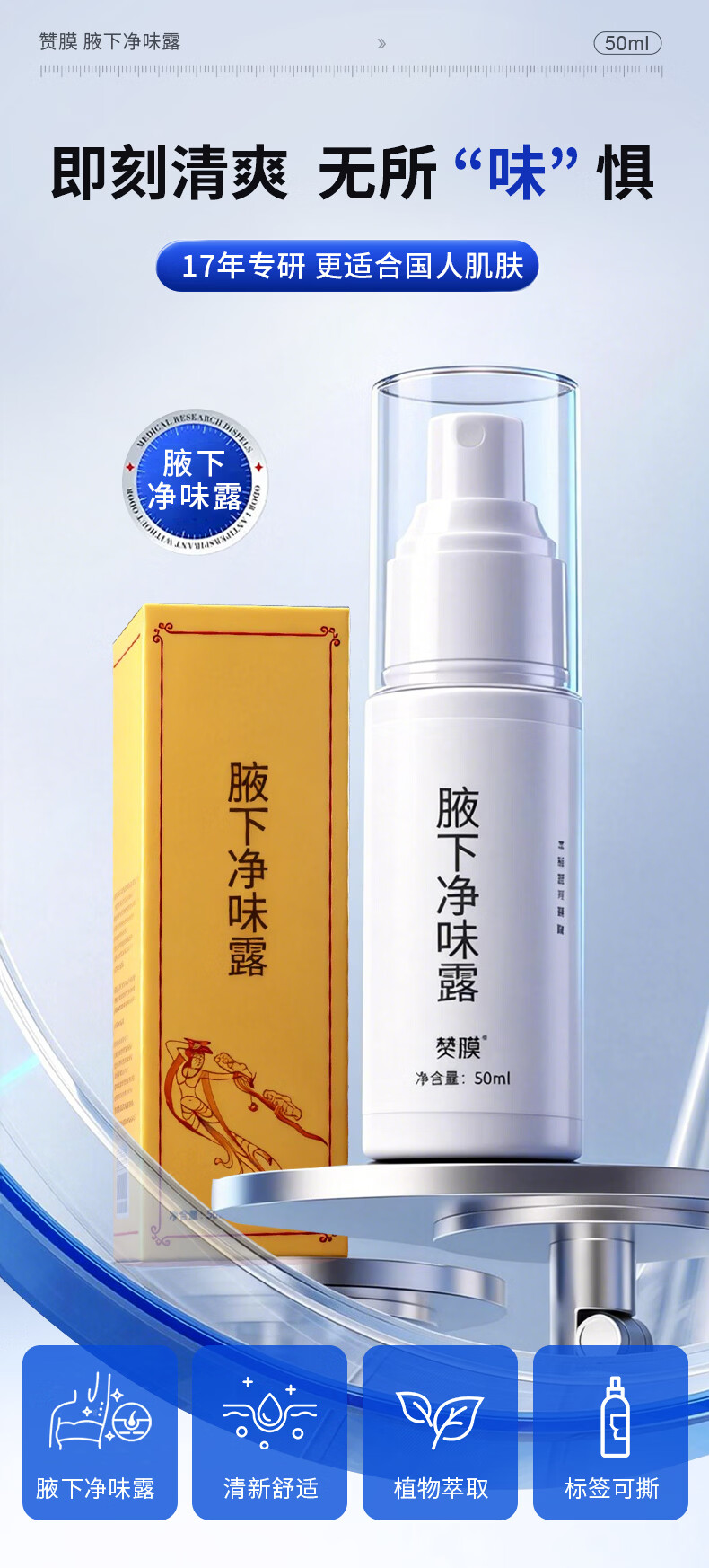 赞膜腋下净味露含多种植物成分 肌肤清新干爽舒适药房直发正品保障 50ml 1瓶