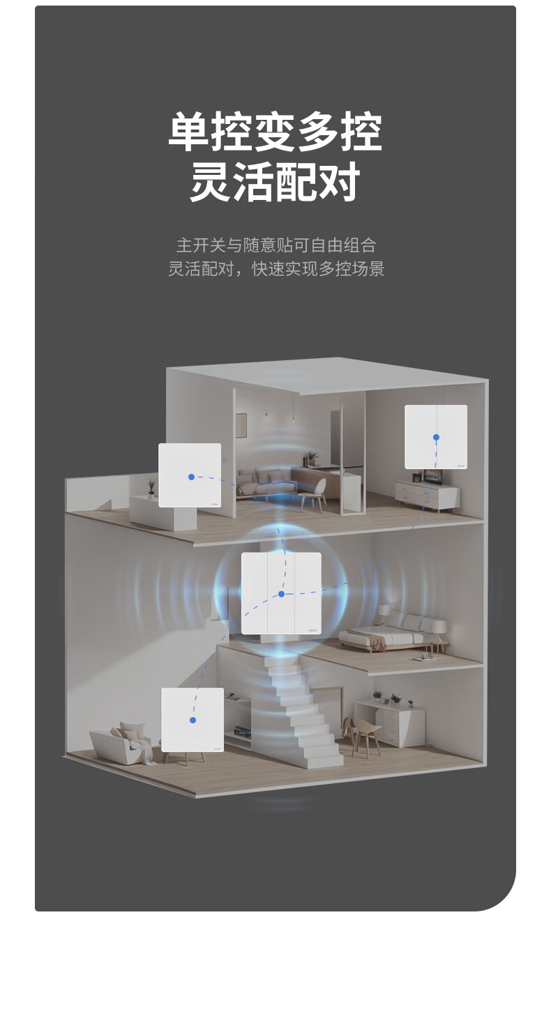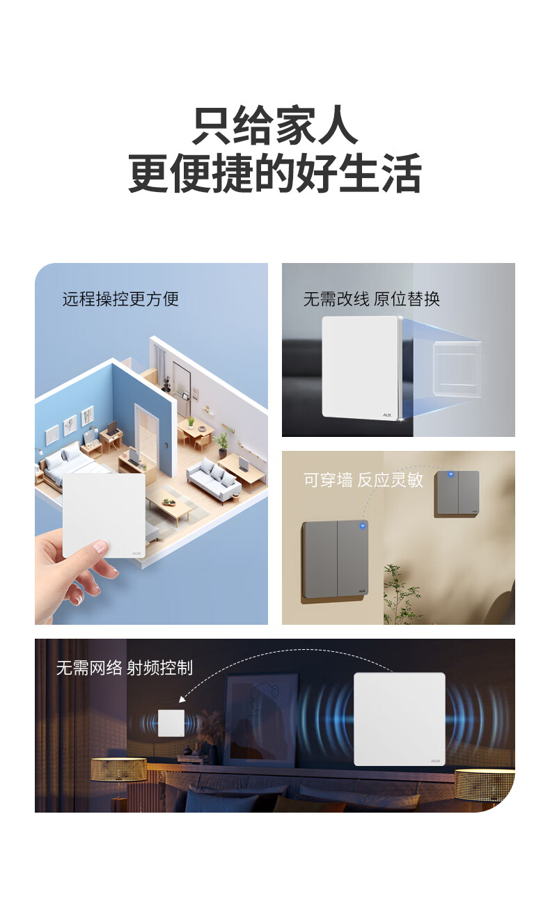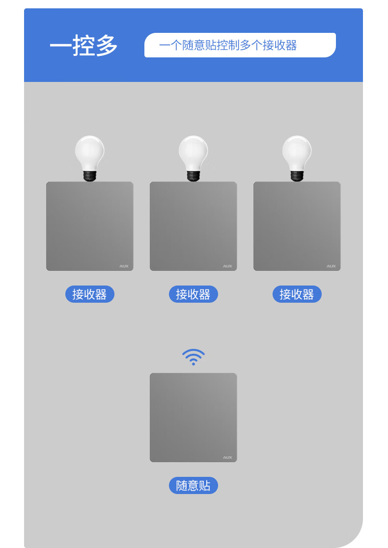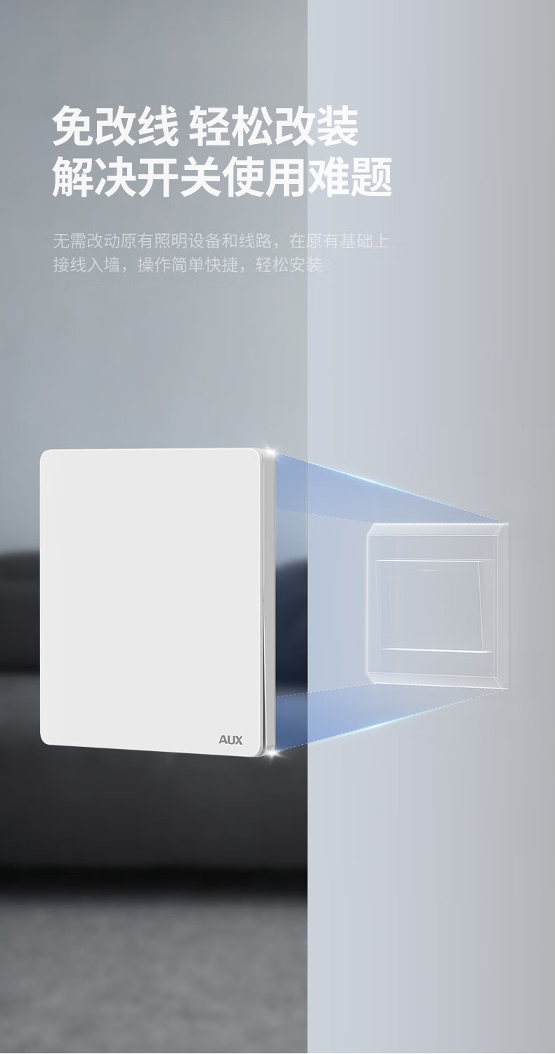 奥克斯开关面板智能开关更换便捷免布线无线插座面板220v遥控随意贴开关 一开白套装:主开关*1+随意贴*1