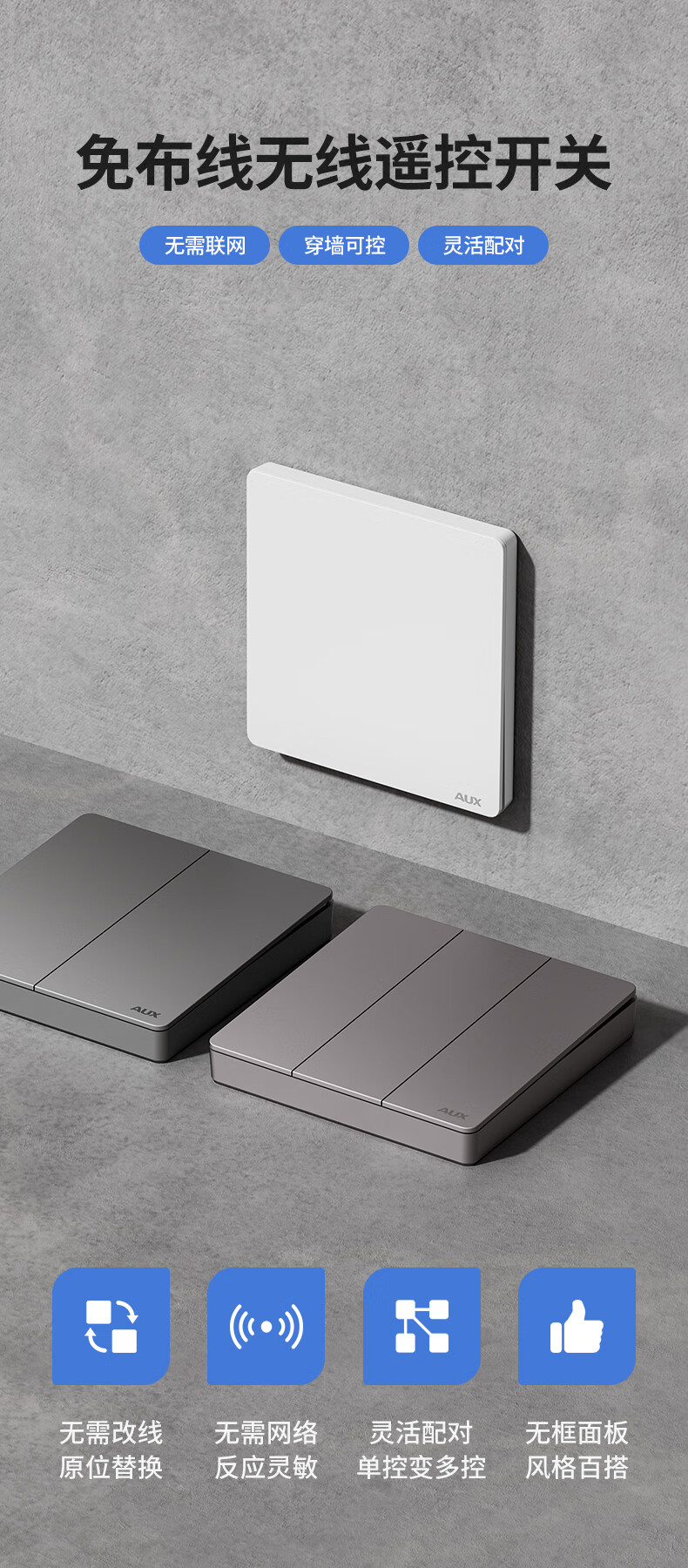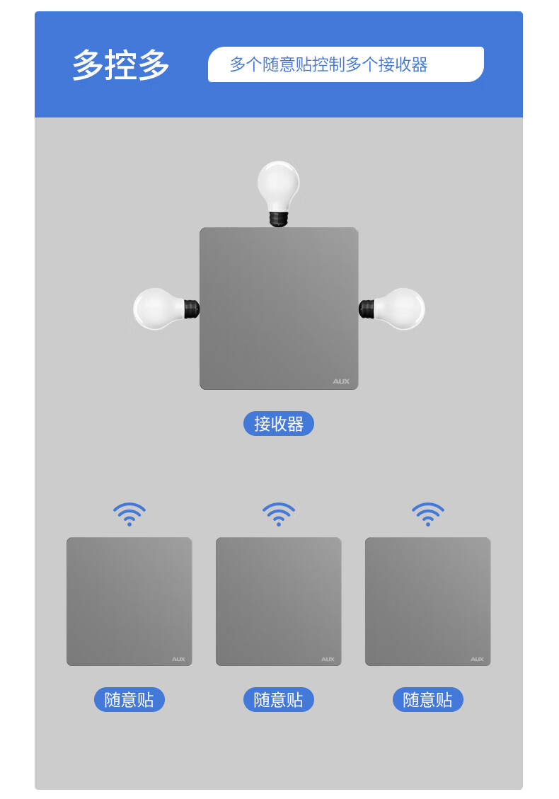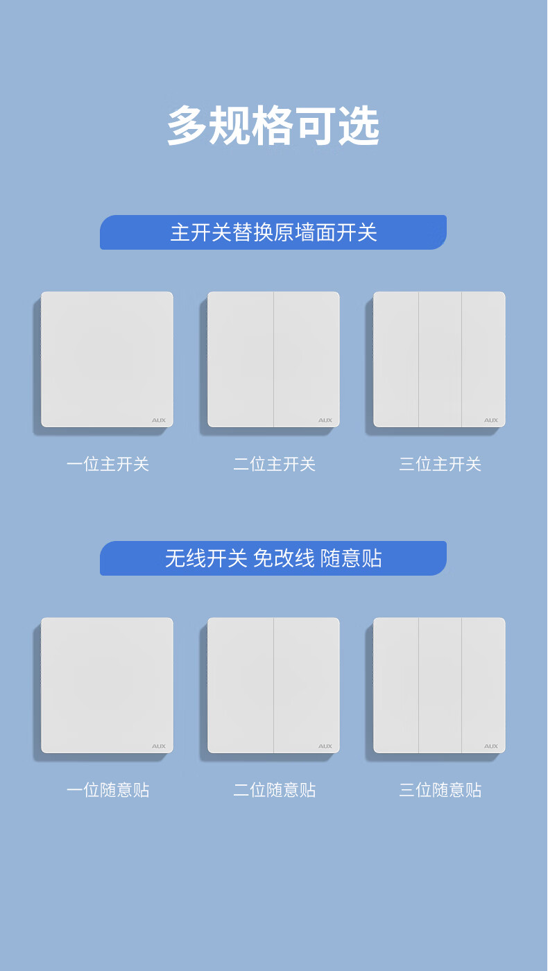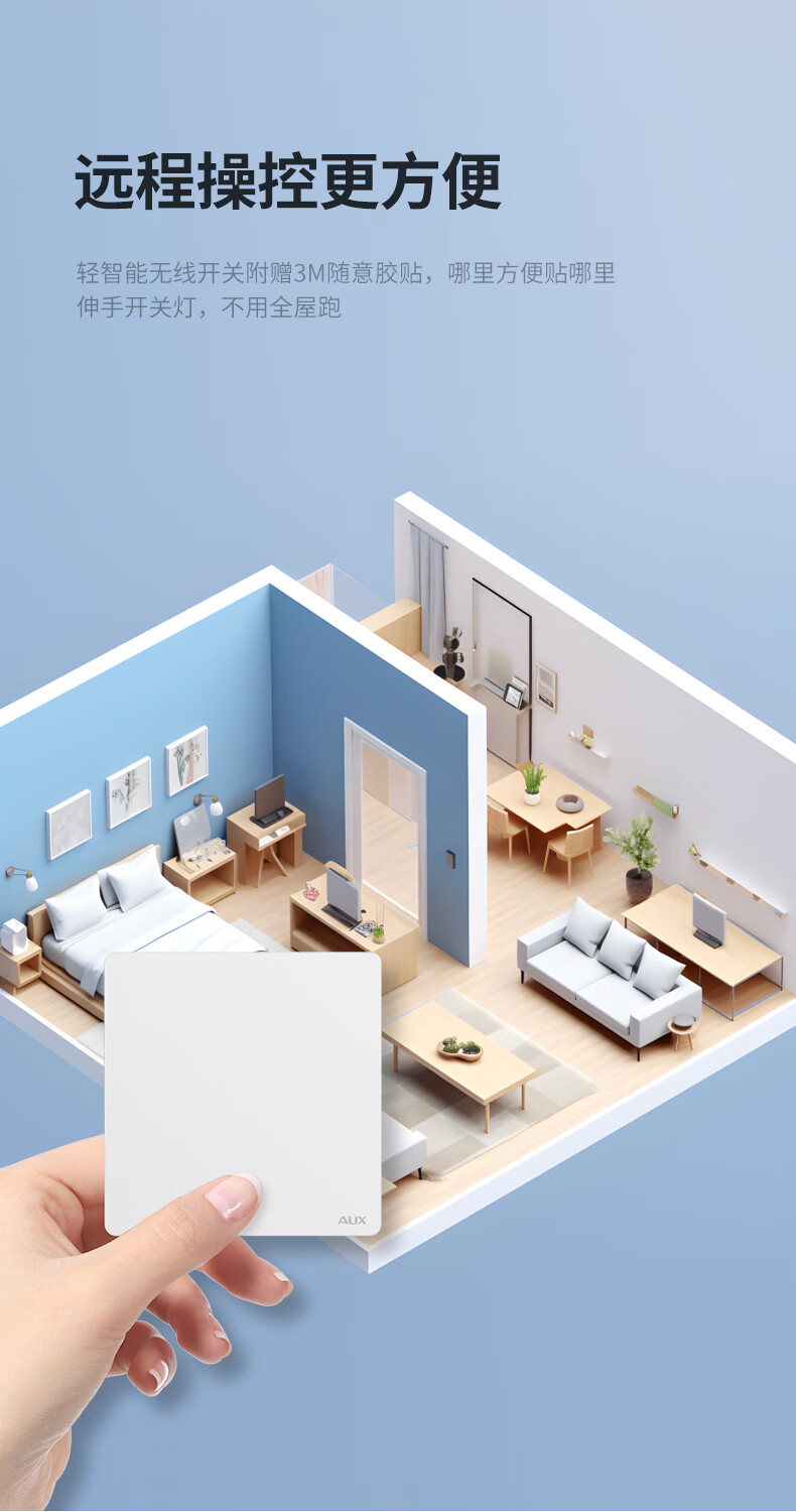 奥克斯开关面板智能开关更换便捷免布线无线插座面板220v遥控随意贴开关 一开白套装:主开关*1+随意贴*1