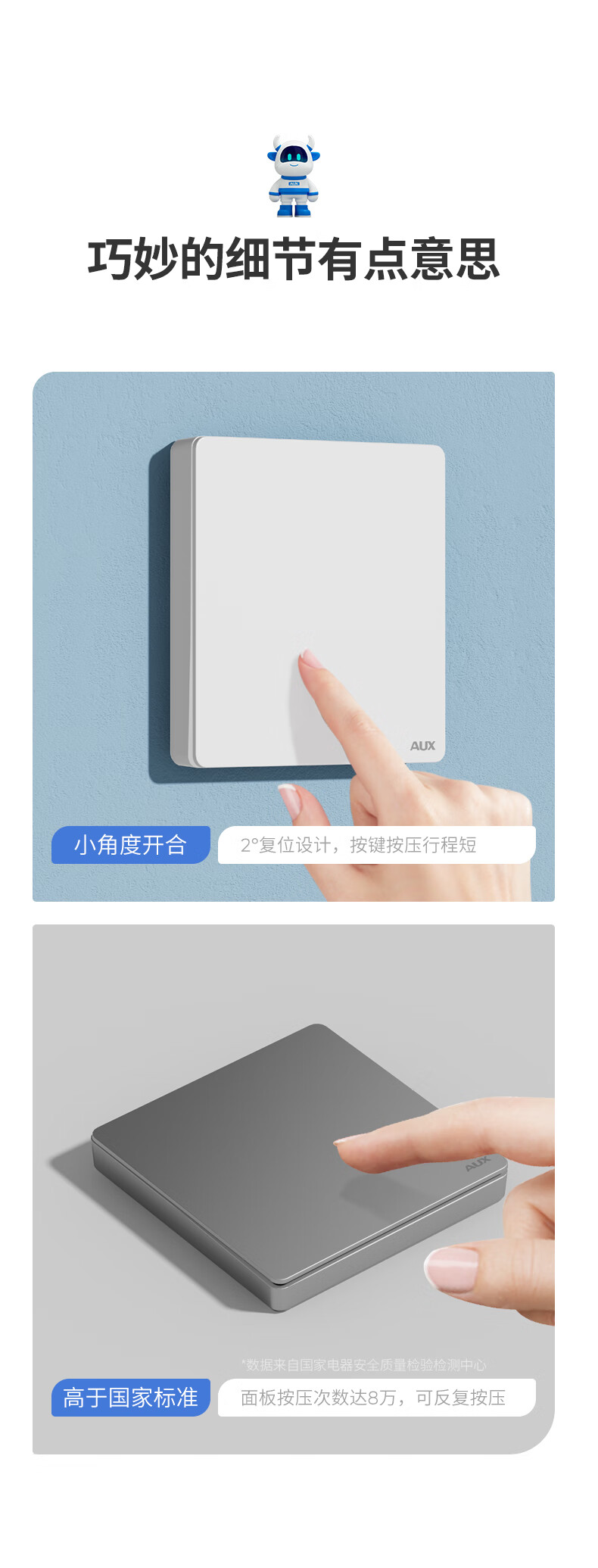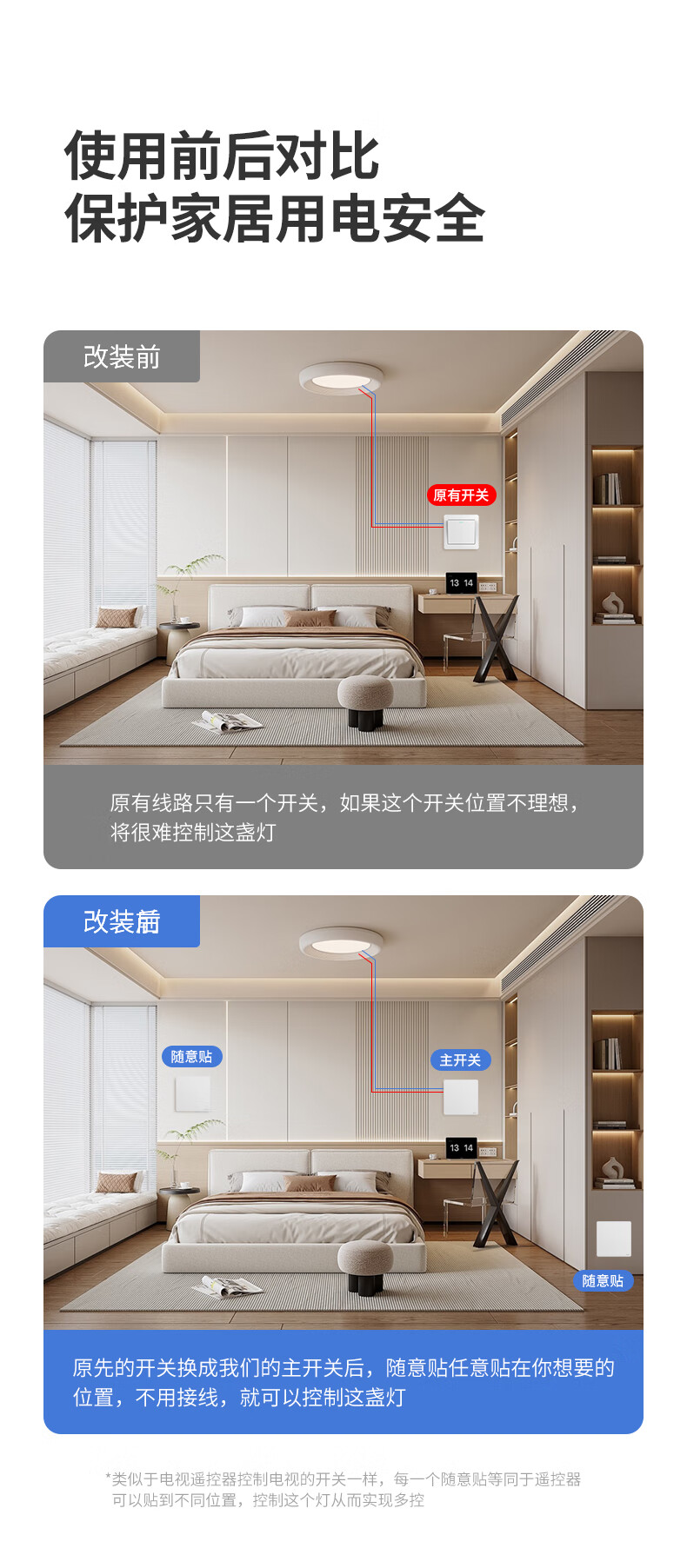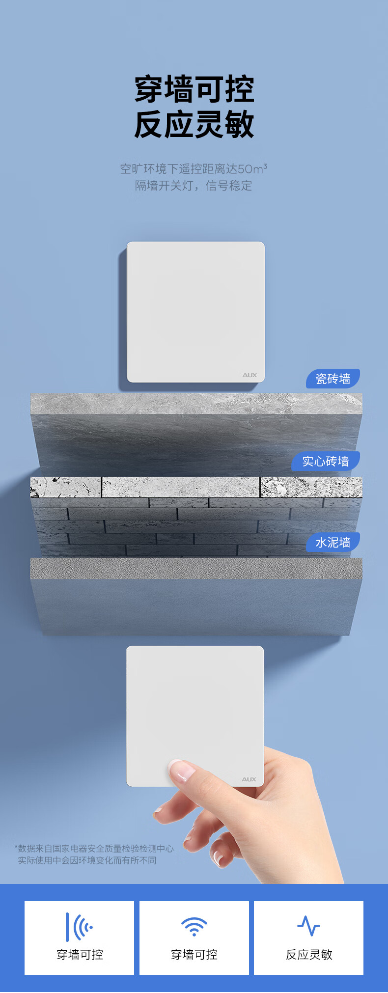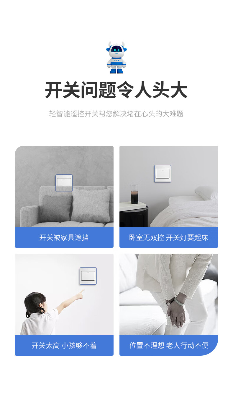 奥克斯开关面板智能开关更换便捷免布线无线插座面板220v遥控随意贴开关 一开白套装:主开关*1+随意贴*1