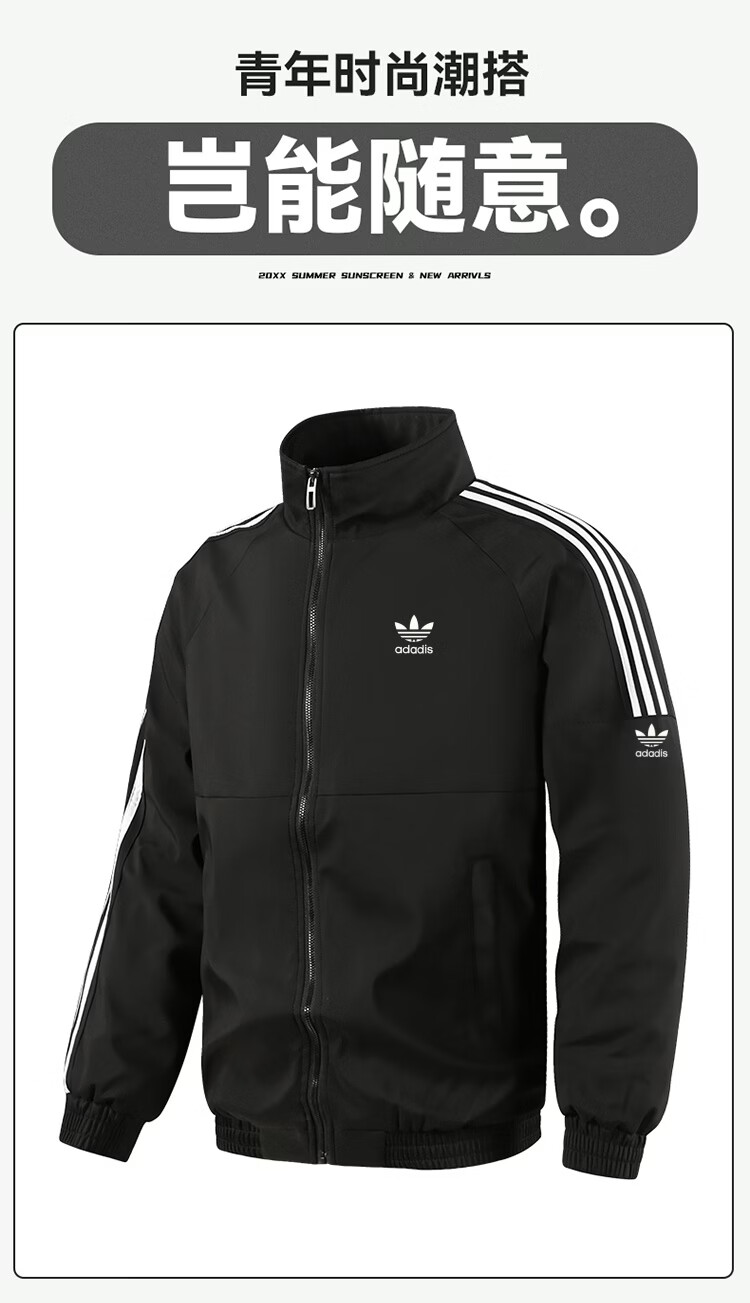 Y-3阿迪三叶草春秋冬季男女同款休闲运动经典立领夹克外套时尚百搭潮 8822 黑色春秋款 XL 建议体重125~140斤
