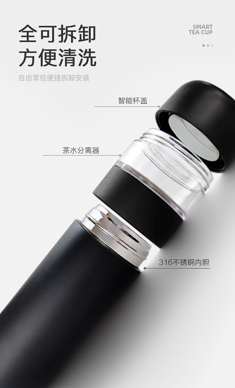恩尔美(nRMEi)保温杯男士磁吸泡茶水分离杯316不锈钢办公商务车载便携水瓶杯子 【磁吸泡茶】曜黑550ml