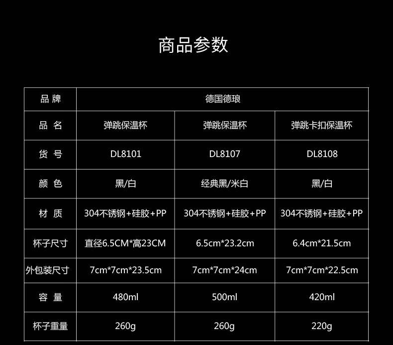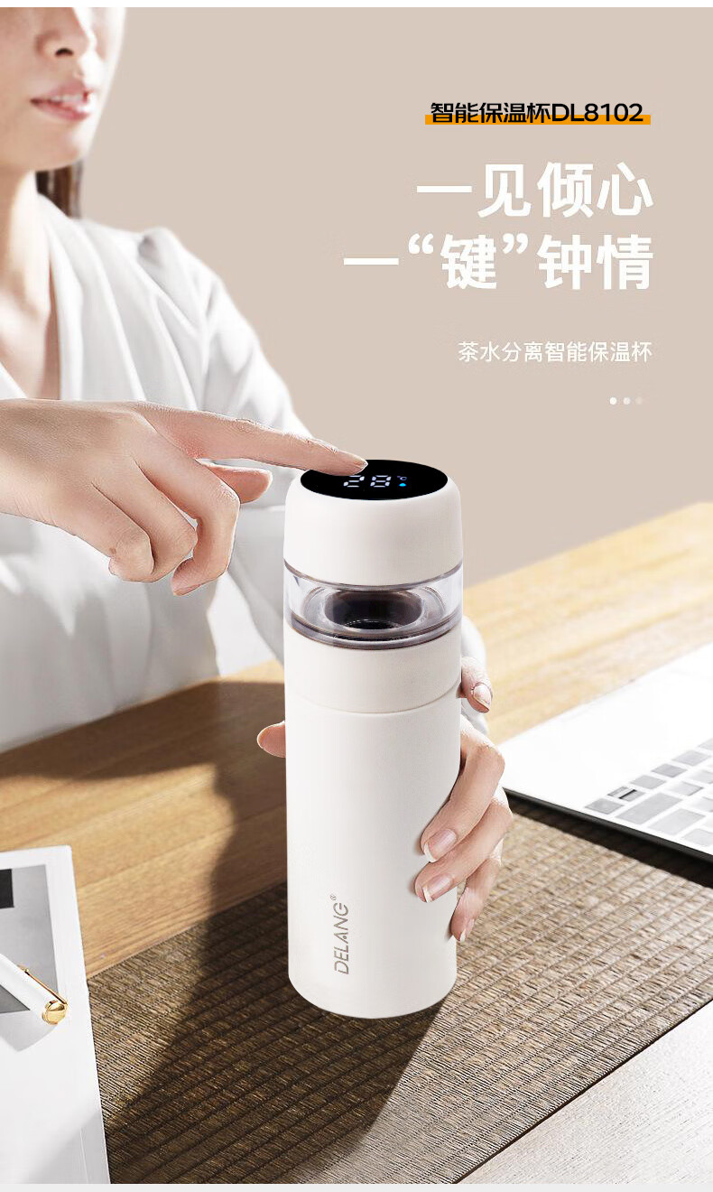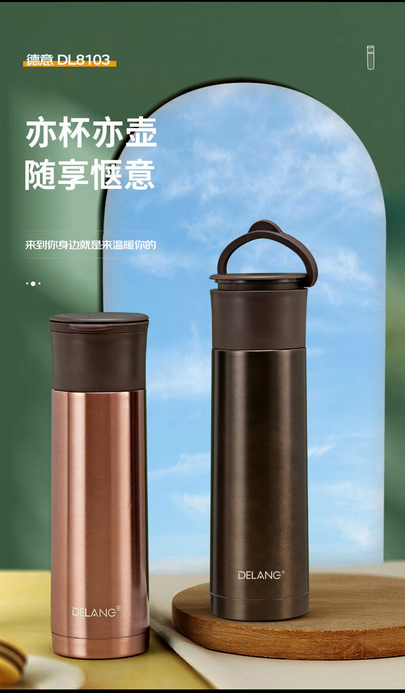 德琅(DELANG)保温杯办公商务保温杯 DL8108-420ml弹跳杯-象牙白