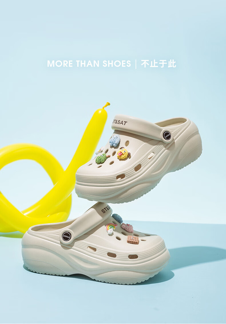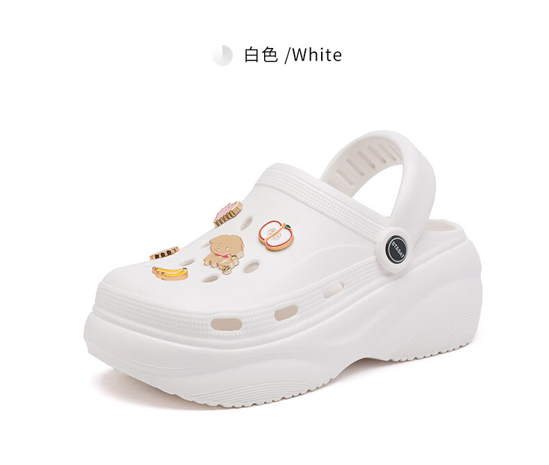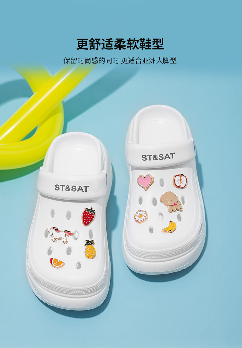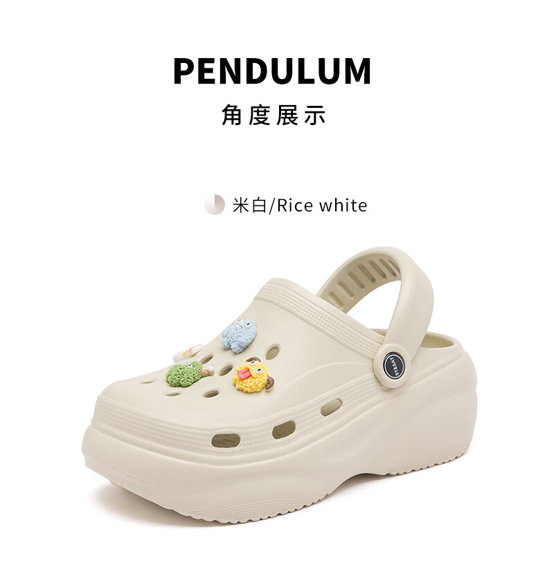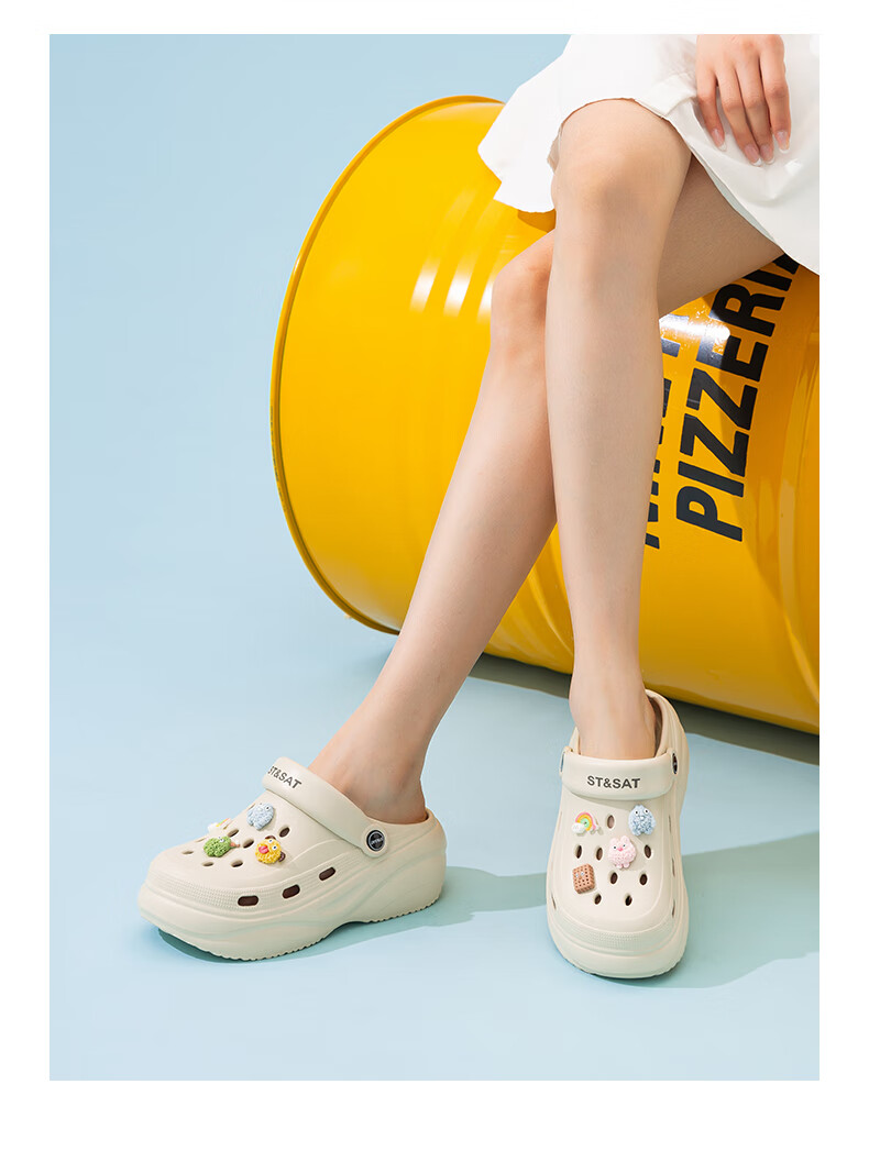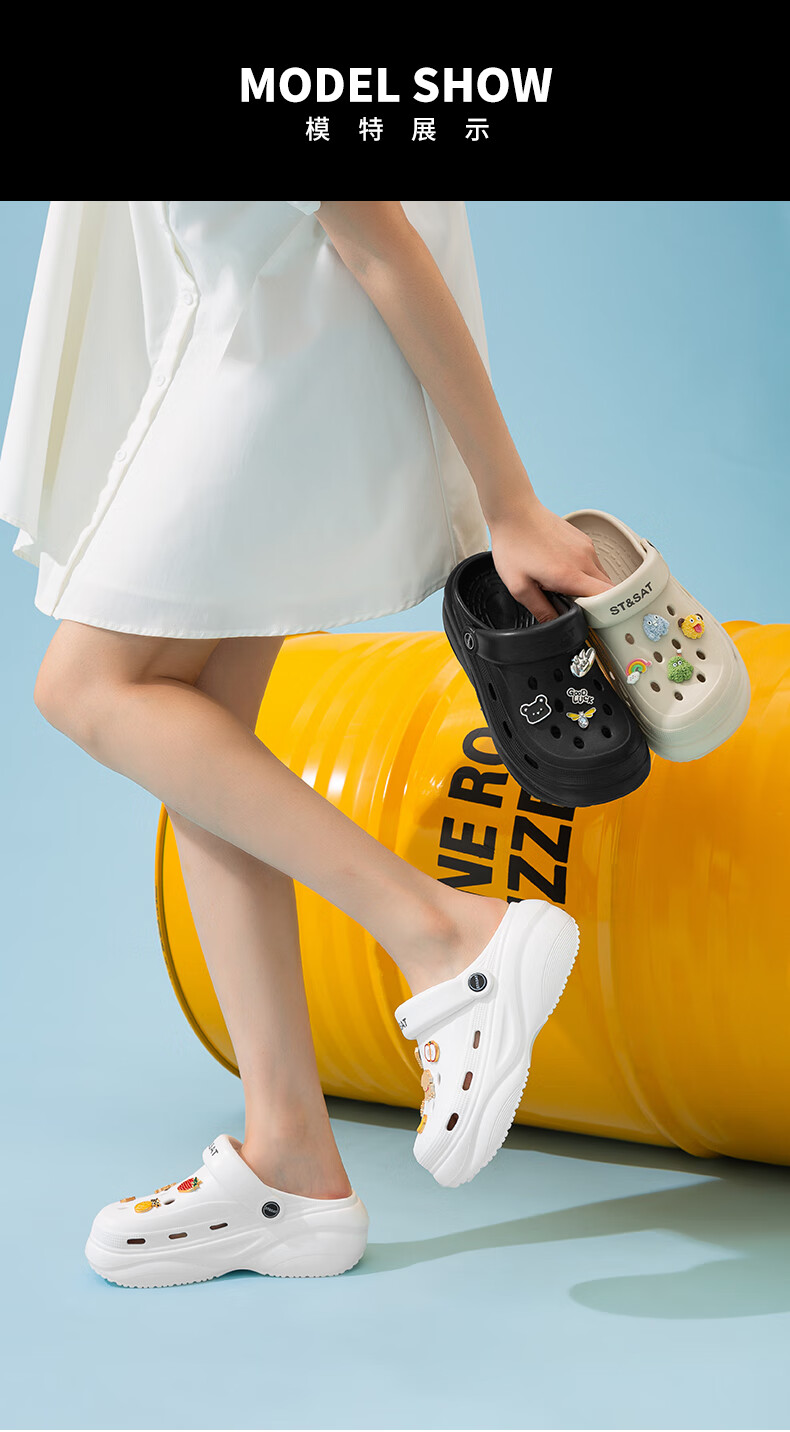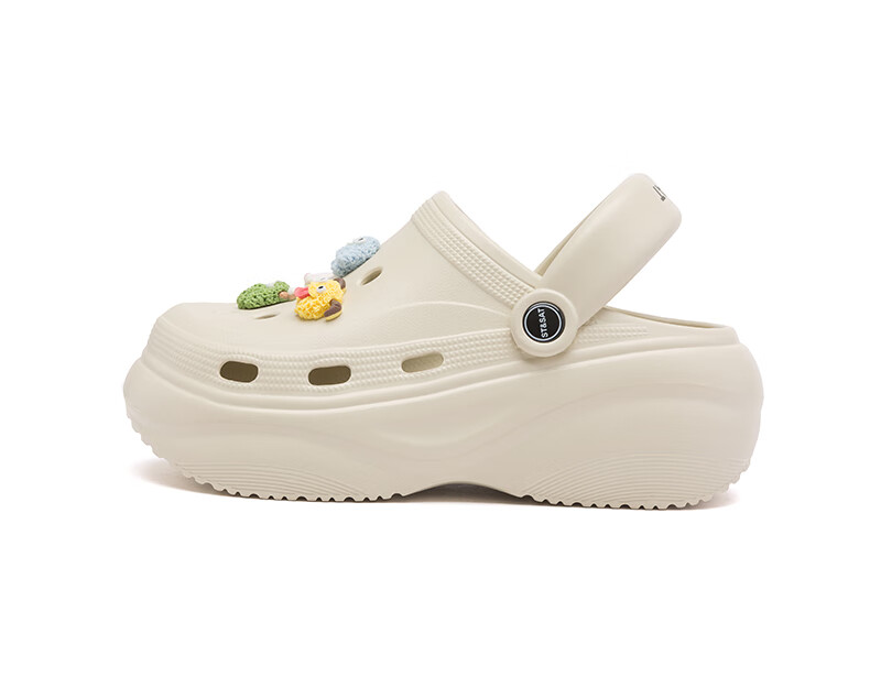 星期六厚底洞洞鞋女2026夏季新款外穿软底舒适防滑网红时尚沙滩凉拖鞋 米白色 【彩色小怪物】 35-36