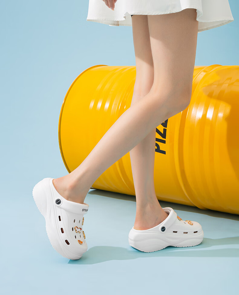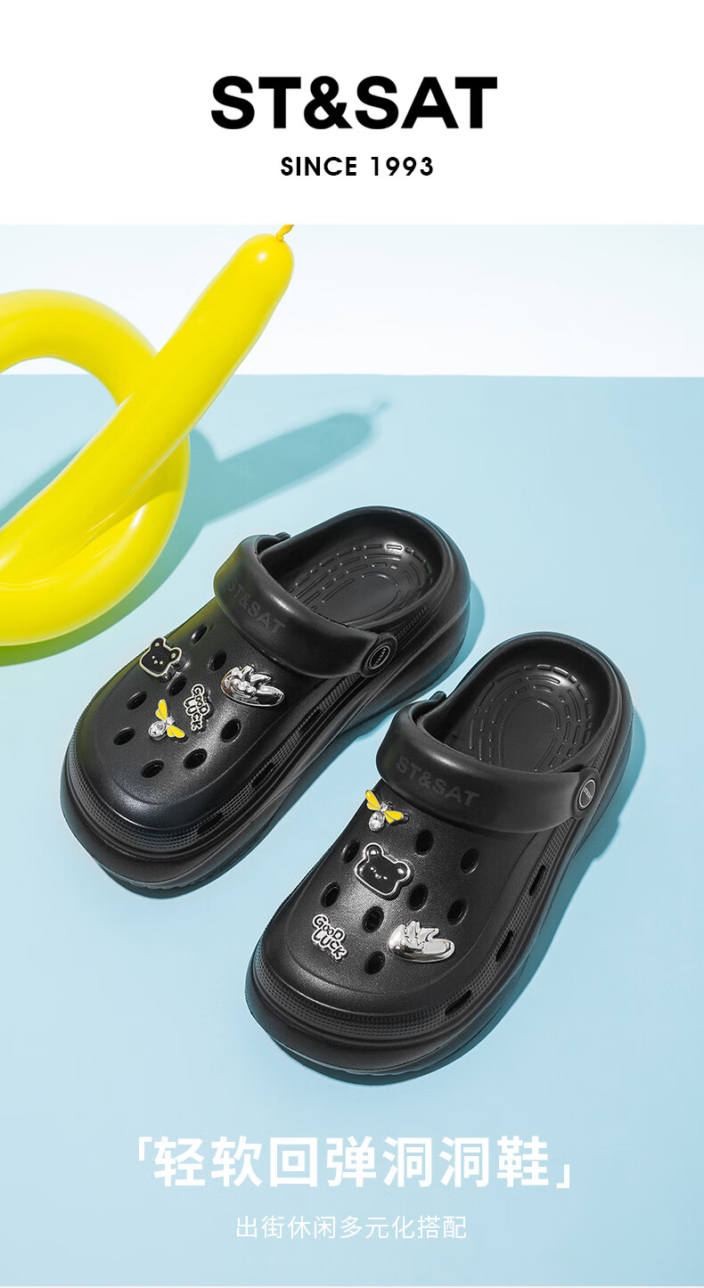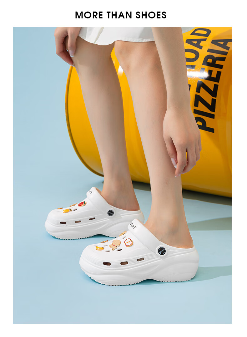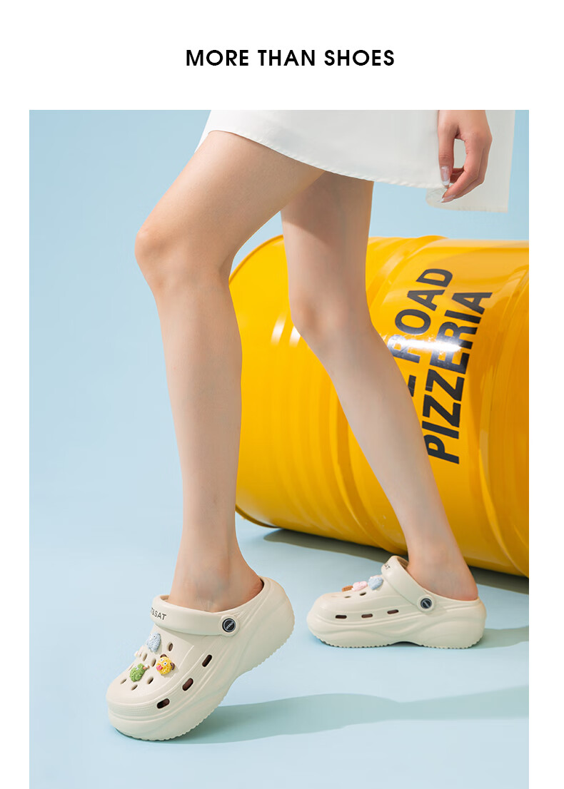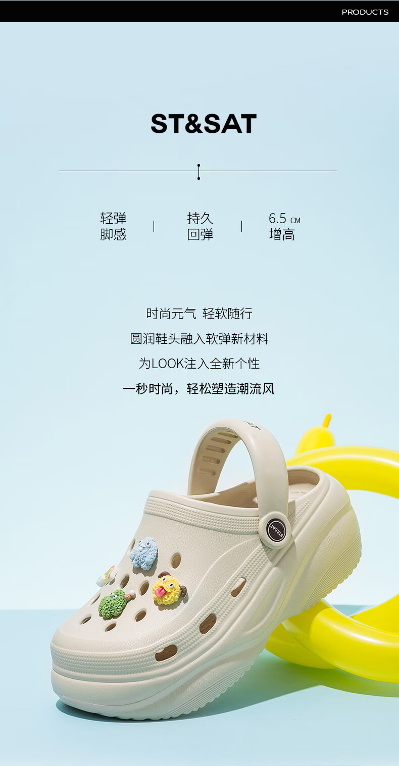 星期六厚底洞洞鞋女2026夏季新款外穿软底舒适防滑网红时尚沙滩凉拖鞋 米白色 【彩色小怪物】 35-36