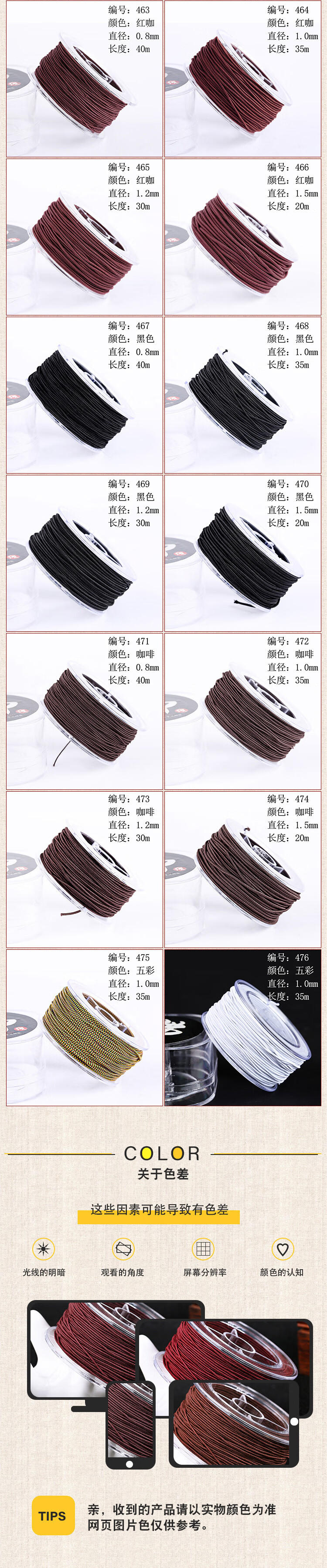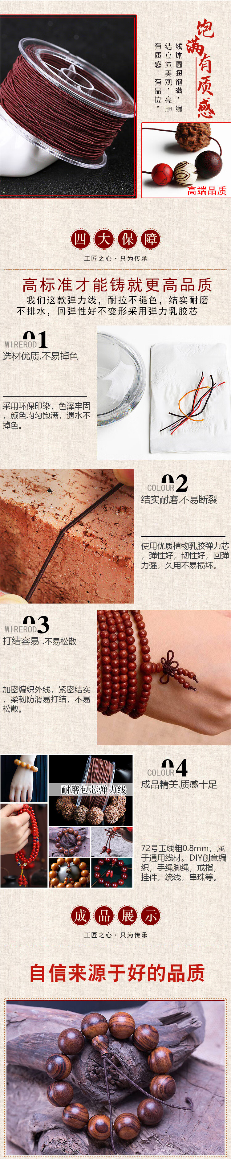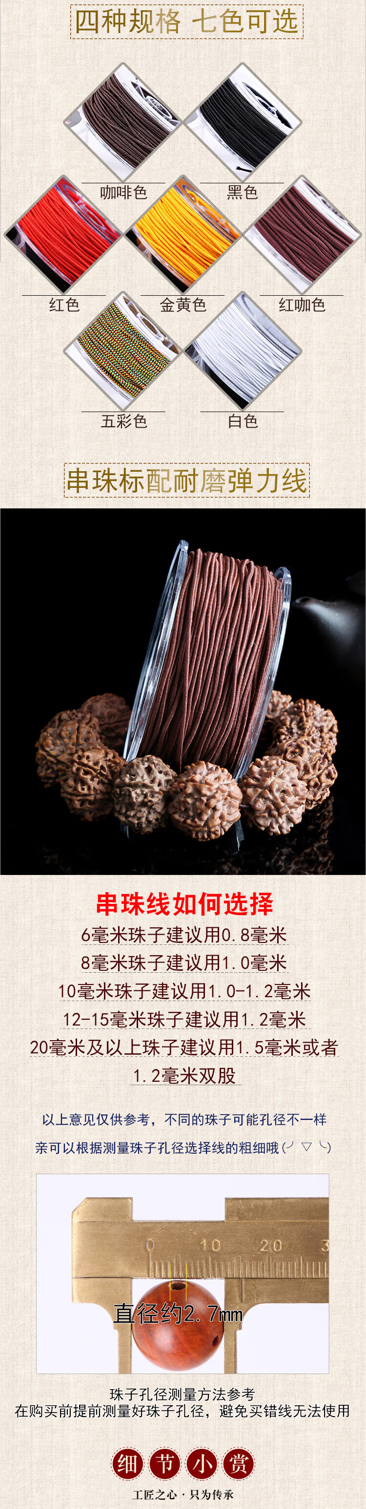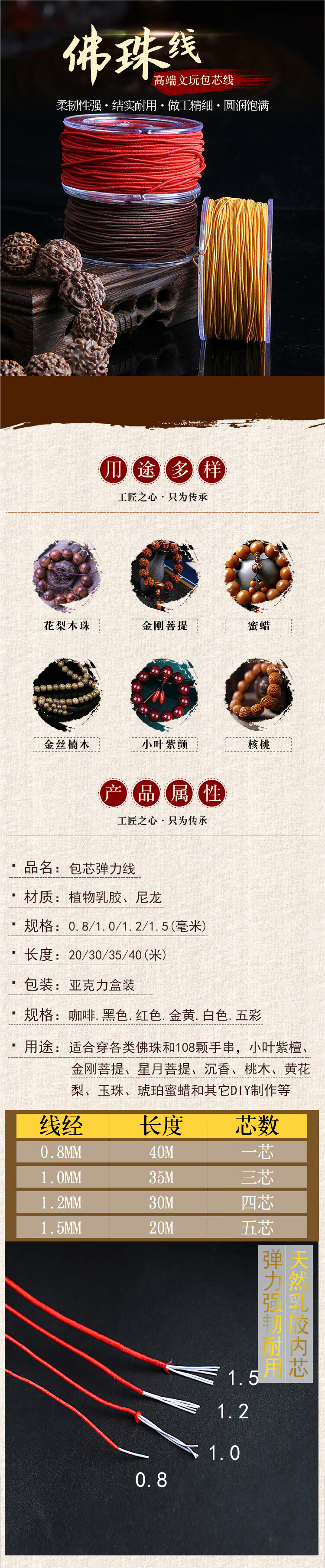 【精选】包芯弹力线文玩绳子金刚手串绳紫檀手链线串珠绳皮筋线菩 471#咖啡色0.8 1个 盒装包心弹力线晶毅佛字标