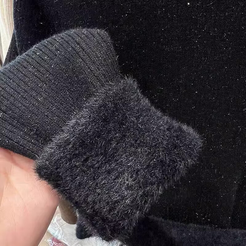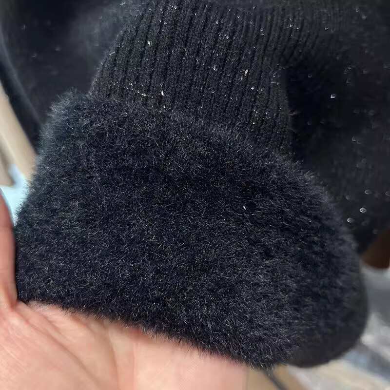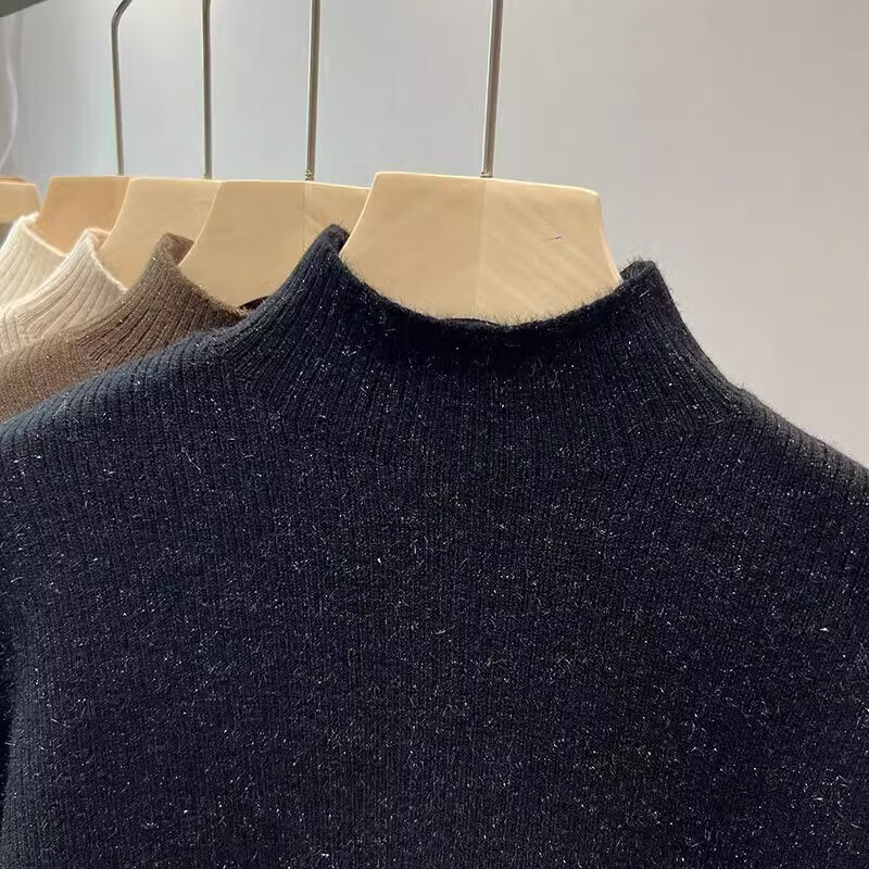 香影芬法式感亮丝半高领一体绒针织毛衣女春秋加绒加厚保暖打底衫 黑色(加厚一体绒) M (建议95-105斤)