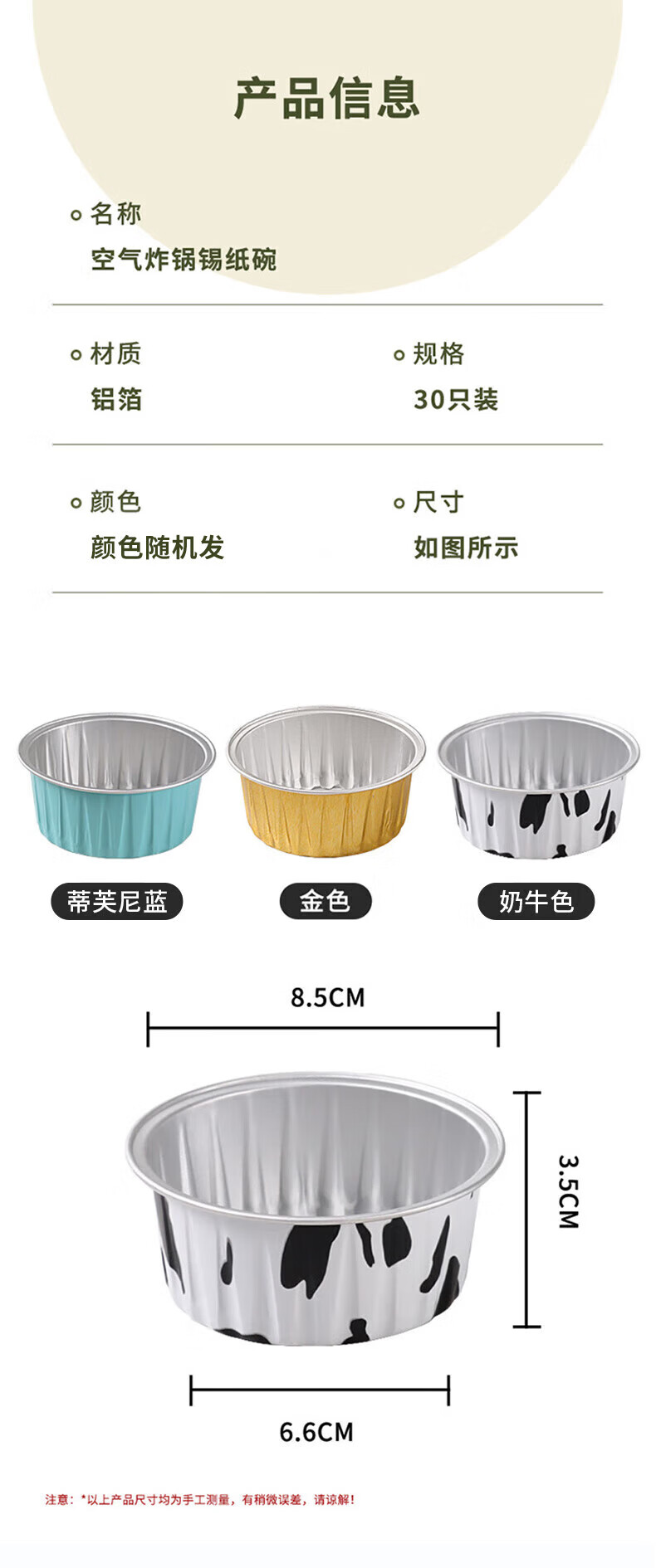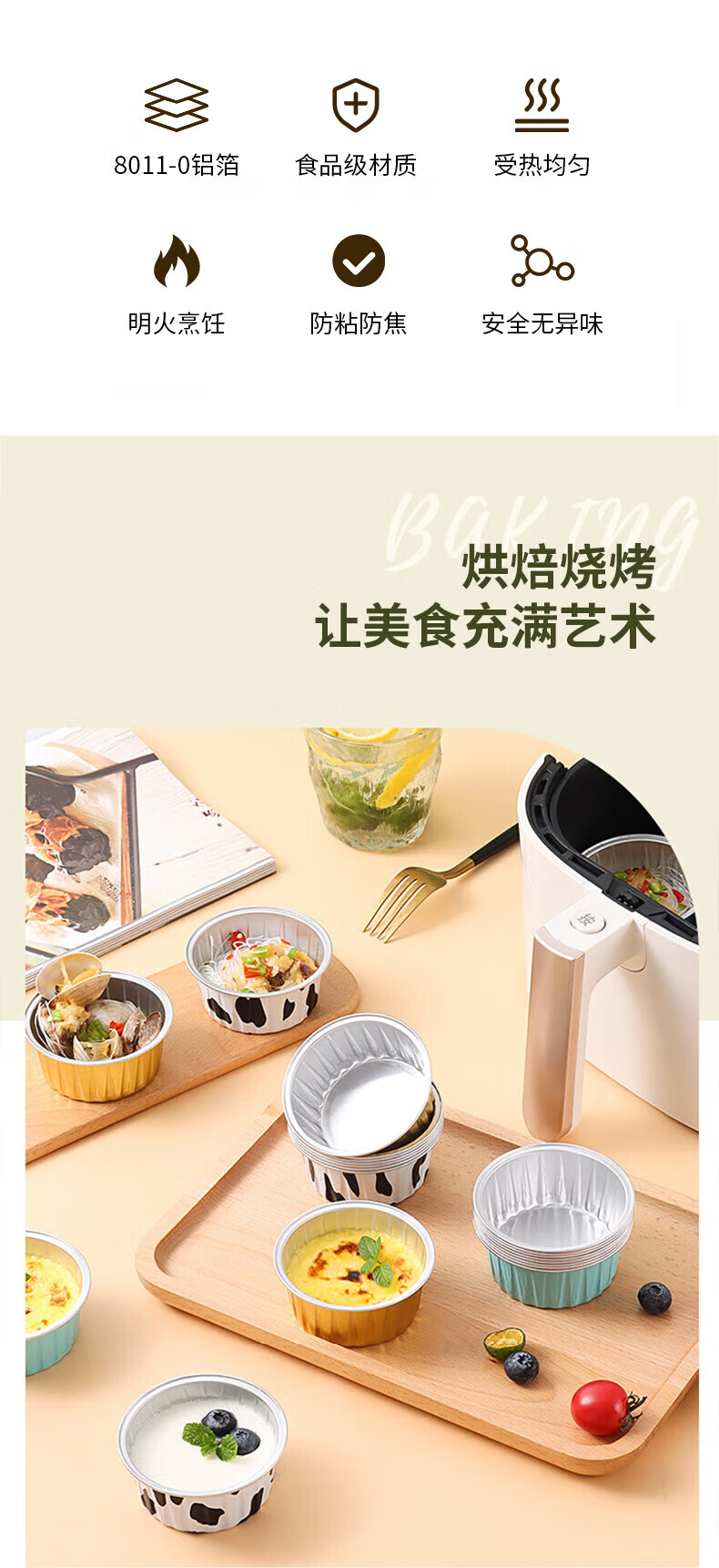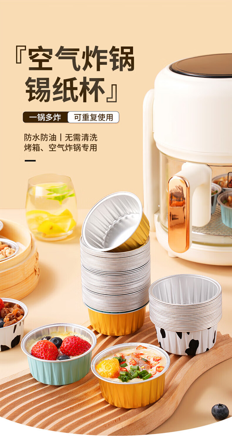 厨王爷锡纸碗【30只】可重复使用布丁杯蛋糕发糕模具空气炸锅专用锡纸杯