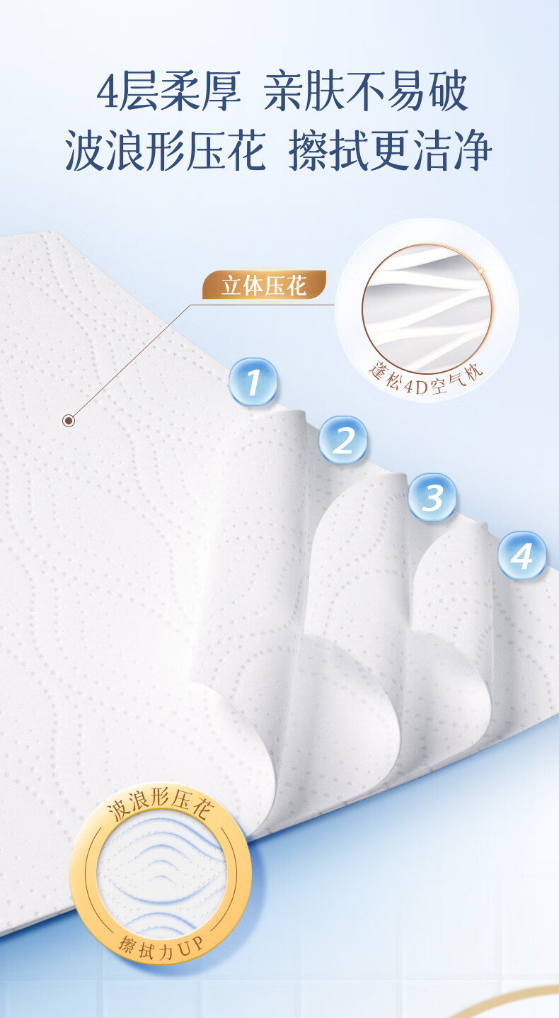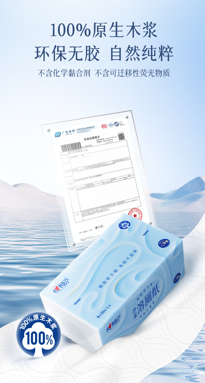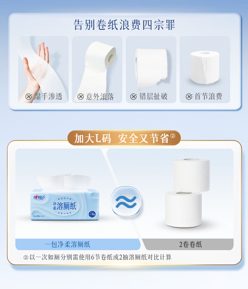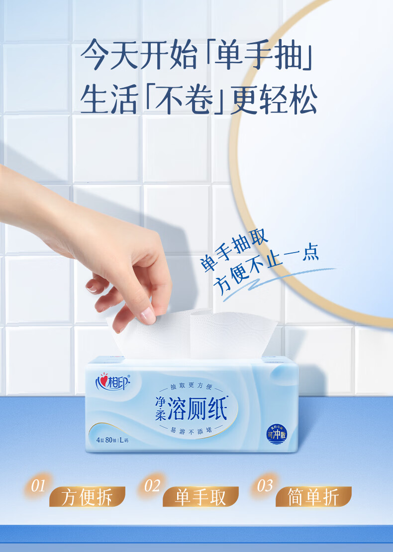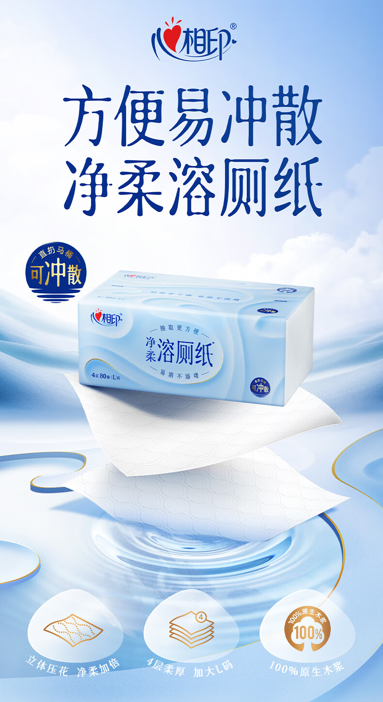 心相印厕所抽纸抽取式卫生纸 4层80抽6包L码速溶 厕纸