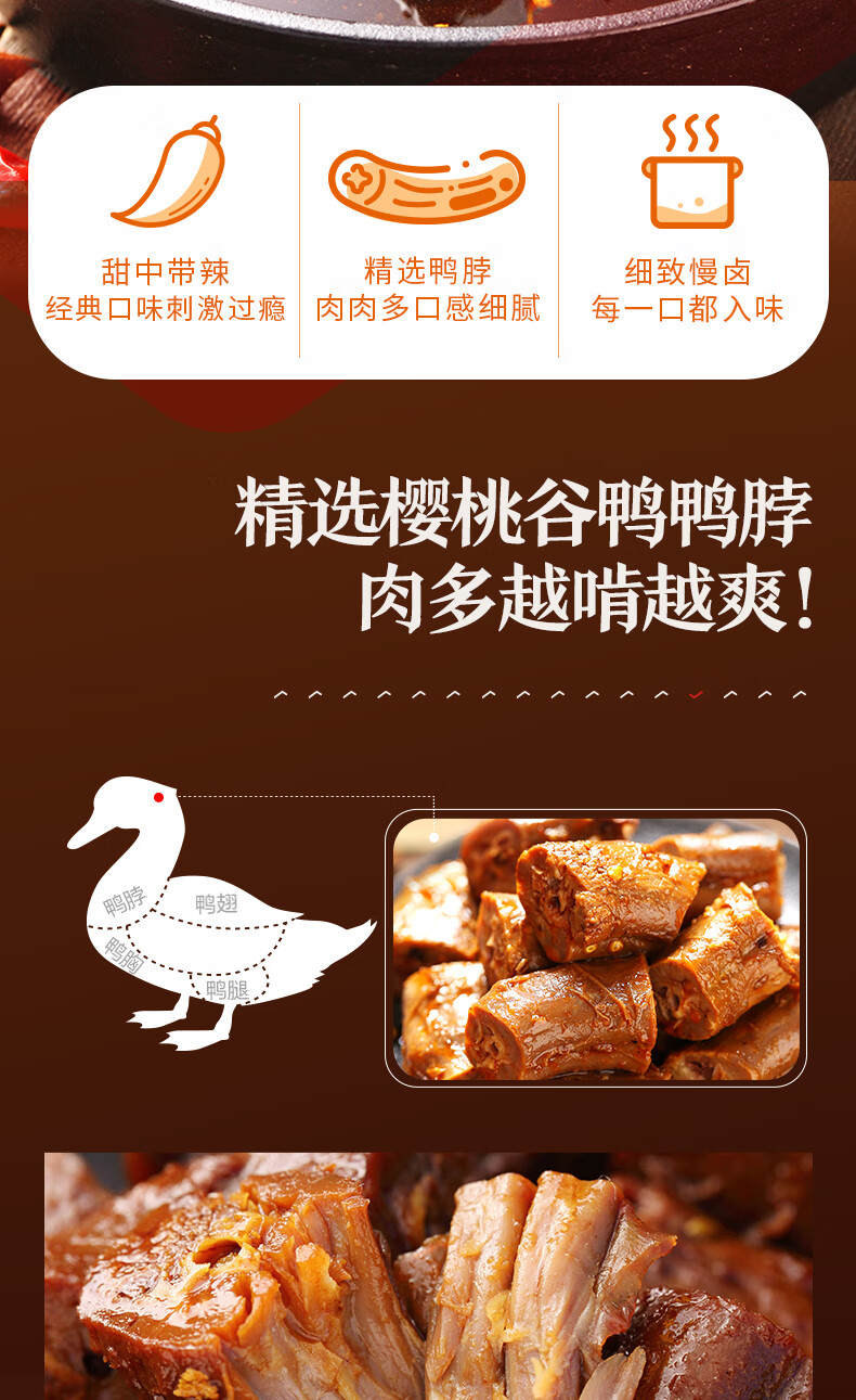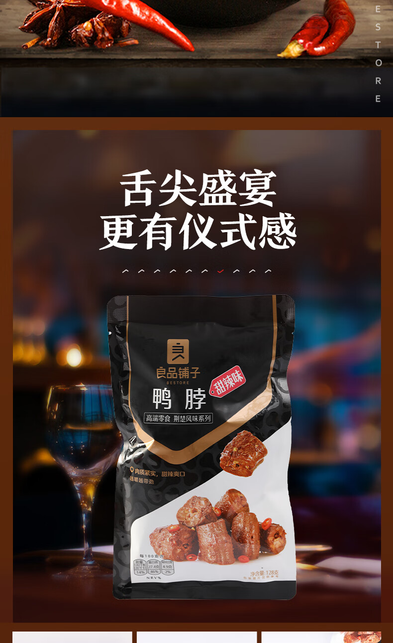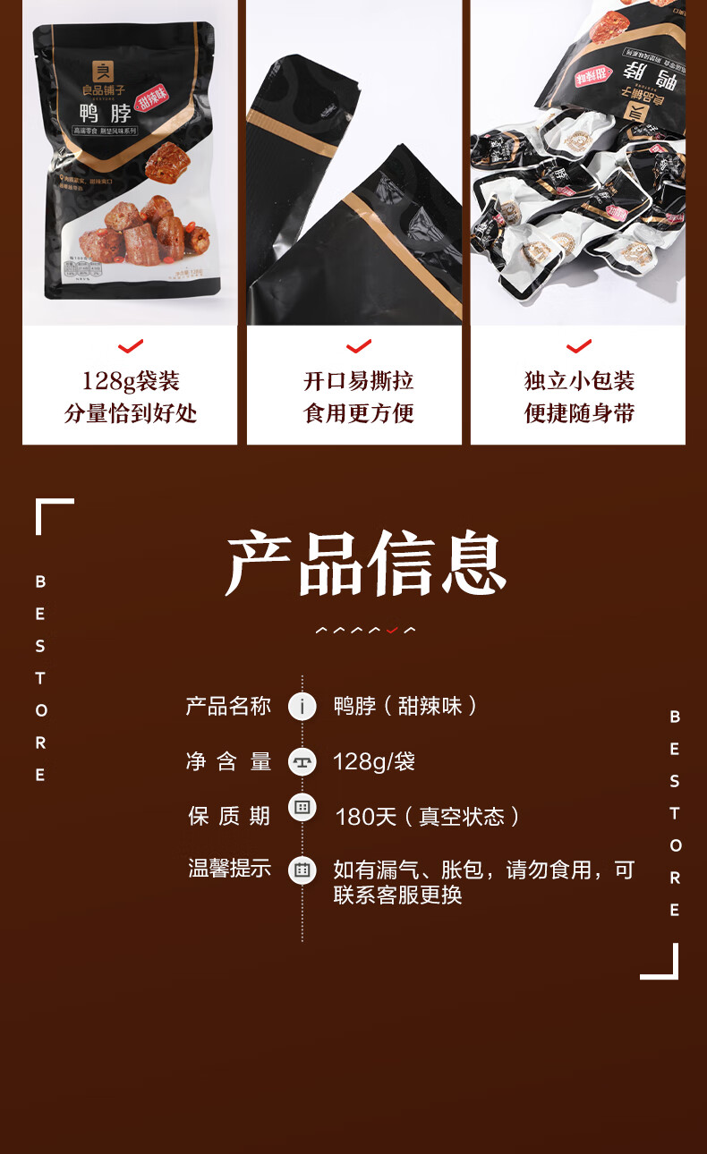 良品铺子甜辣鸭脖128g 熟食卤味 肉干肉脯 休闲零食 武汉特产小吃