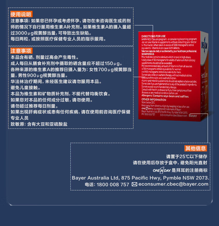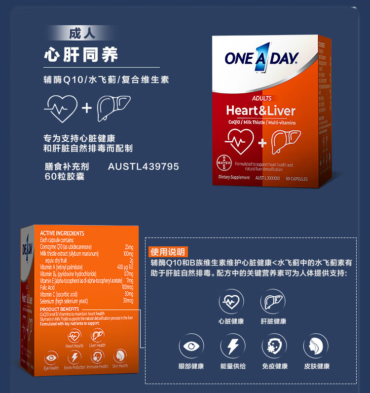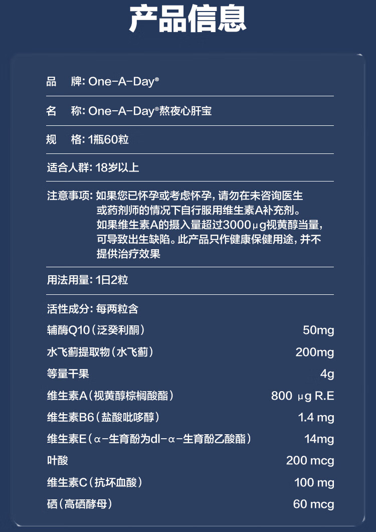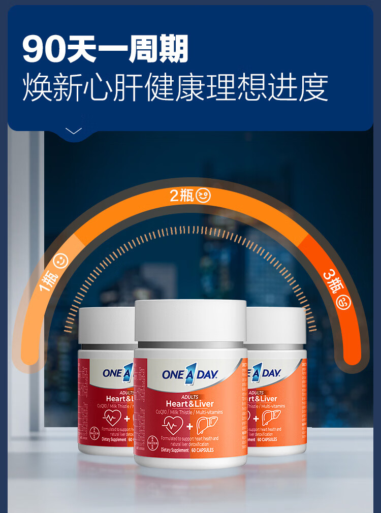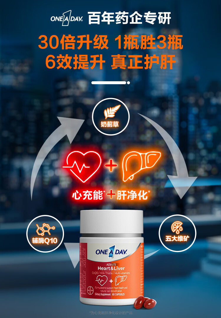 One A Day拜耳心肝宝护肝片胶囊60粒 奶蓟草辅酶q10维生素b熬夜养肝