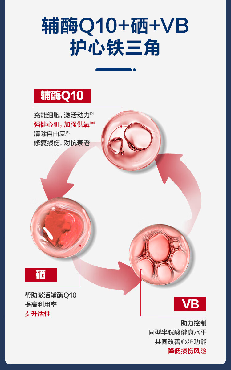紫一辅酶q10软胶囊 高含量熬夜加班呵护中老年成人增强免疫力抗氧化 呵护心脏 60粒*3瓶 【周期推荐装】