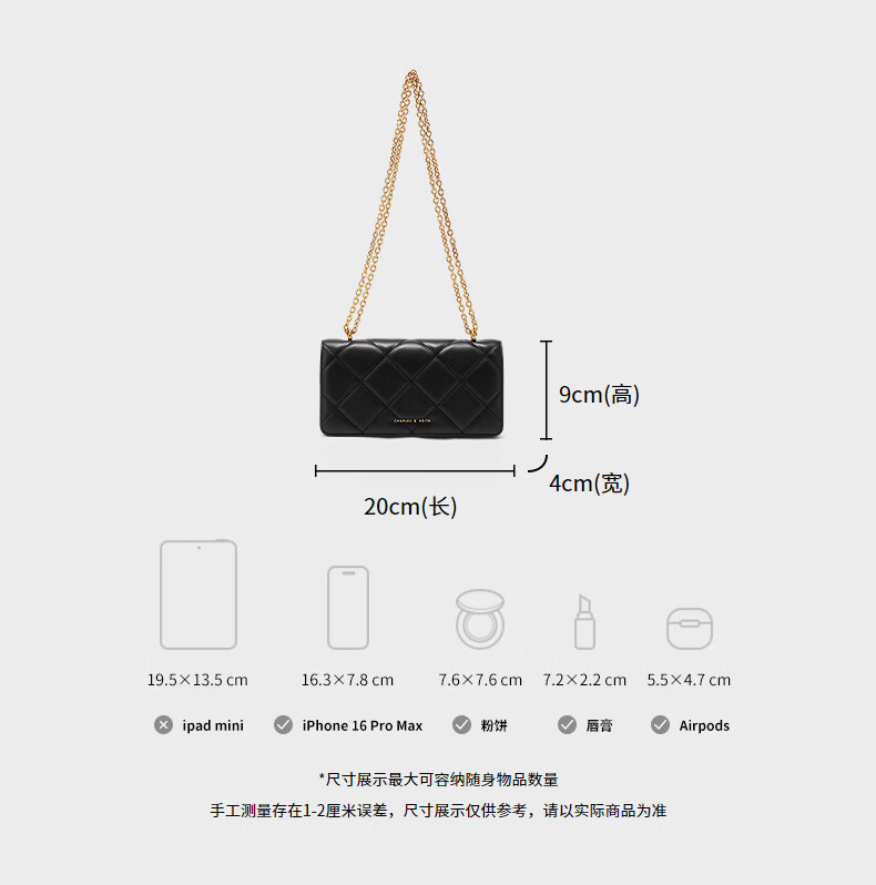 CHARLES&KEITH质感菱格链条小方包钱包斜挎包包女包生日女神节礼物CK6-10680924