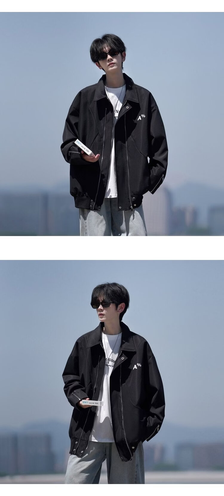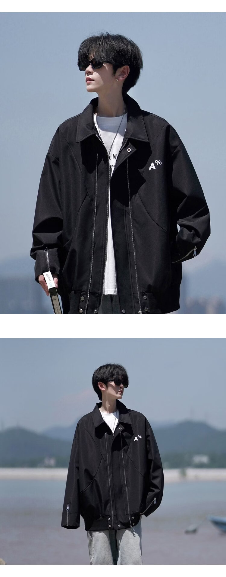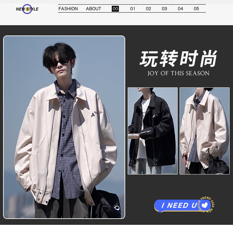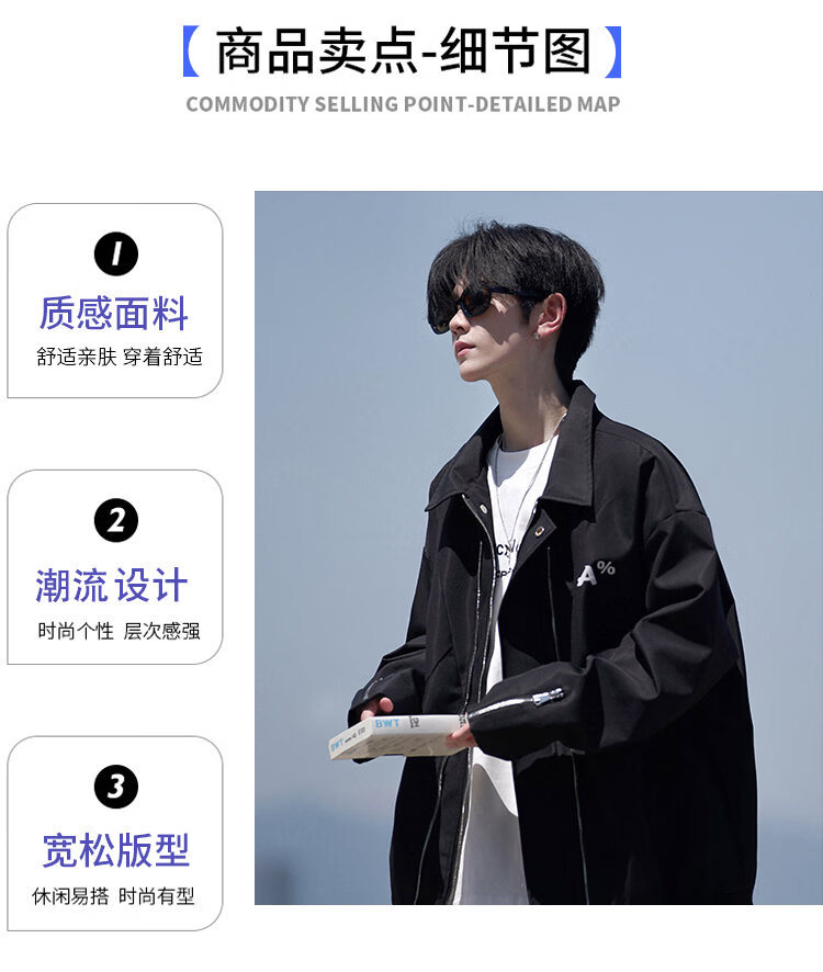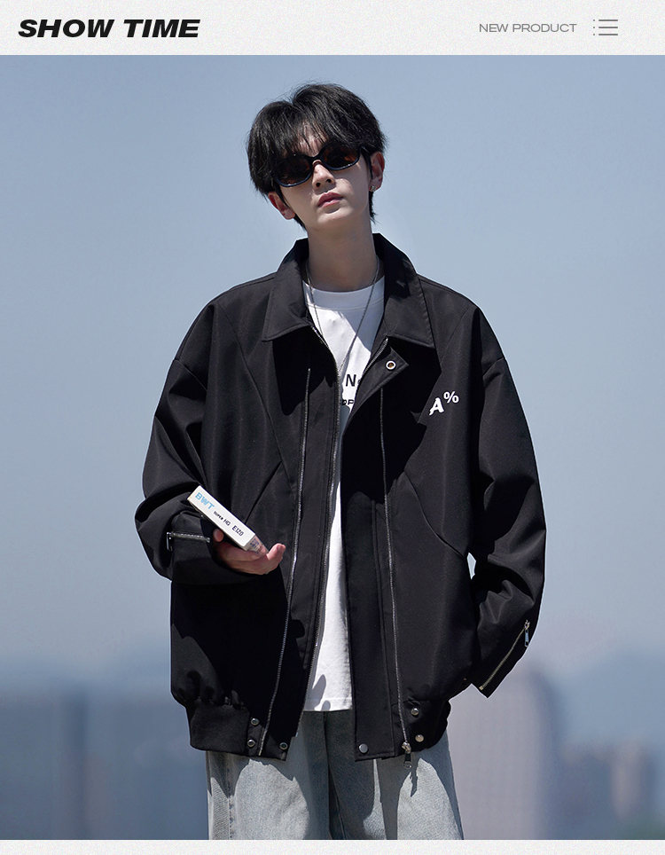 NEW OR MODE美式翻领飞行员夹克男春秋新款大码宽松休闲情侣高街百搭上衣外套 黑色【高品质】 M 【建议90-110斤】