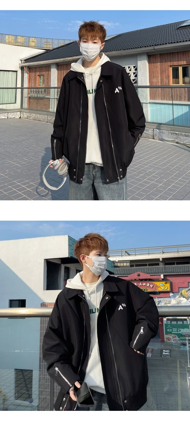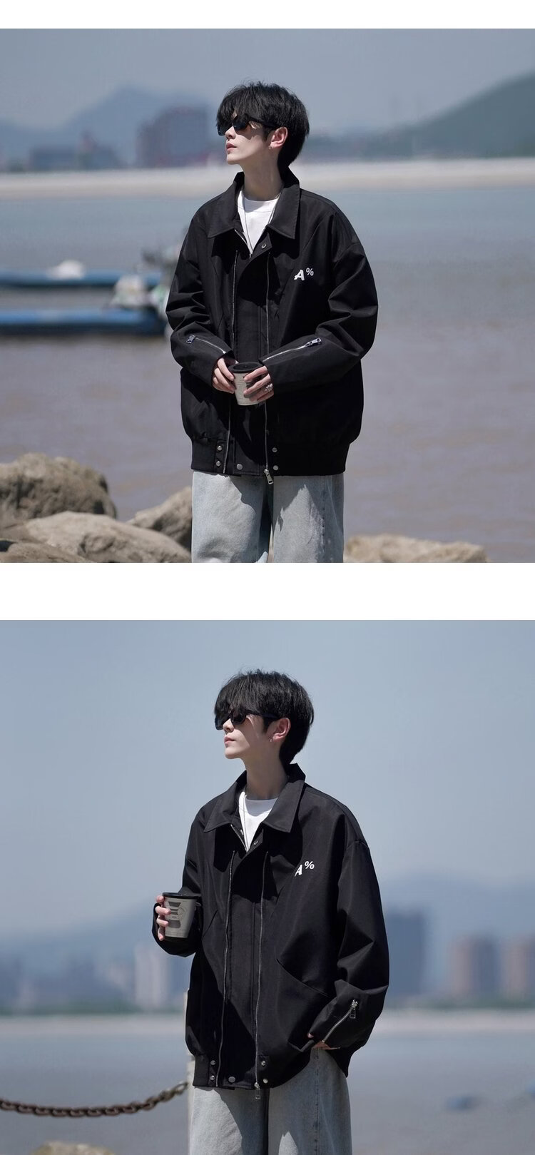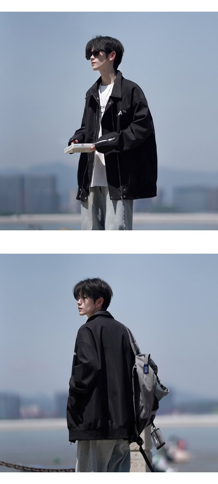 NEW OR MODE美式翻领飞行员夹克男春秋新款大码宽松休闲情侣高街百搭上衣外套 黑色【高品质】 M 【建议90-110斤】