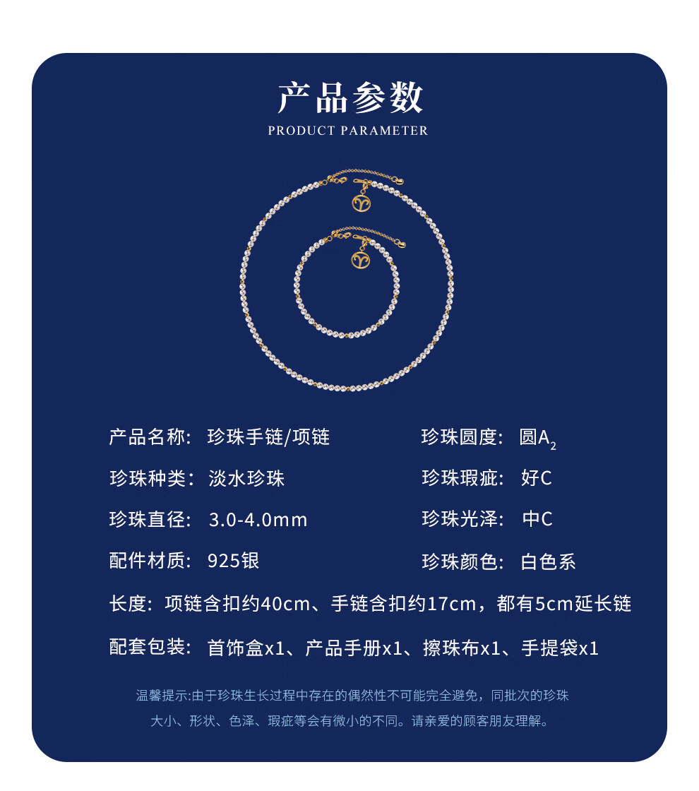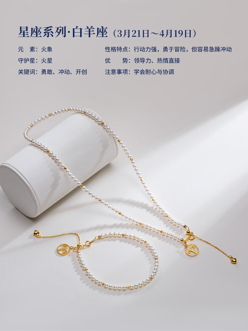 南珠宫星座系列·白羊座淡水珍珠项链手链套装毕业礼物告白礼送女友 白羊座项链 3.0-4.0mm