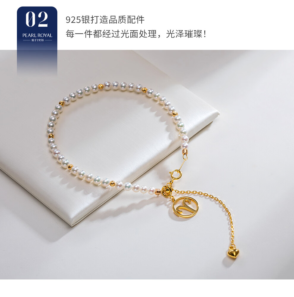 南珠宫未央925银淡水珍珠手链简约百搭年轻款新年礼物送女友 金色款 10.0-11.0mm