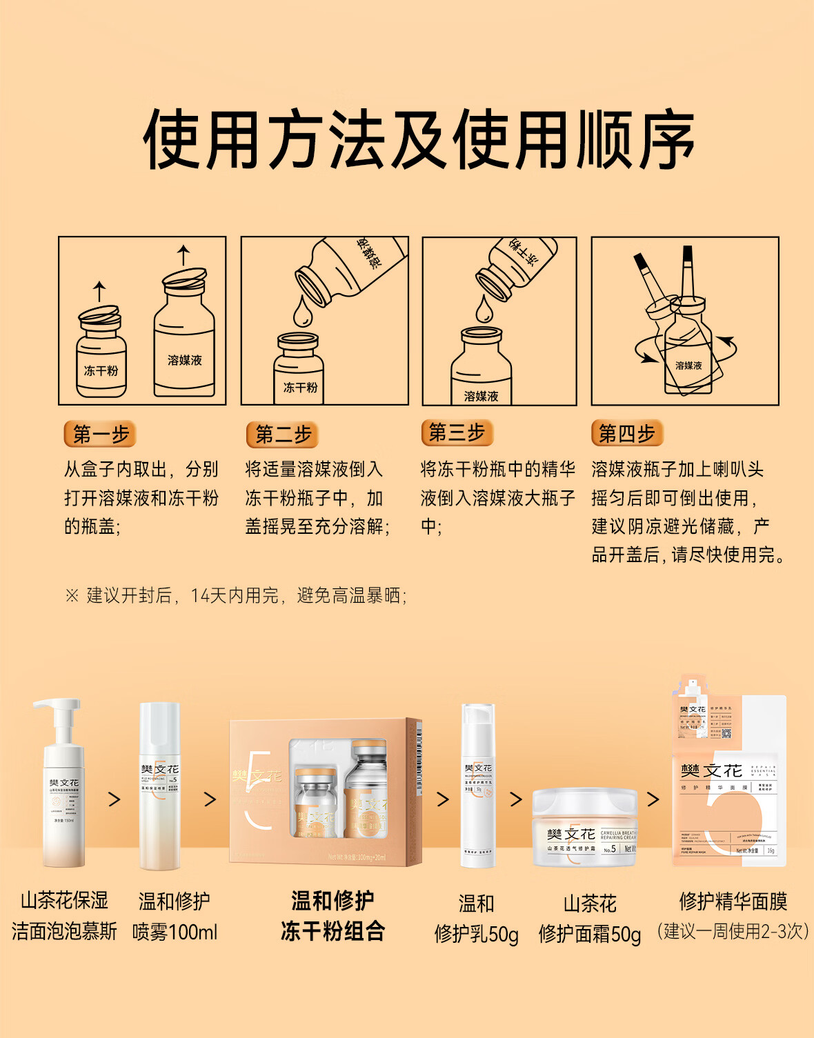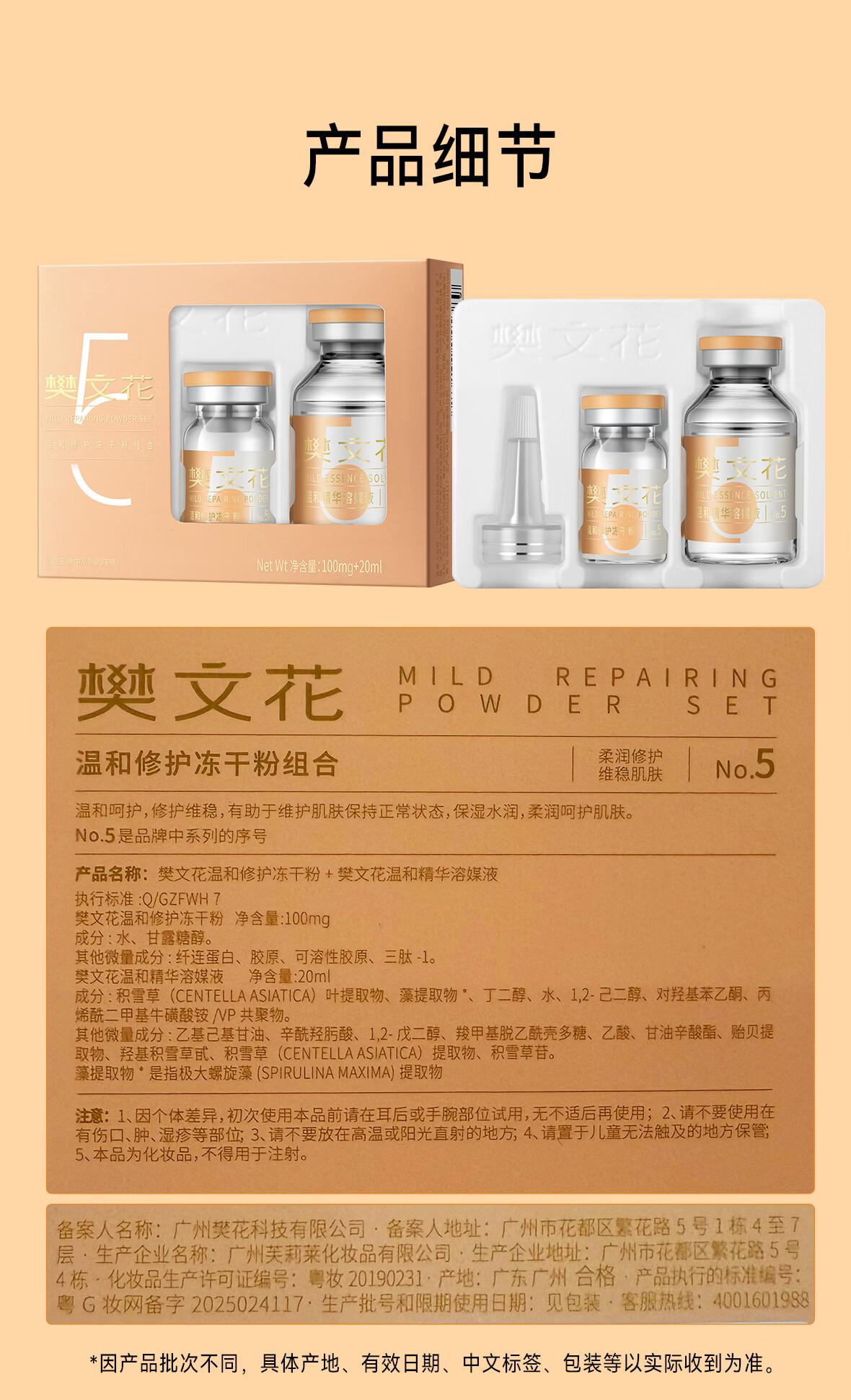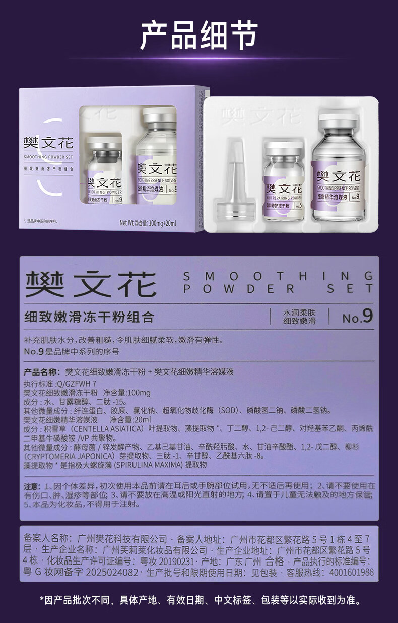 樊文花1-10号冻干粉精华溶媒液组合保湿舒缓修护脸部精华送女生礼物 5号温和修护冻干粉组合(修护推荐)