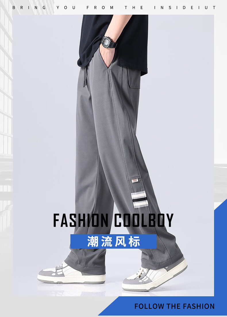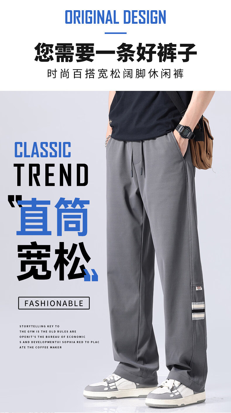 真维斯(Jeanswest)潮流加绒加厚休闲裤男士秋冬新款宽松百搭直筒垂感运动长裤 高级灰【加绒加厚】 M 【建议100-120斤】