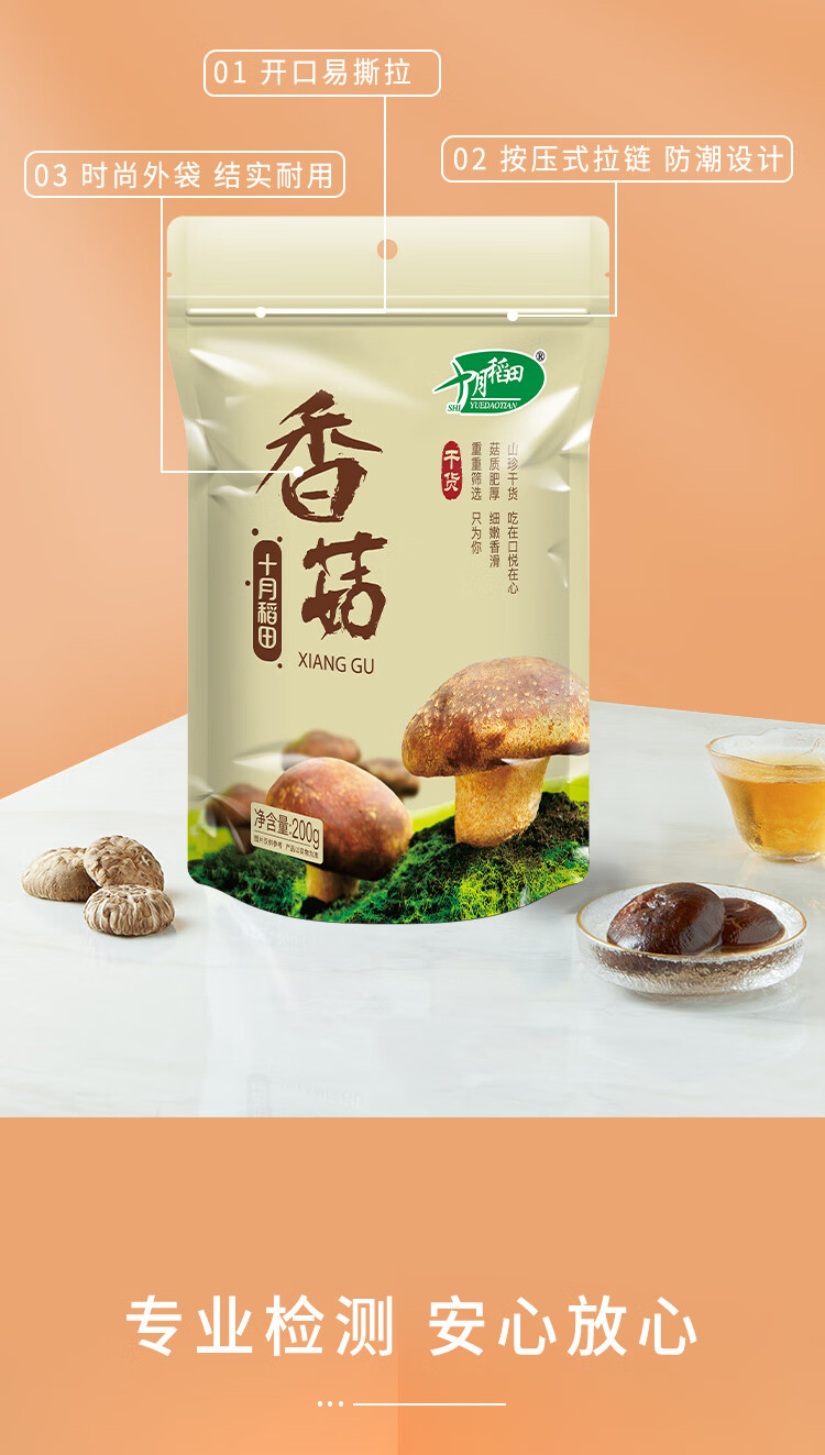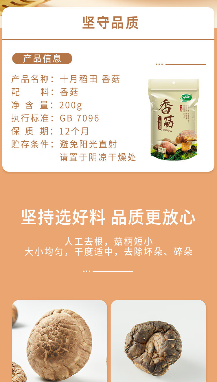 十月稻田 香菇 200g 干香菇 厚蘑菇冬菇 山珍菌菇干货 煲汤火锅炒菜食材