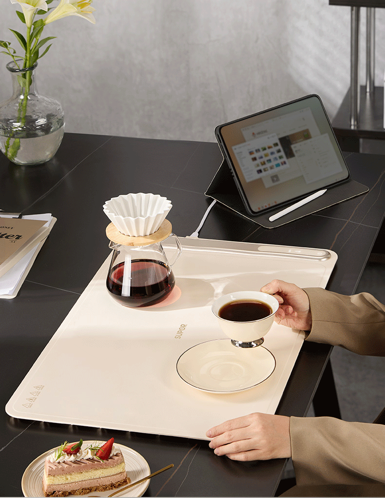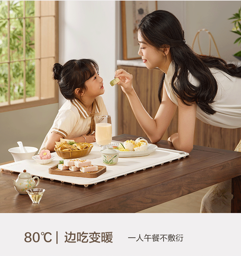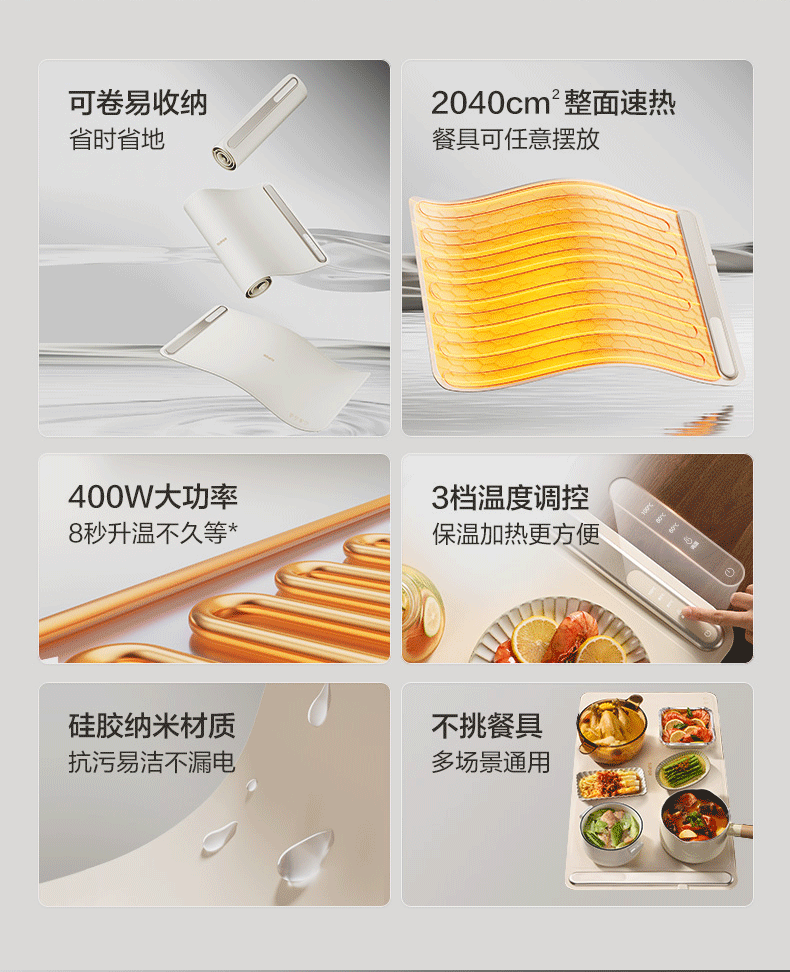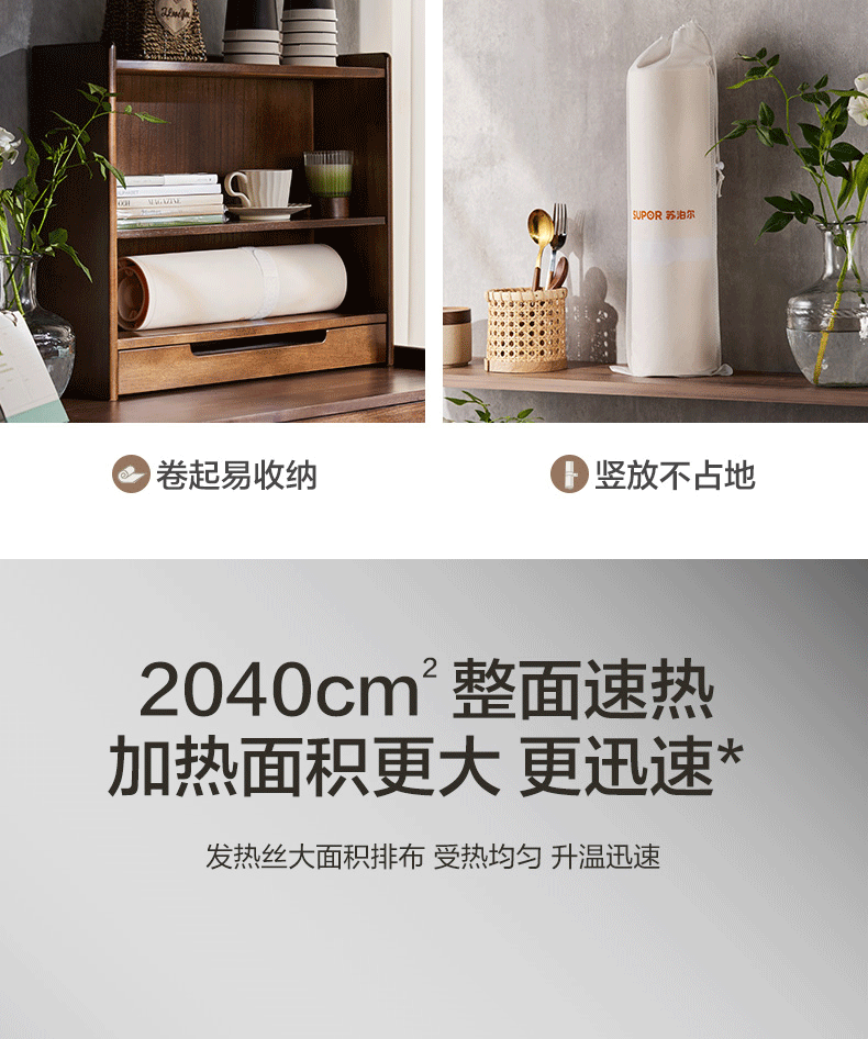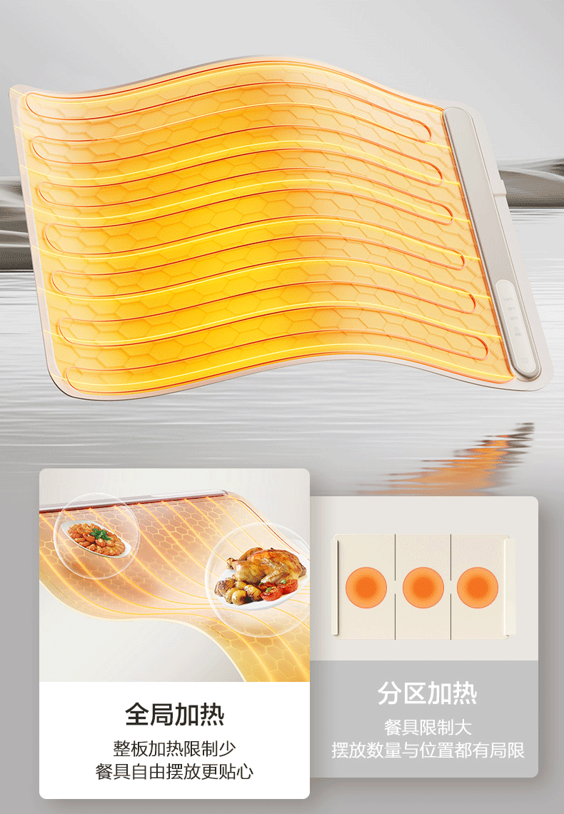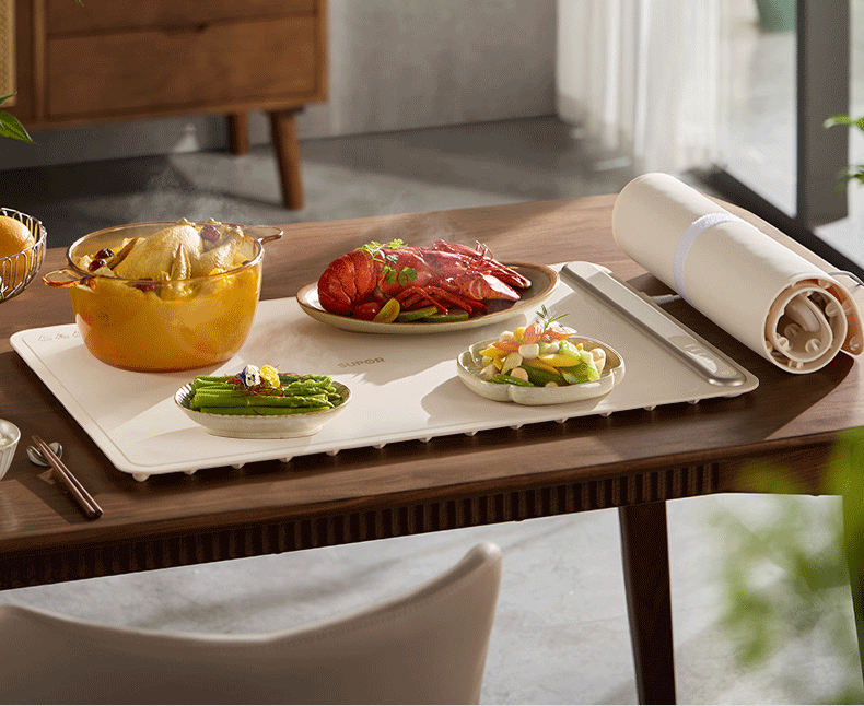 苏泊尔暖菜板 热菜保温板 餐桌饭菜加热恒温桌垫硅胶方形折叠家用多功能防水热菜板保温垫神器加热菜板 【8秒速热 三档调温 可卷可折】 一安全无异味