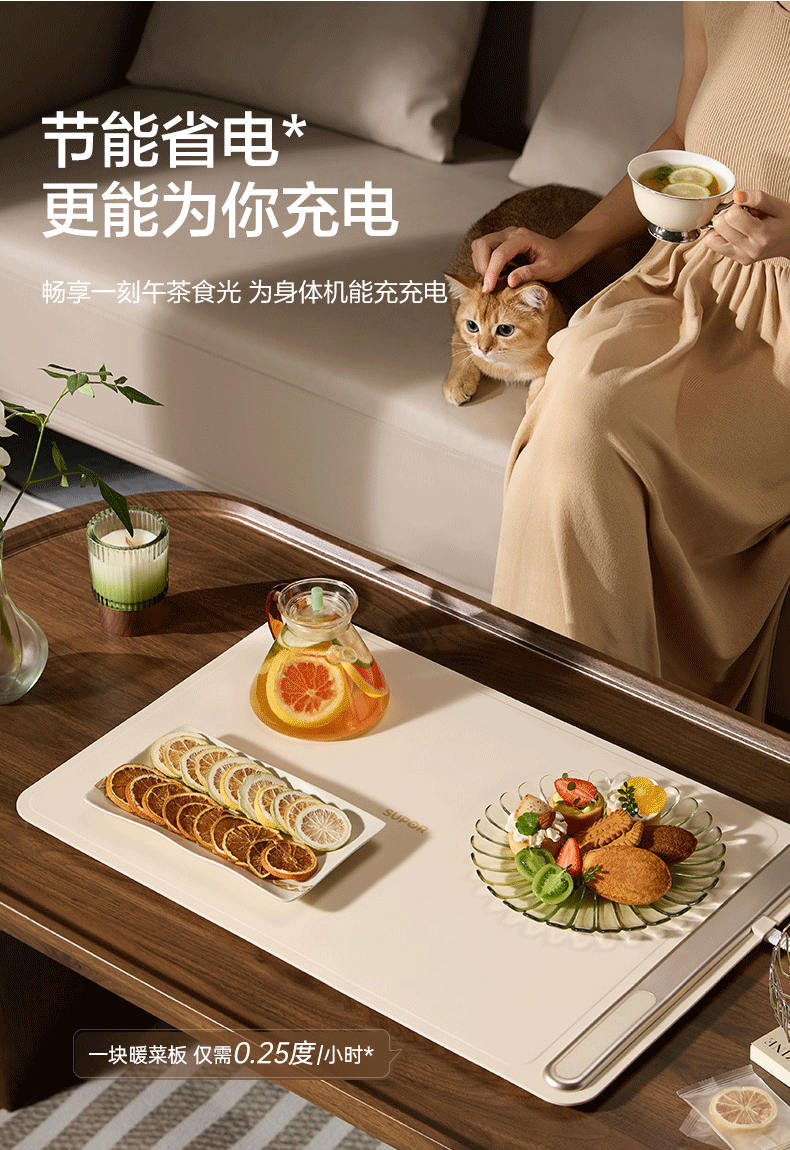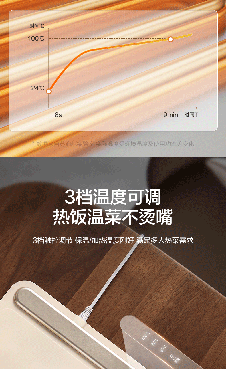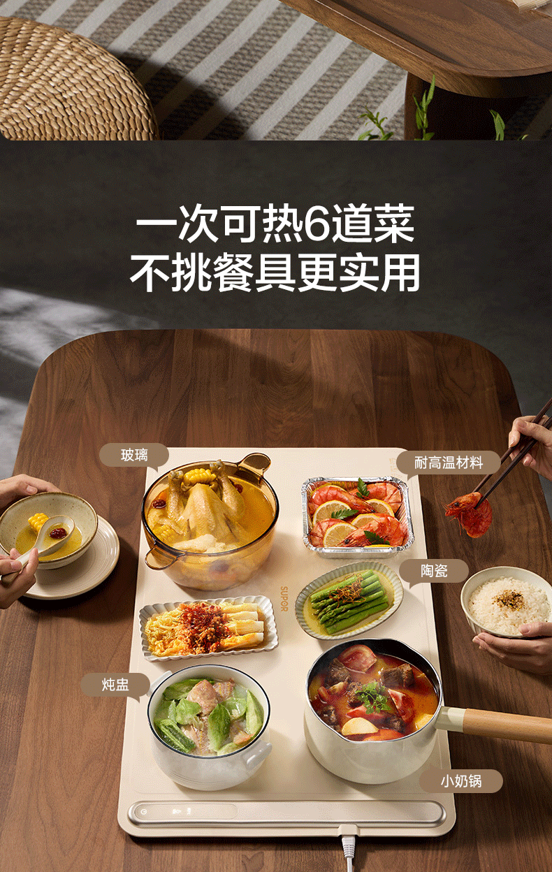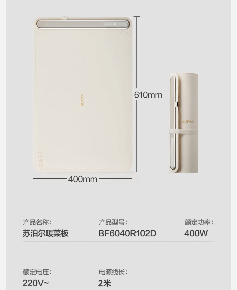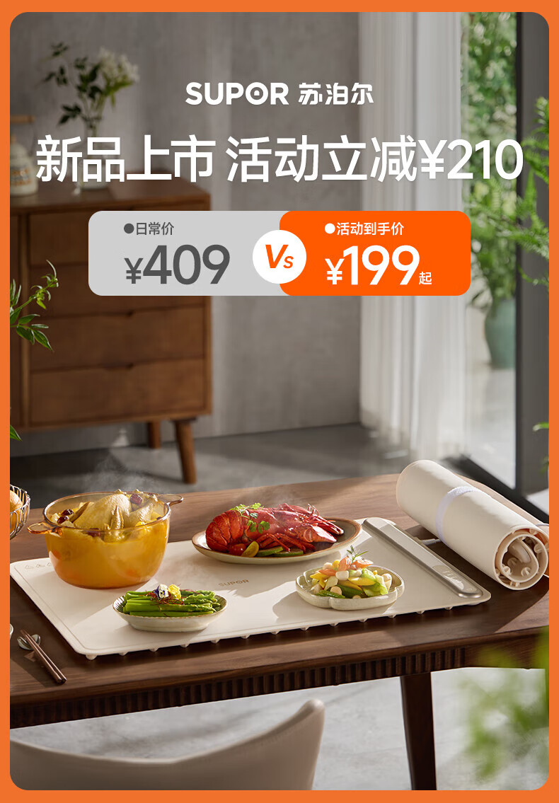 苏泊尔暖菜板 热菜保温板 餐桌饭菜加热恒温桌垫硅胶方形折叠家用多功能防水热菜板保温垫神器加热菜板 【8秒速热 三档调温 可卷可折】 一安全无异味