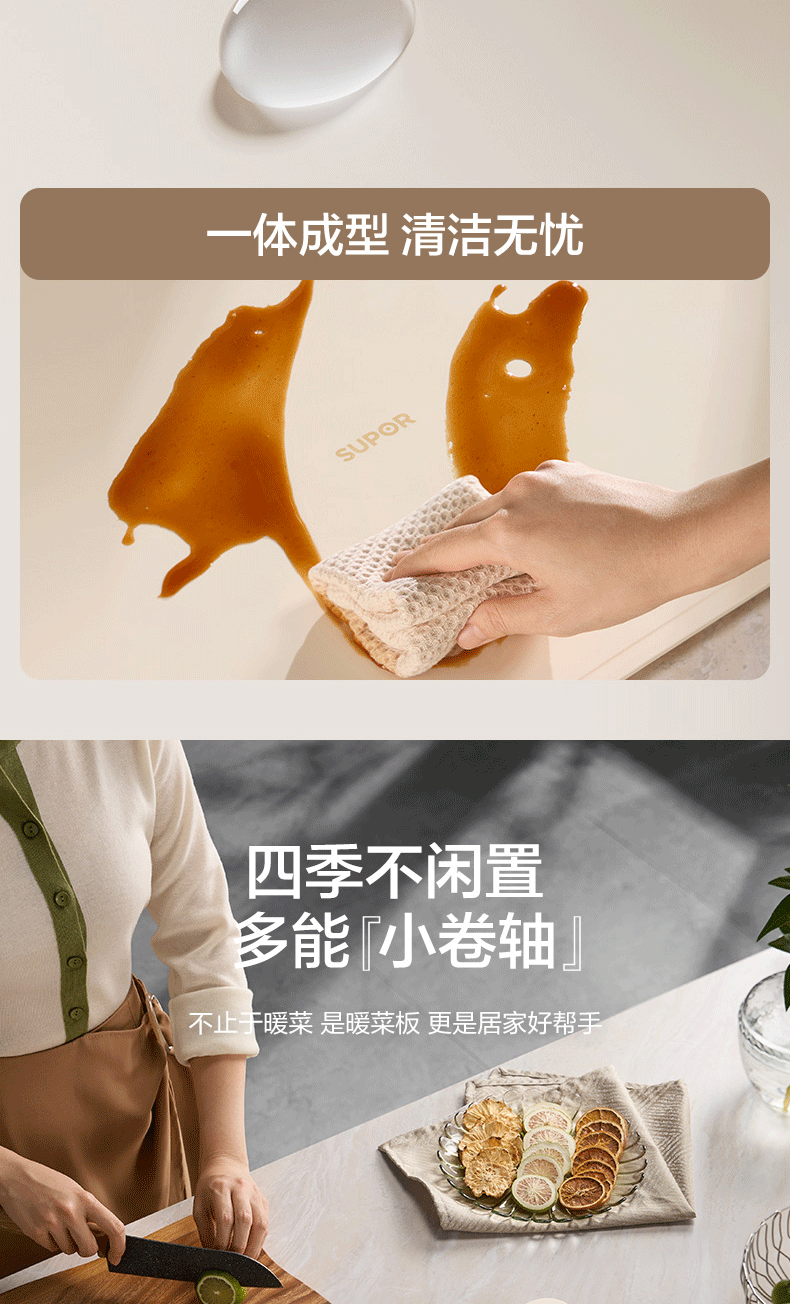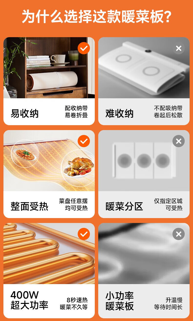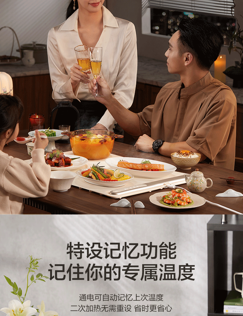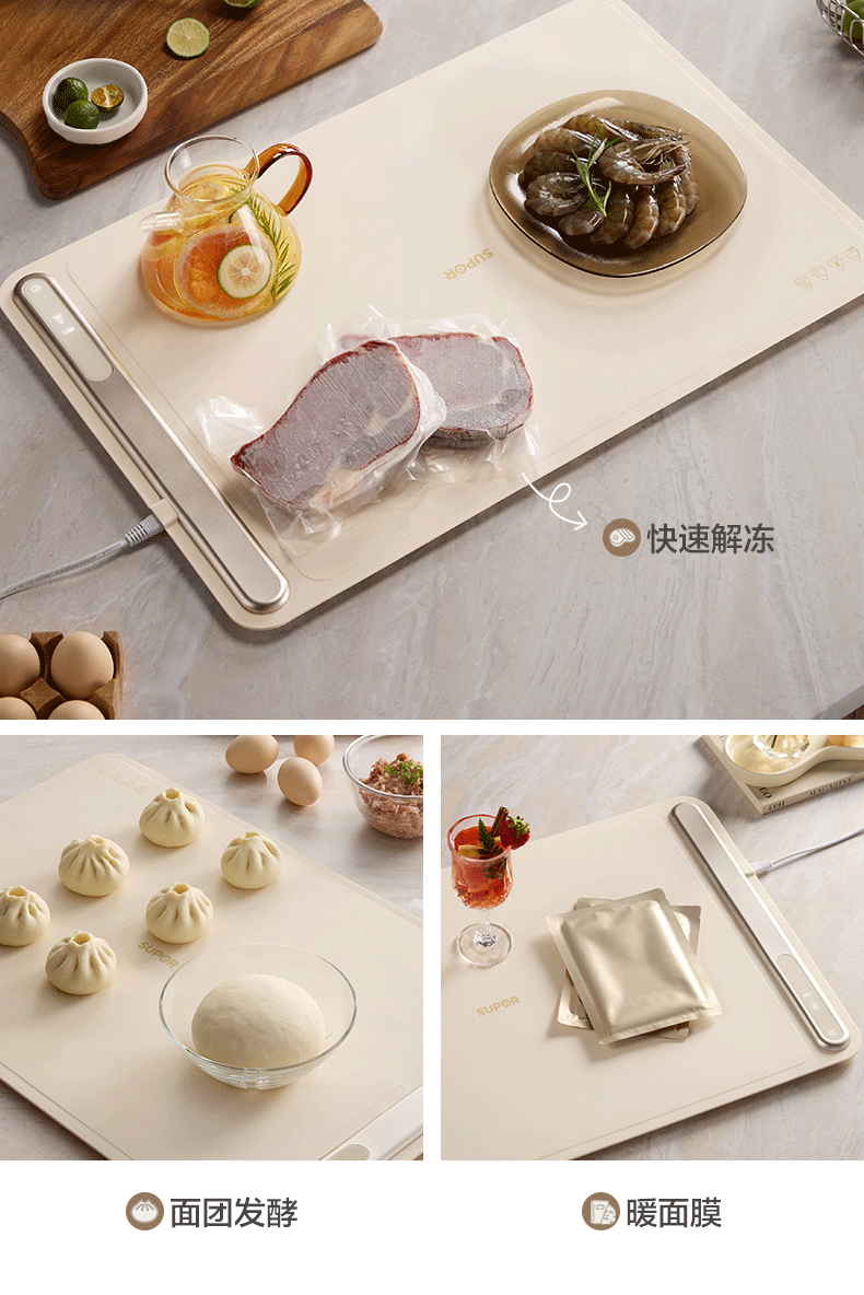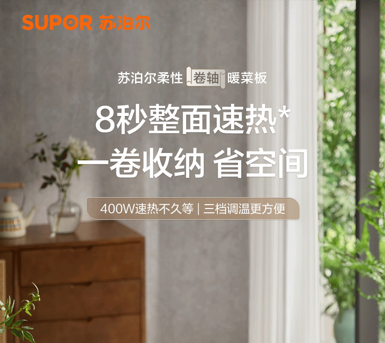 苏泊尔暖菜板 热菜保温板 餐桌饭菜加热恒温桌垫硅胶方形折叠家用多功能防水热菜板保温垫神器加热菜板 【8秒速热 三档调温 可卷可折】 一安全无异味