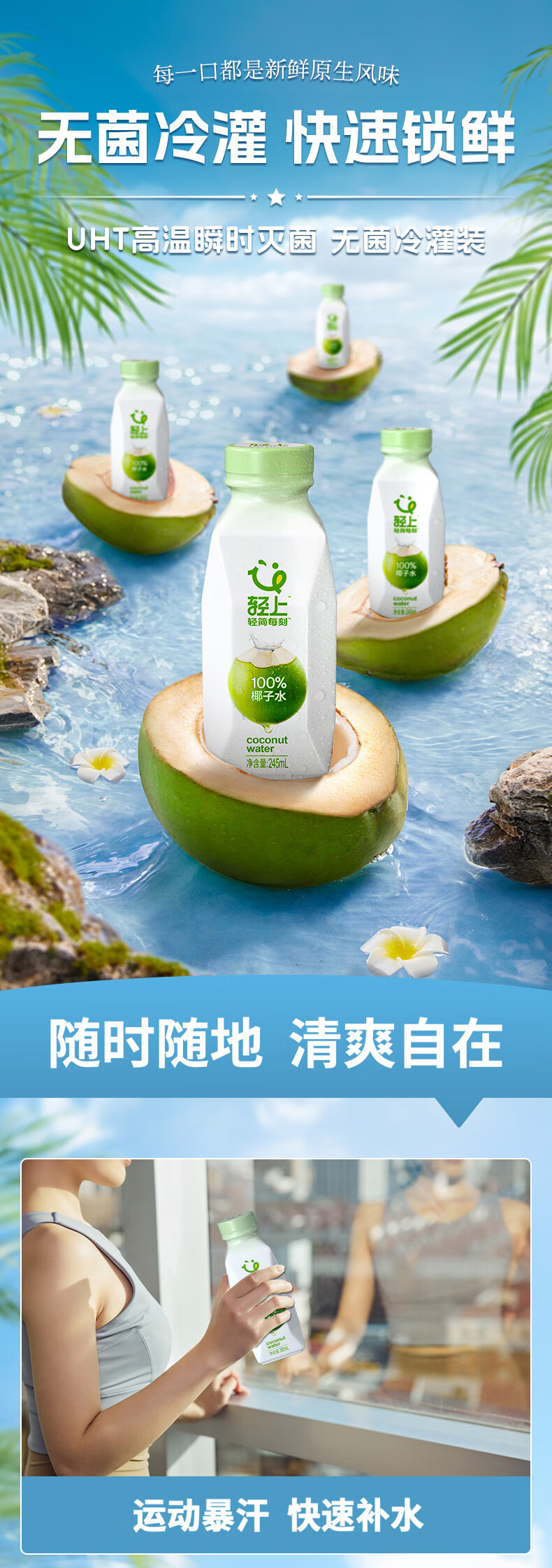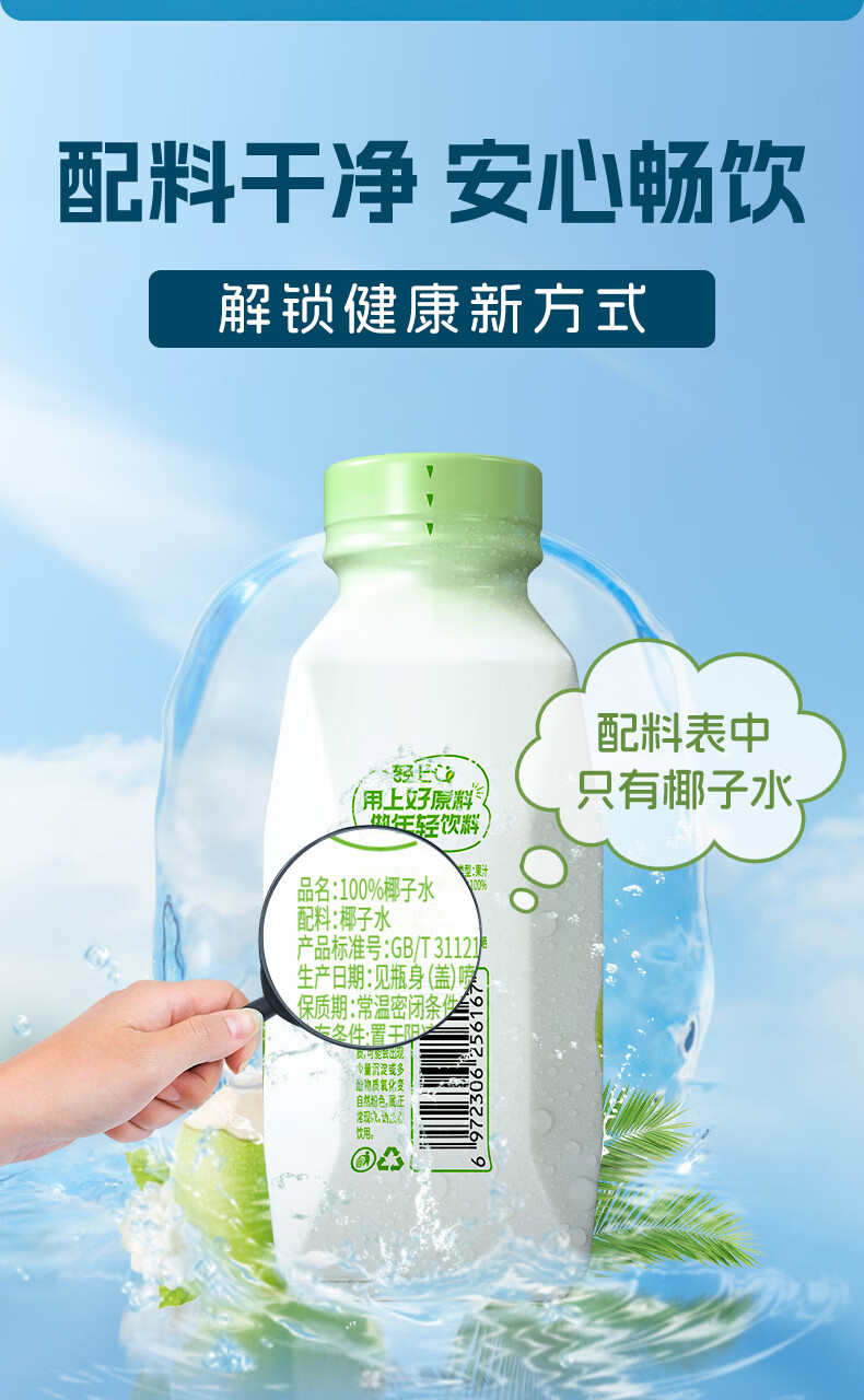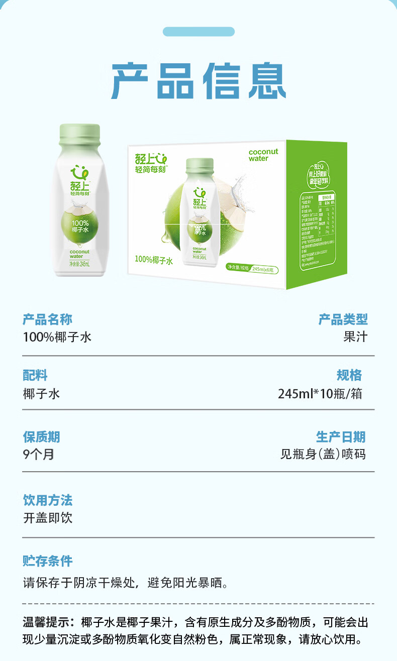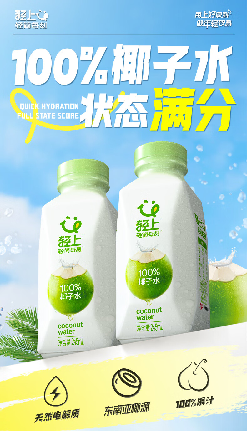 轻上(LIGHT UPPER) 【年货送礼】100%椰子水 椰汁饮料 含天然电解质 245ml*10瓶