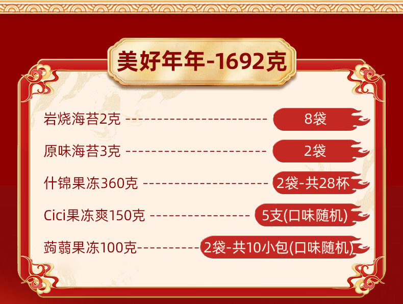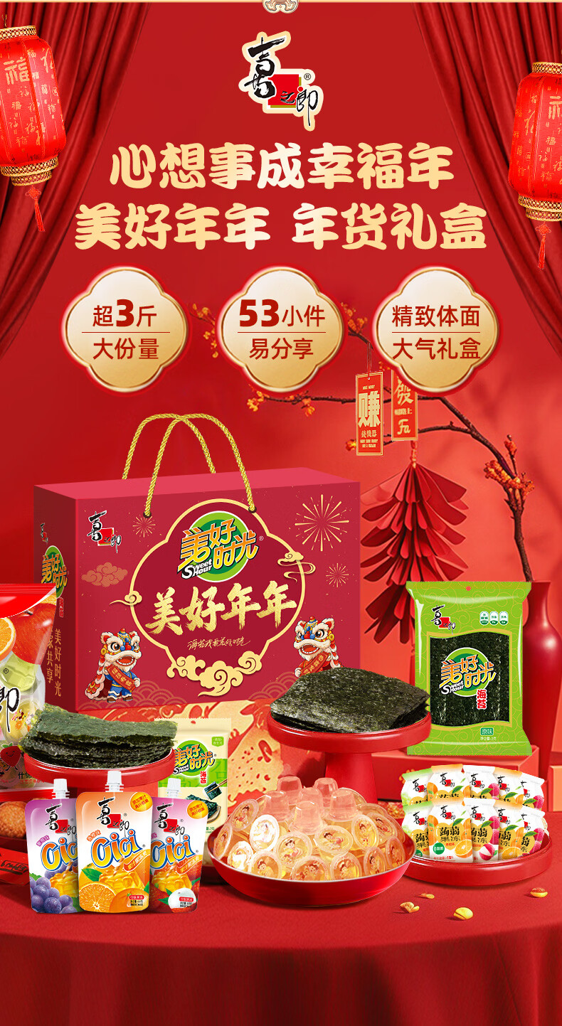 美好时光年货礼盒 零食礼箱海苔果冻零食礼包年货 【到手两盒】1692克*2盒