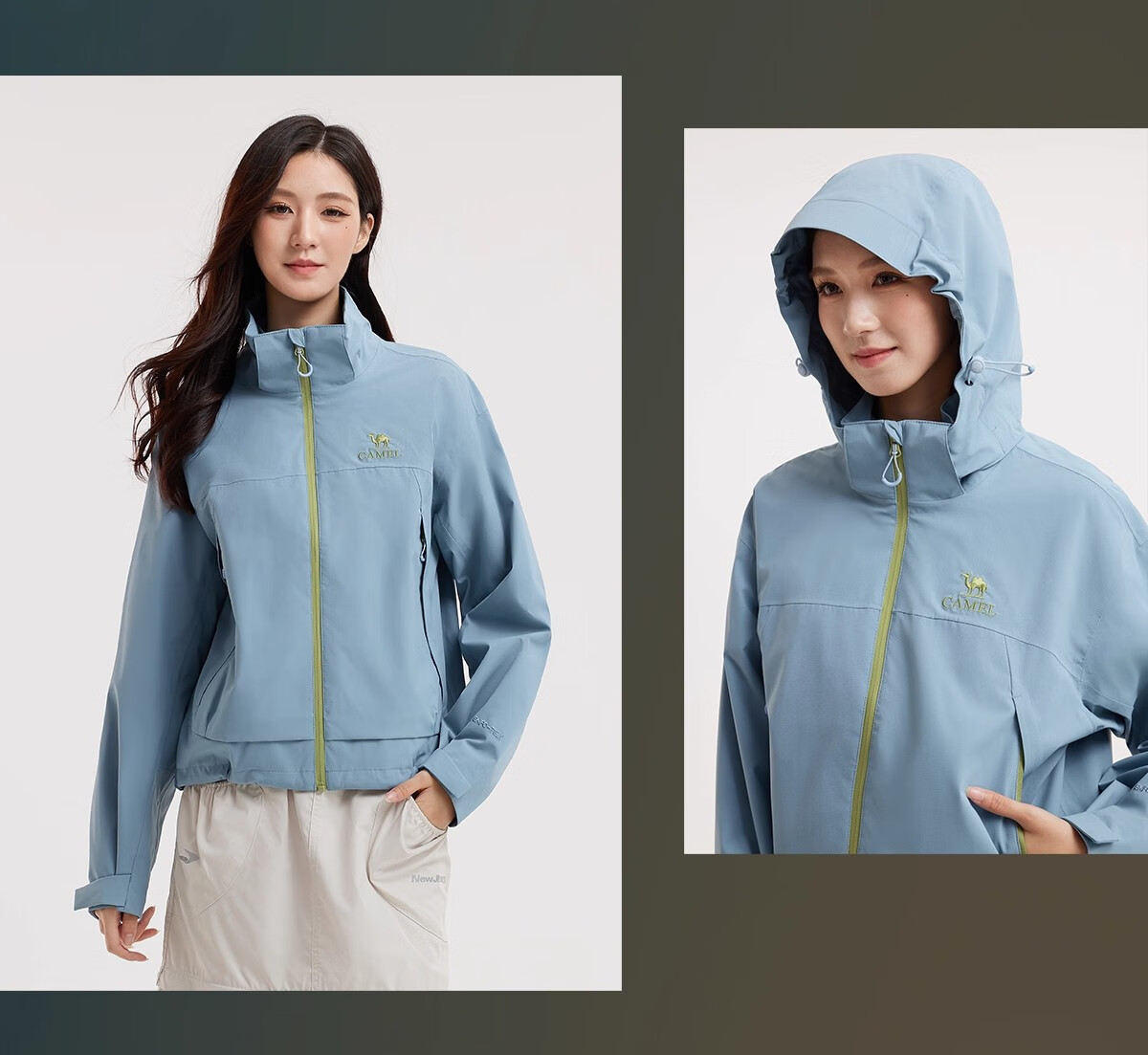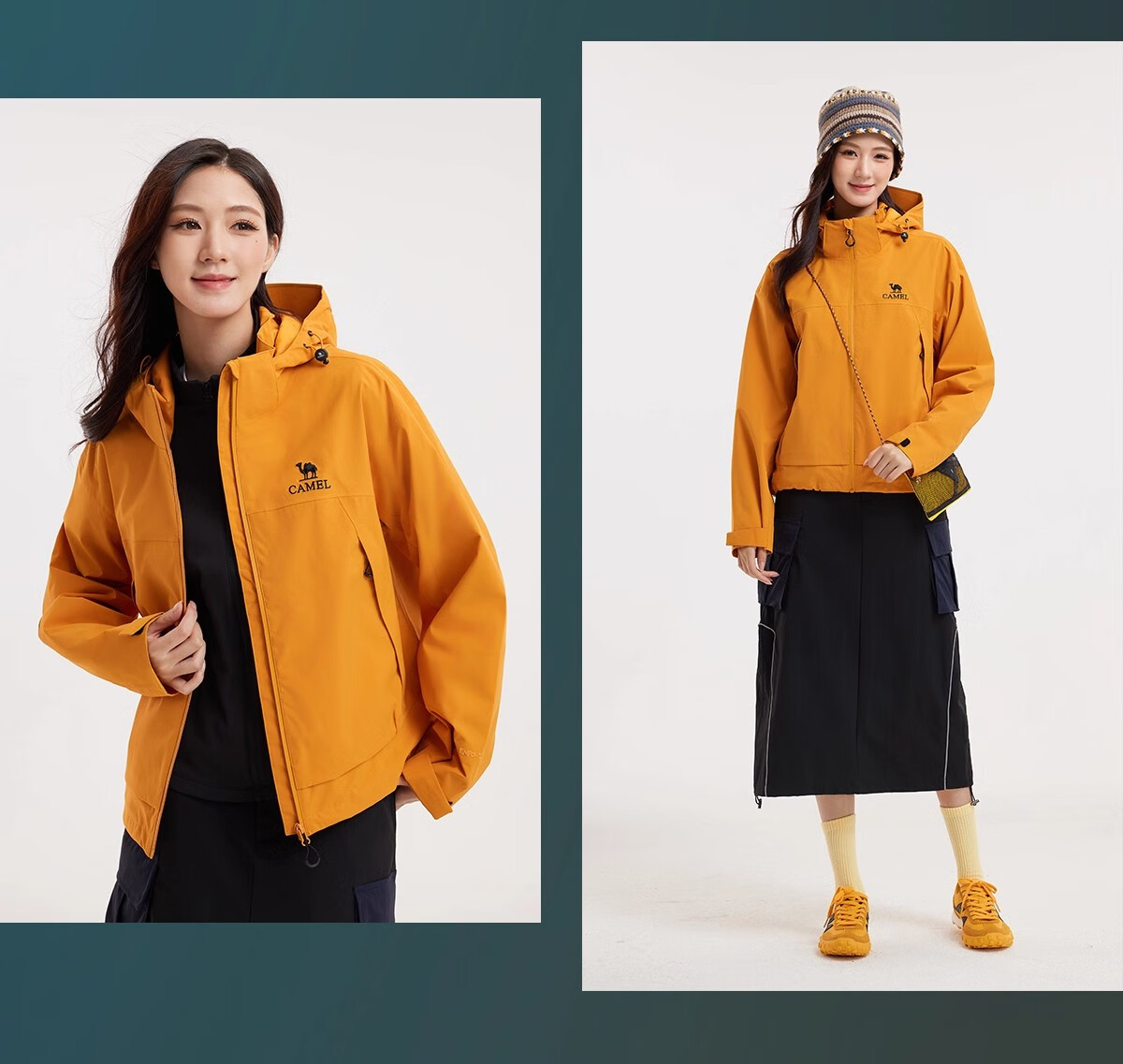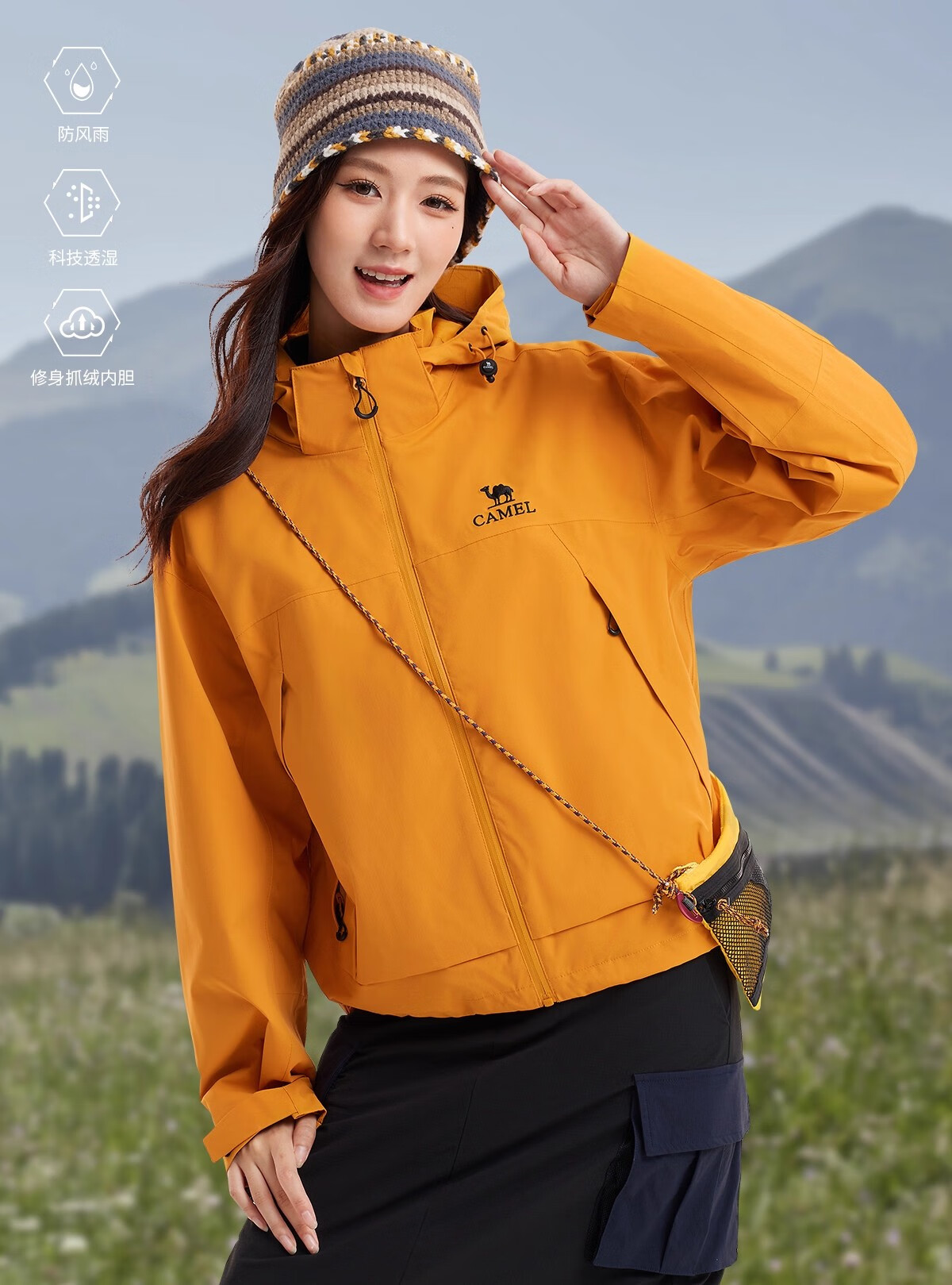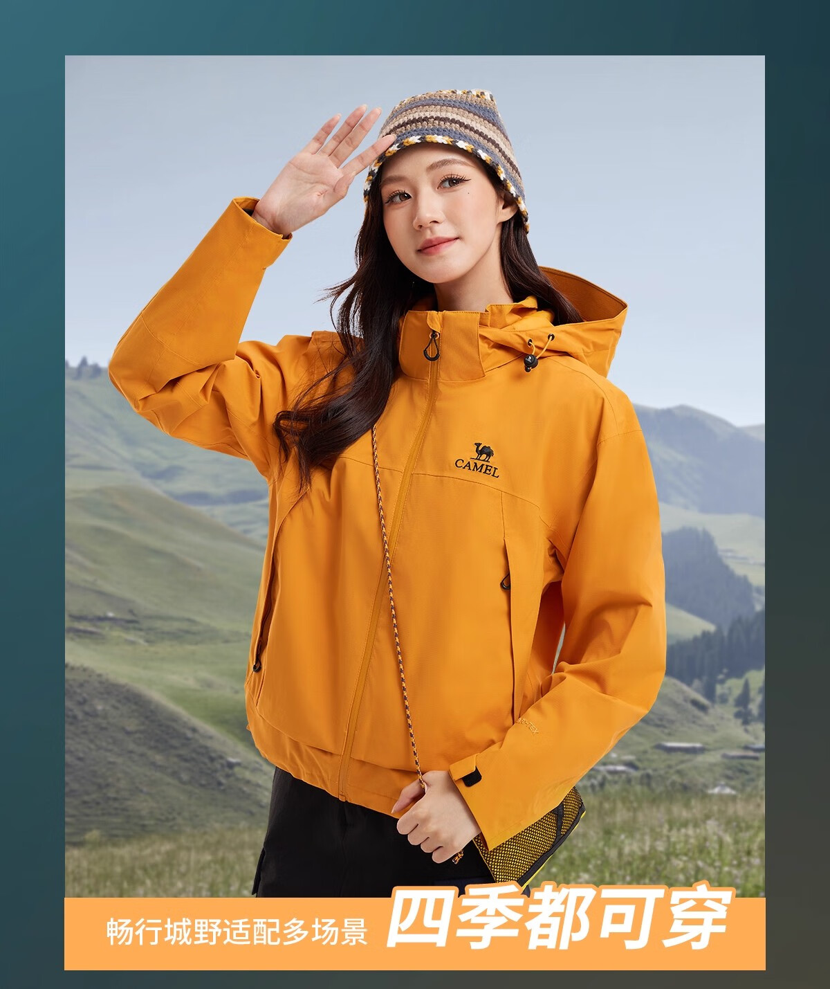 骆驼女装冲锋衣短款小个子外套2025新款三合一抓绒内胆防泼水防风夹克