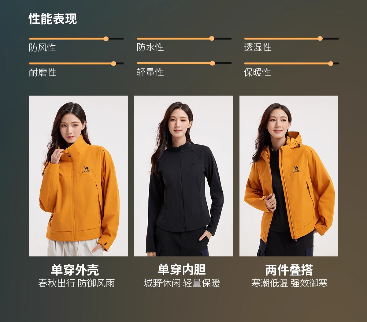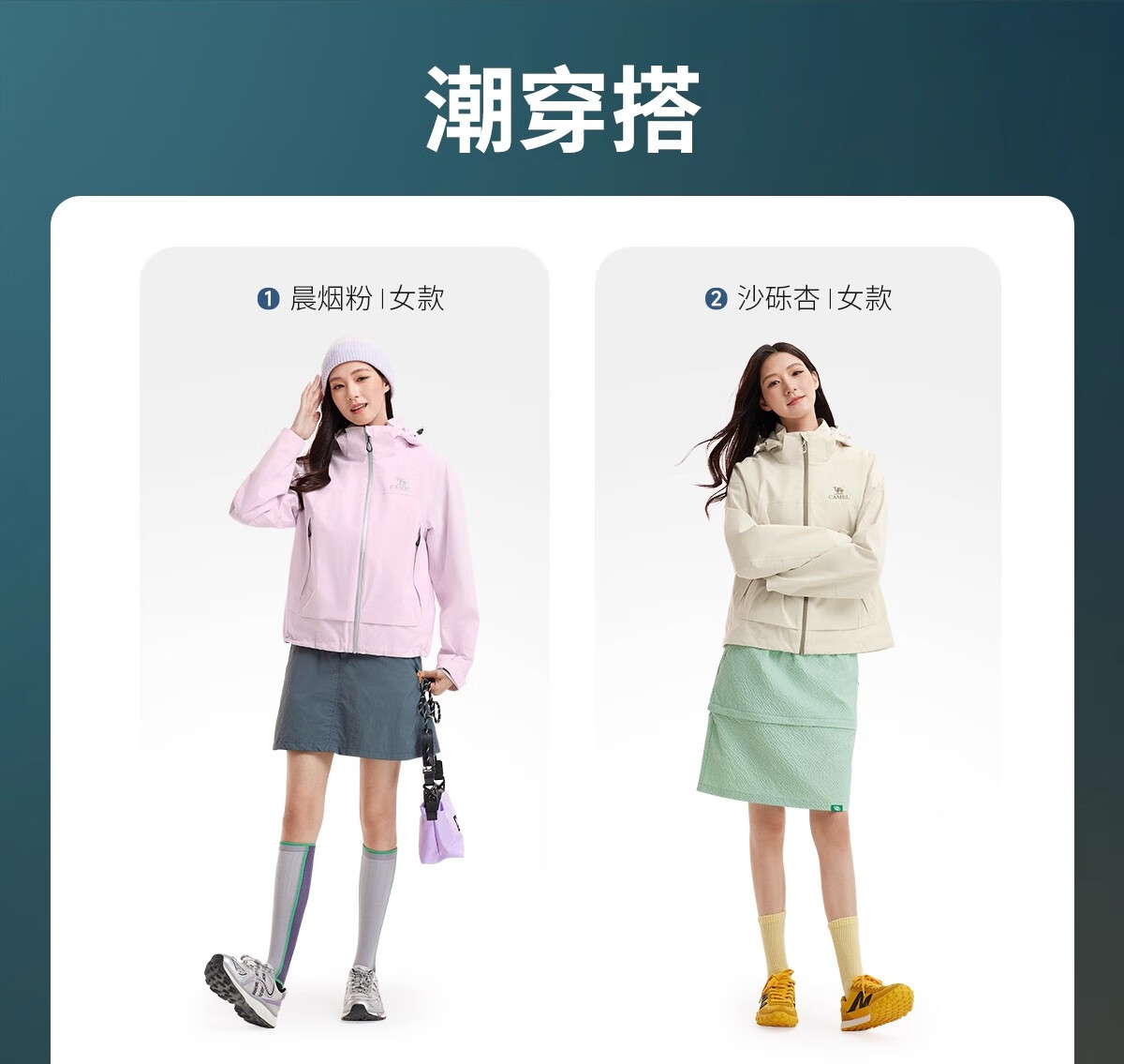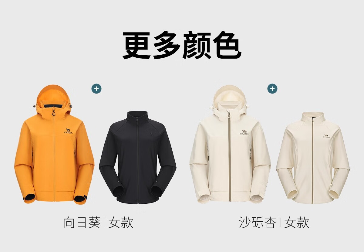 骆驼女装冲锋衣短款小个子外套2025新款三合一抓绒内胆防泼水防风夹克