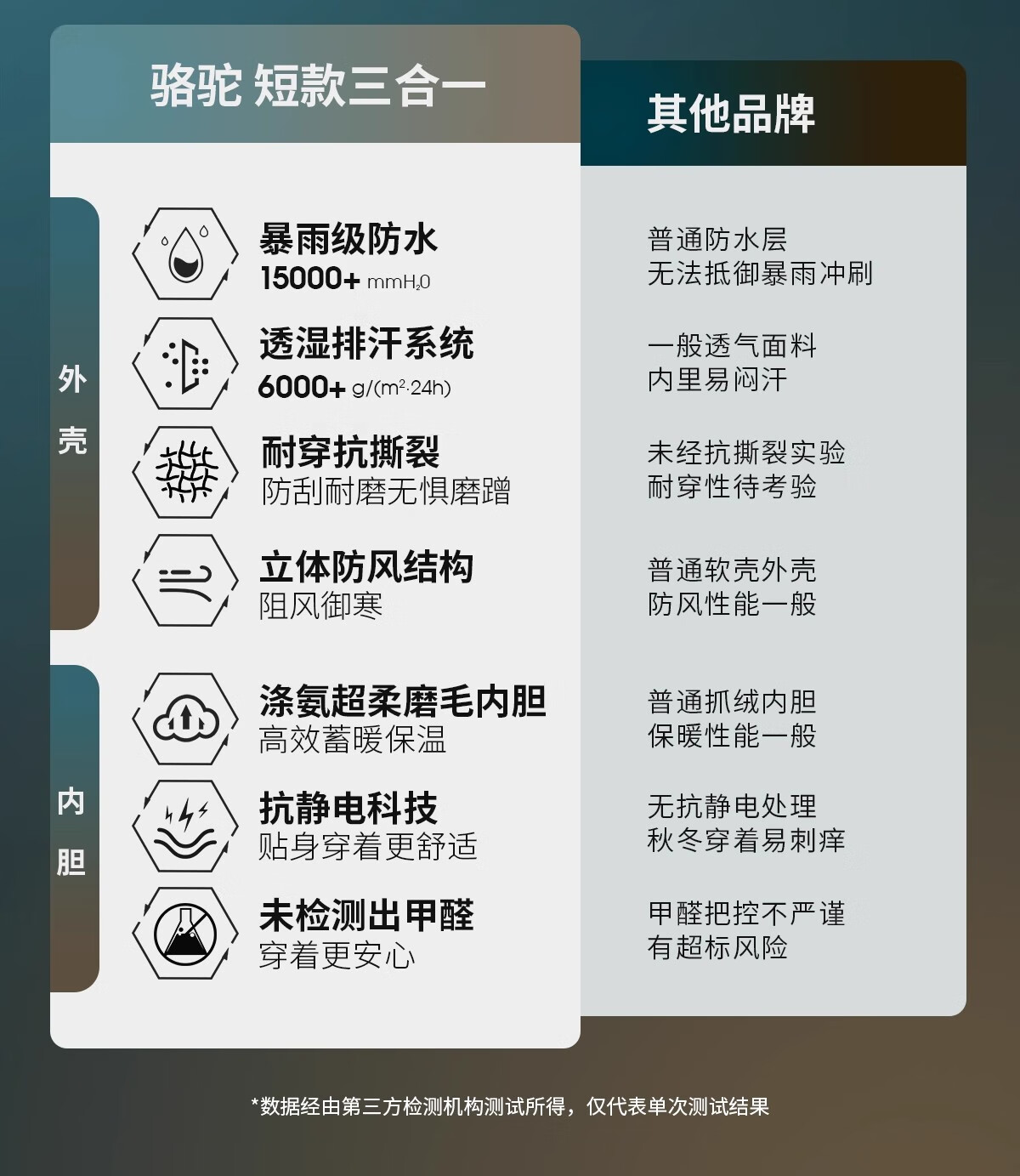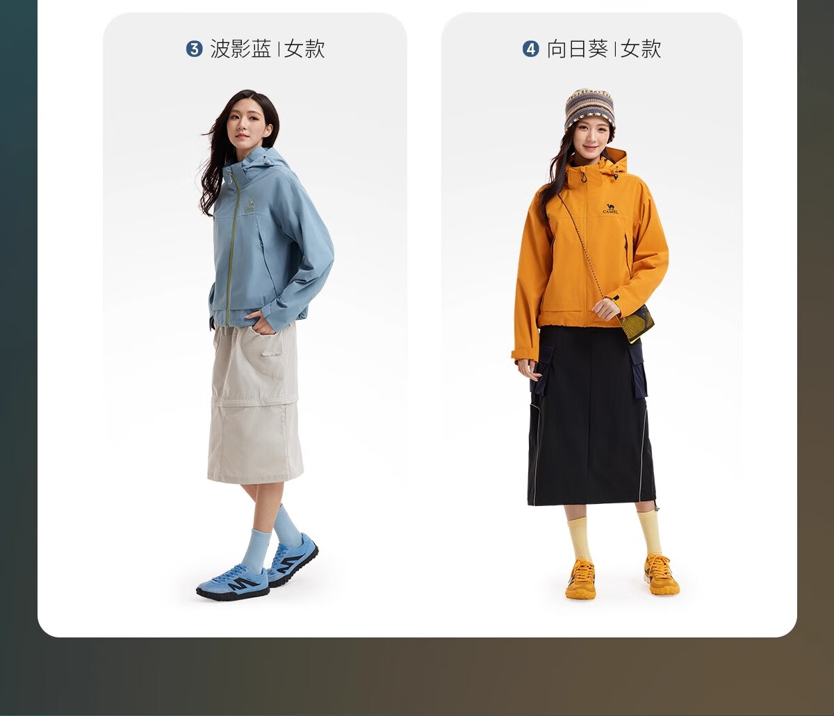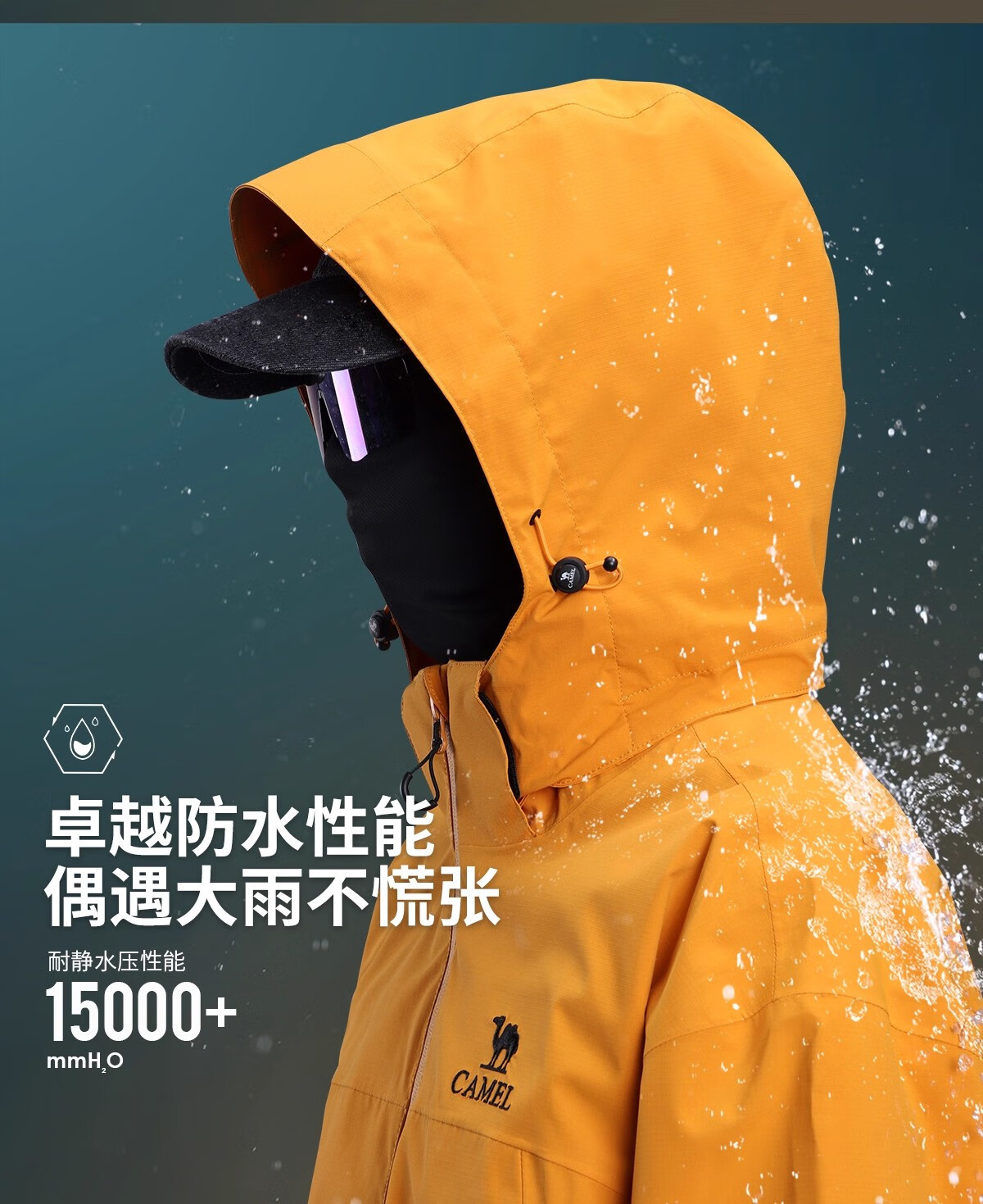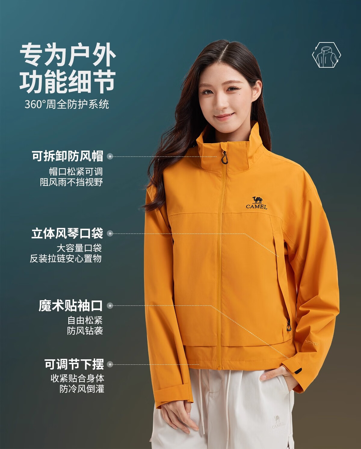 骆驼女装冲锋衣短款小个子外套2025新款三合一抓绒内胆防泼水防风夹克