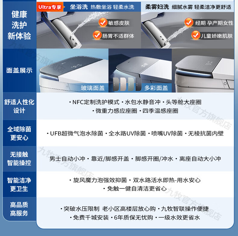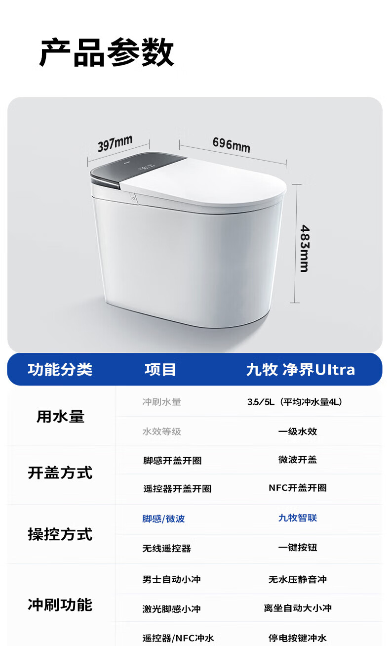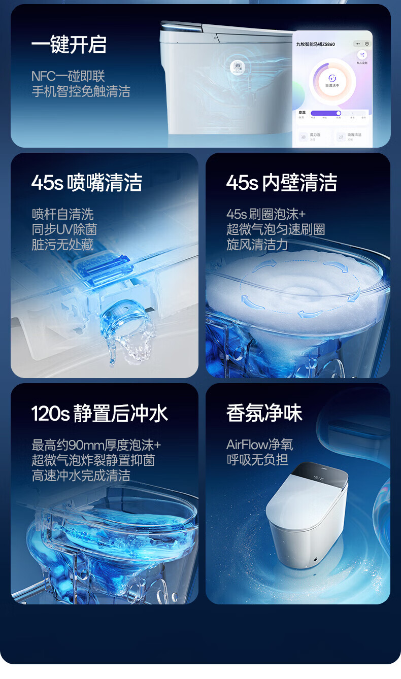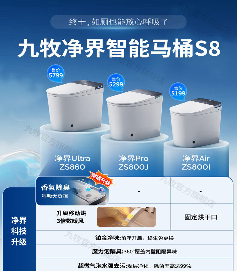 九牧(JOMOO)净界智能马桶S8免触魔力泡坐便器无水压限制马桶 SP-不包安装 ZS800I净界Air【全域除菌】全能免触 400坑距【390以上选择】
