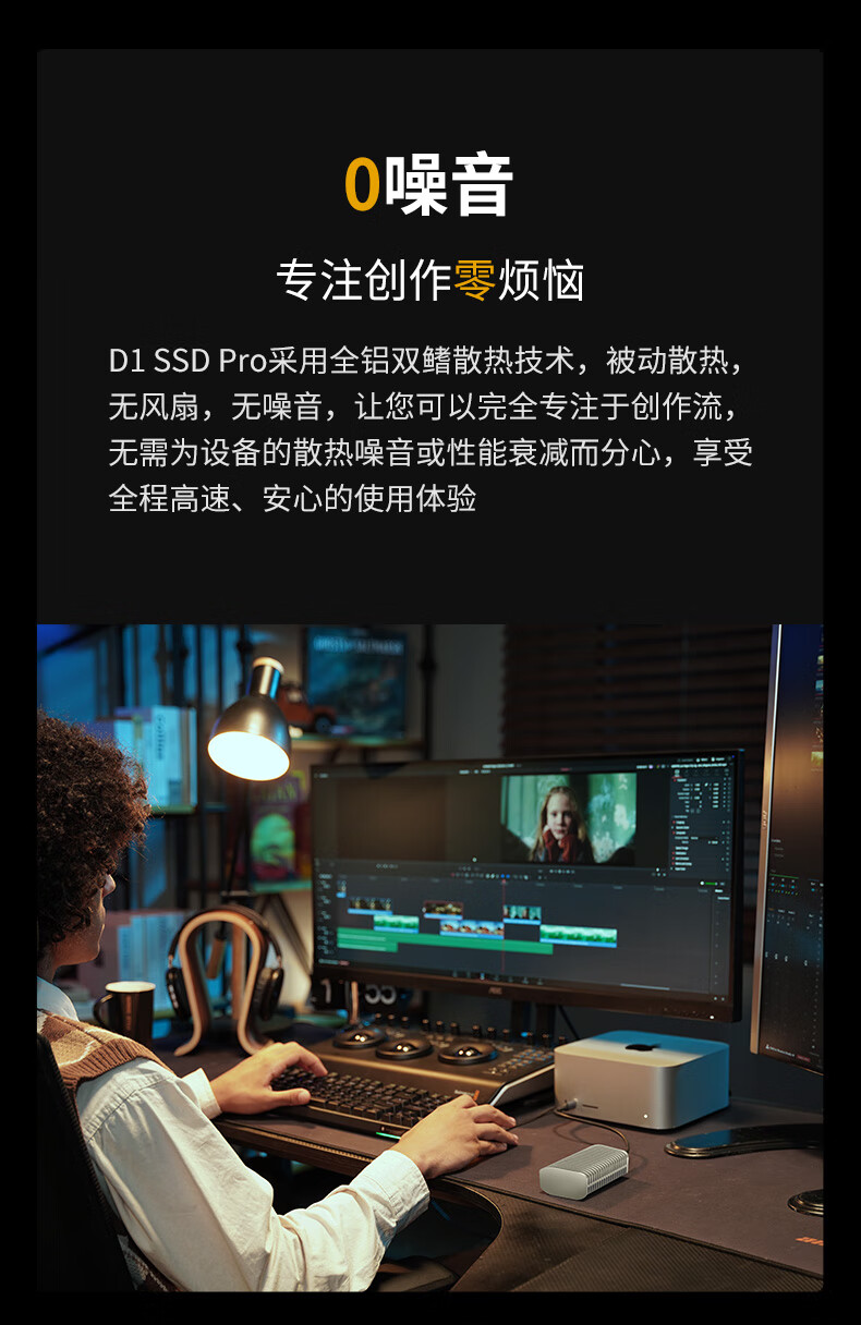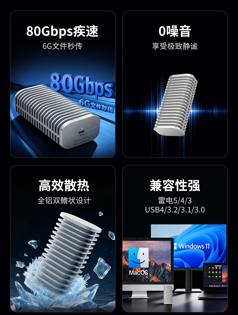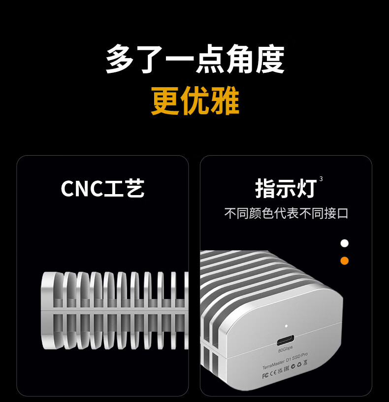 铁威马(TERRA MASTER)D1 SSD Pro 80Gbps硬盘盒M.2 NVMe移动硬盘盒兼容雷电5/4 USB4 适用Mac mini M4电脑SSD扩容