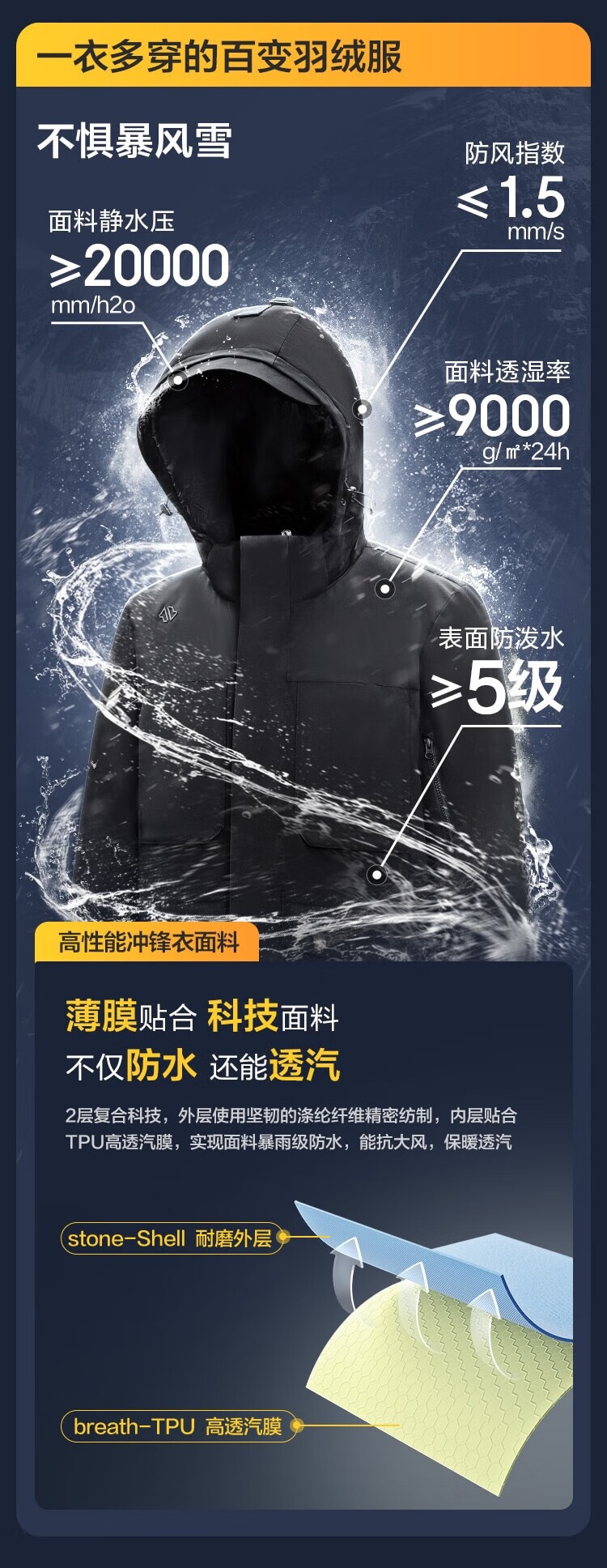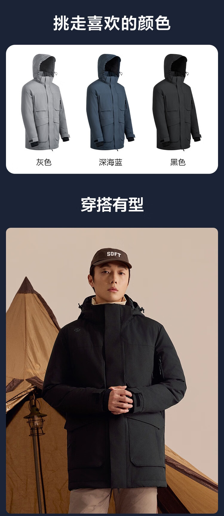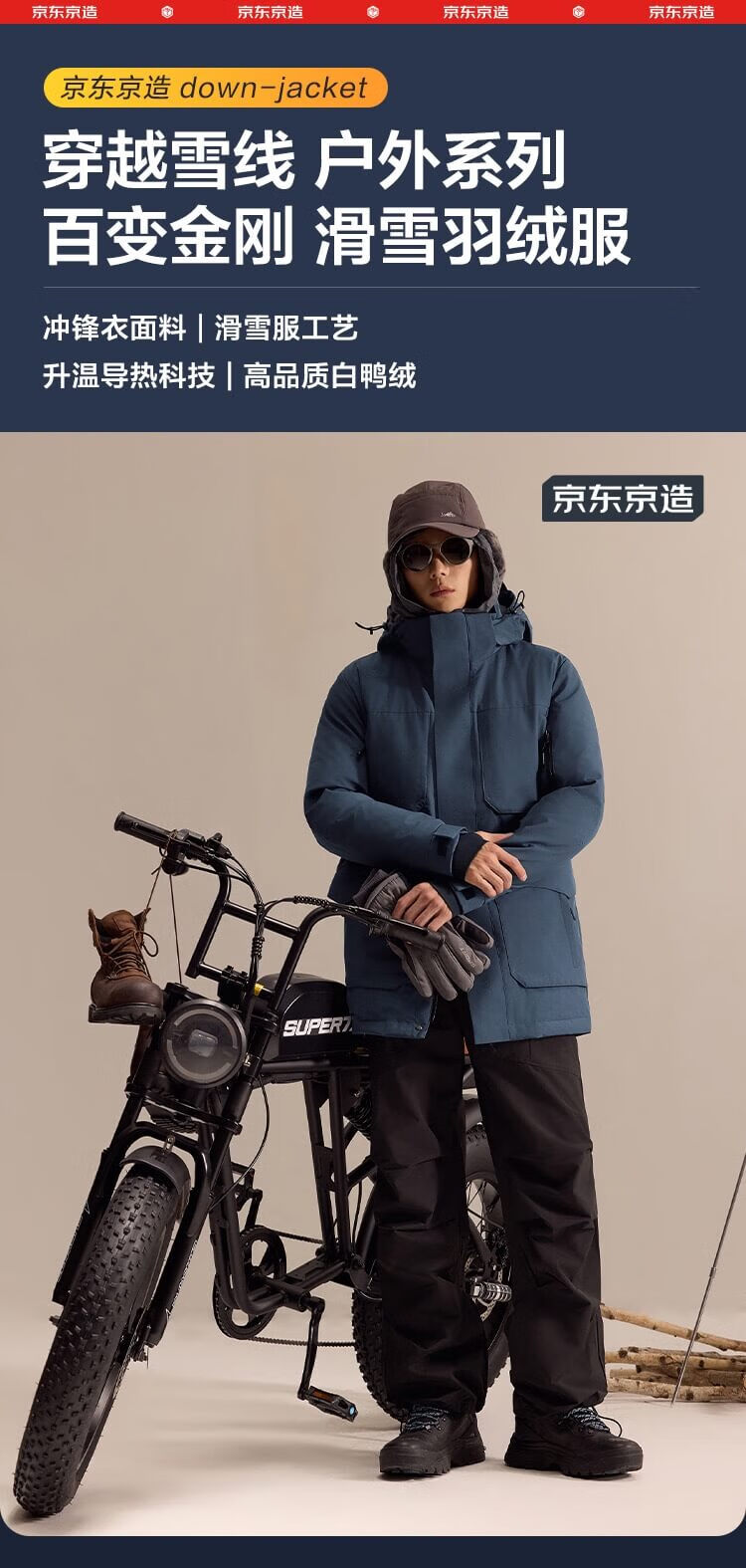 京东京造冬季短款连帽滑雪羽绒服户外派克服加厚保暖外套男 黑色 XL