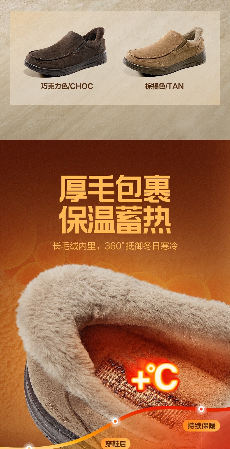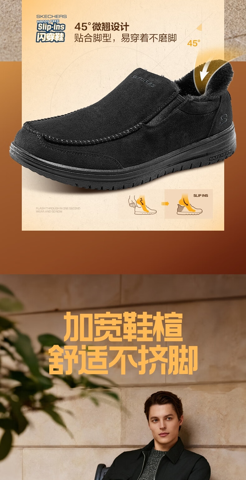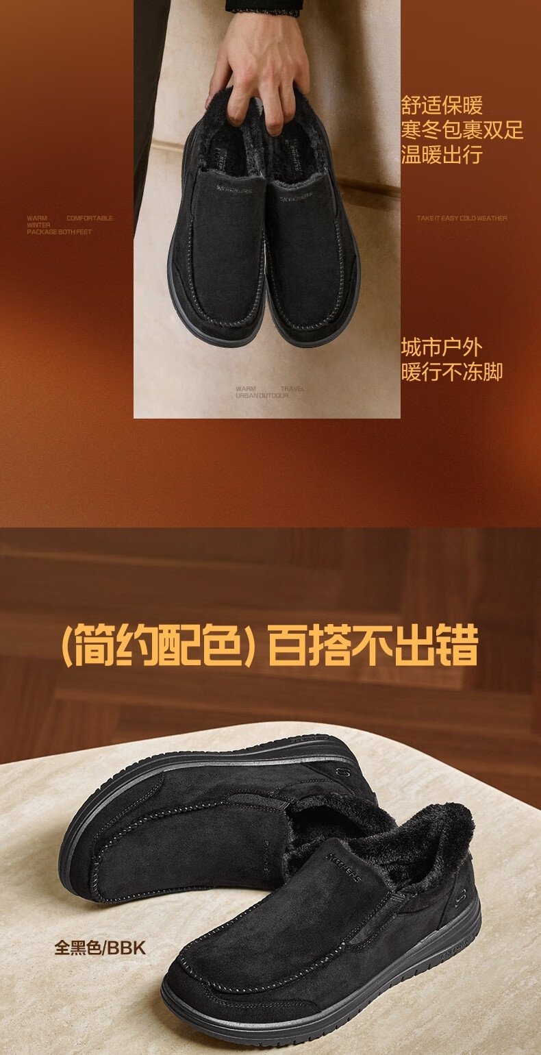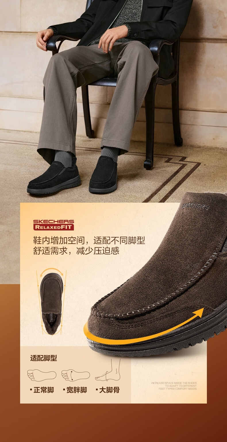斯凯奇(Skechers)新年礼物闪穿鞋男士休闲鞋冬保暖健步鞋宽头一脚蹬乐福鞋205606
