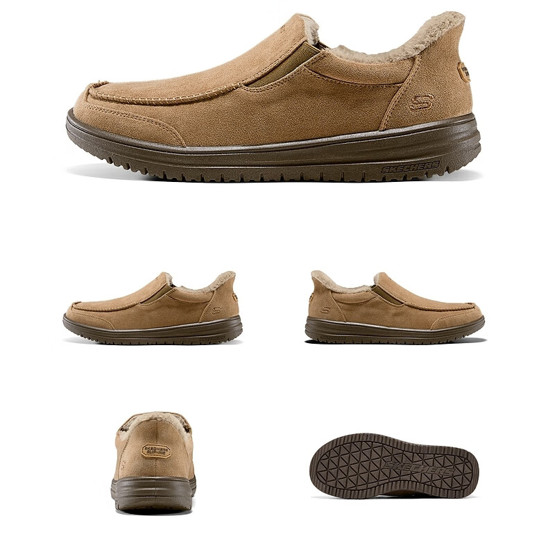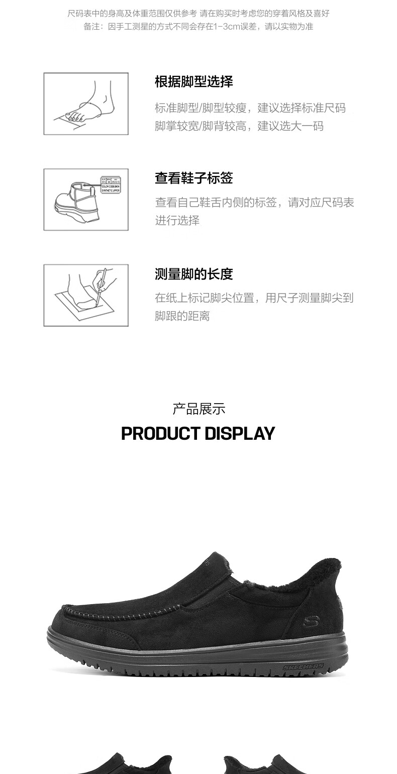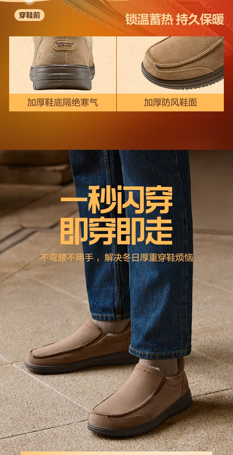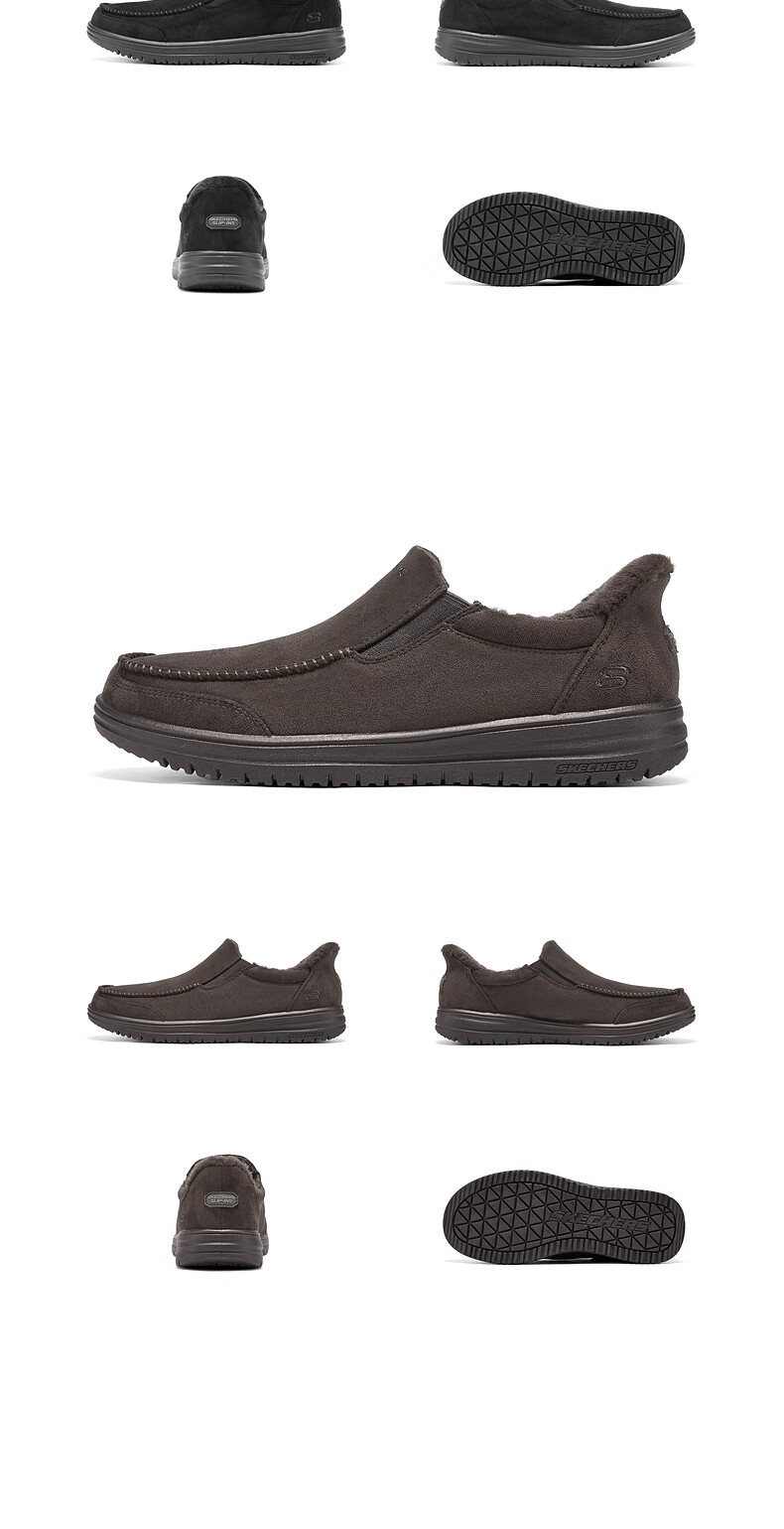 斯凯奇(Skechers)新年礼物闪穿鞋男士休闲鞋冬保暖健步鞋宽头一脚蹬乐福鞋205606