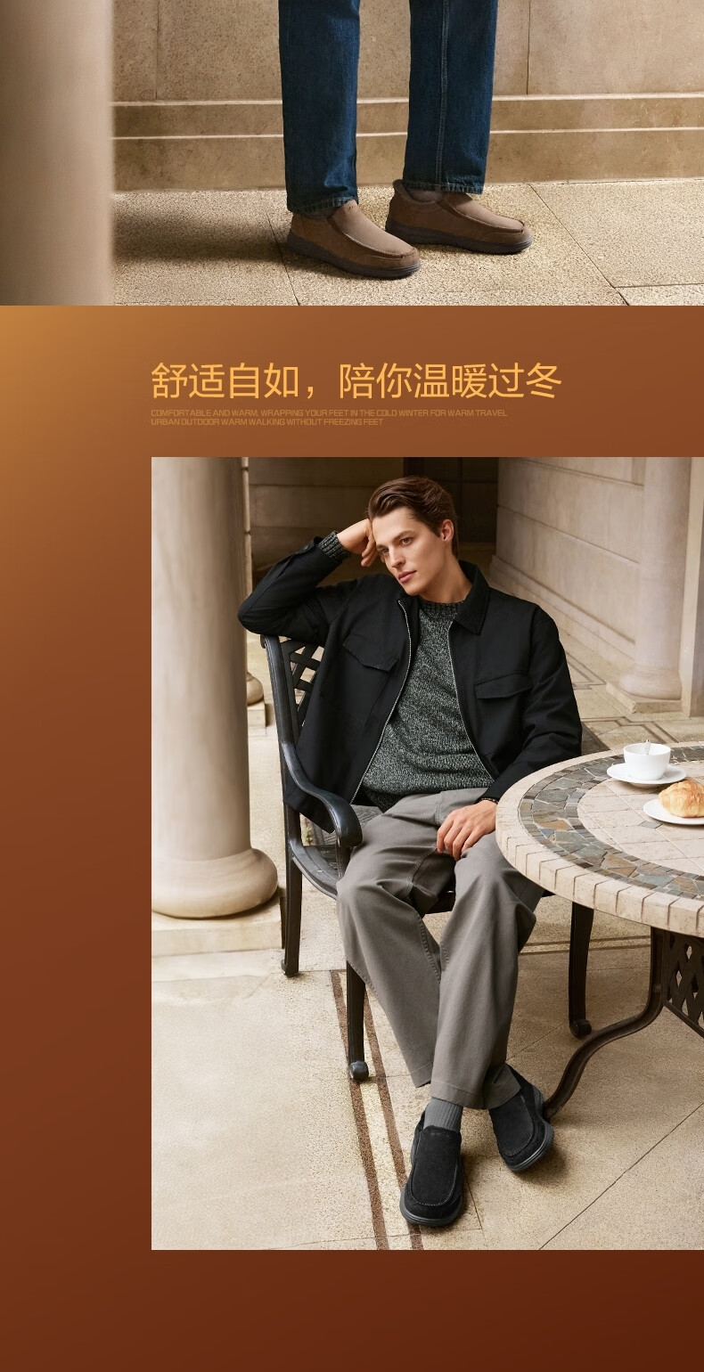 红蜻蜓男鞋子秋冬低帮青年皮鞋男加绒保暖商务休闲鞋男 C0191257-2