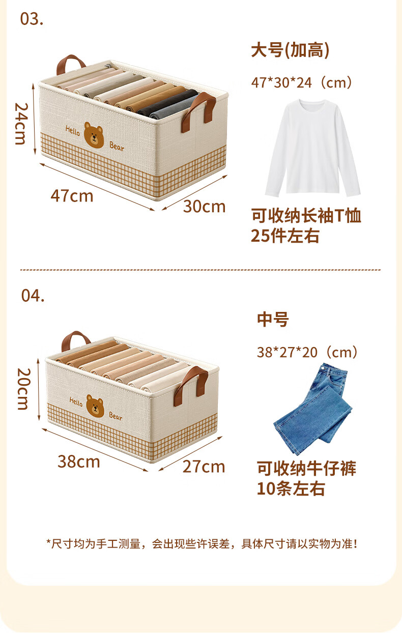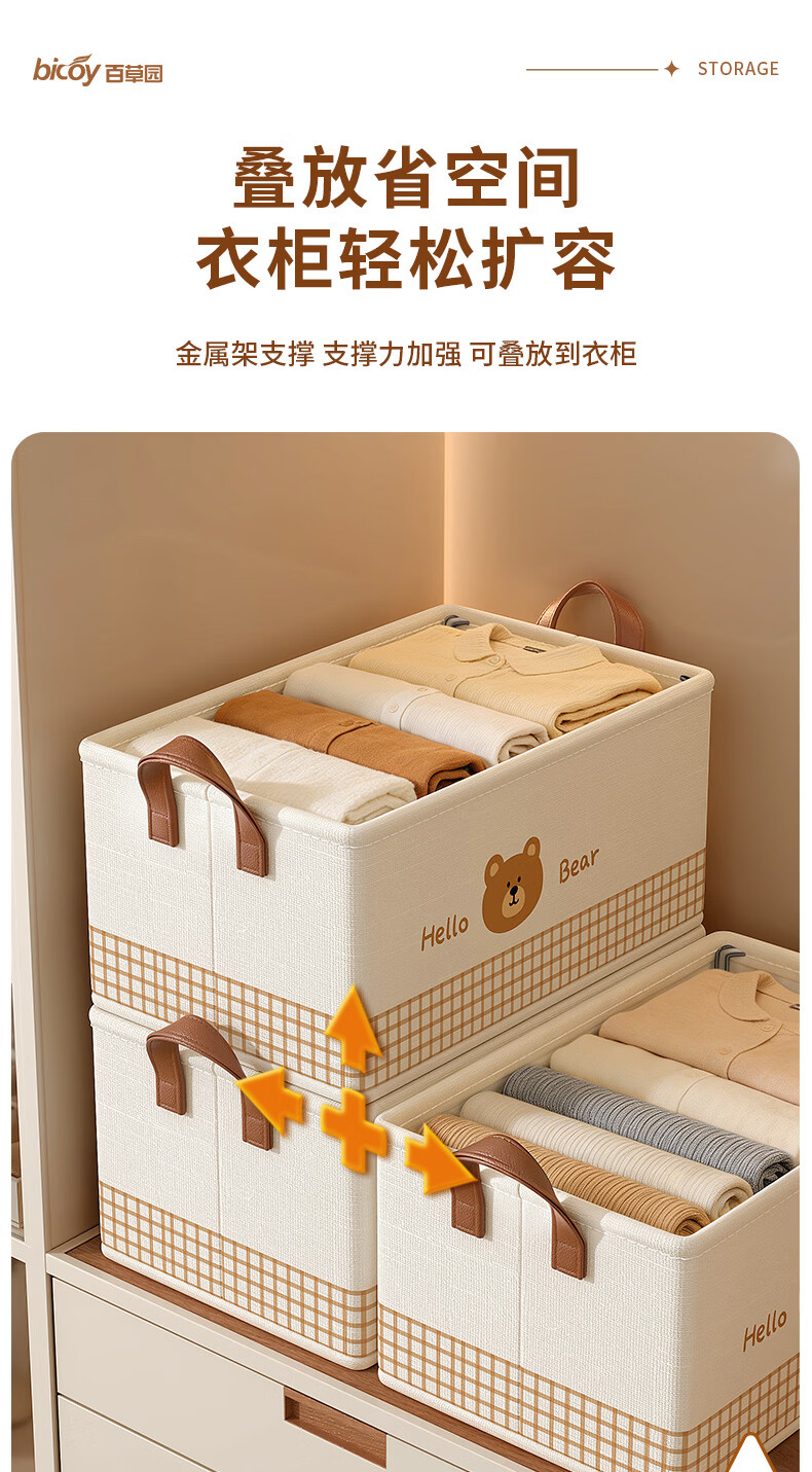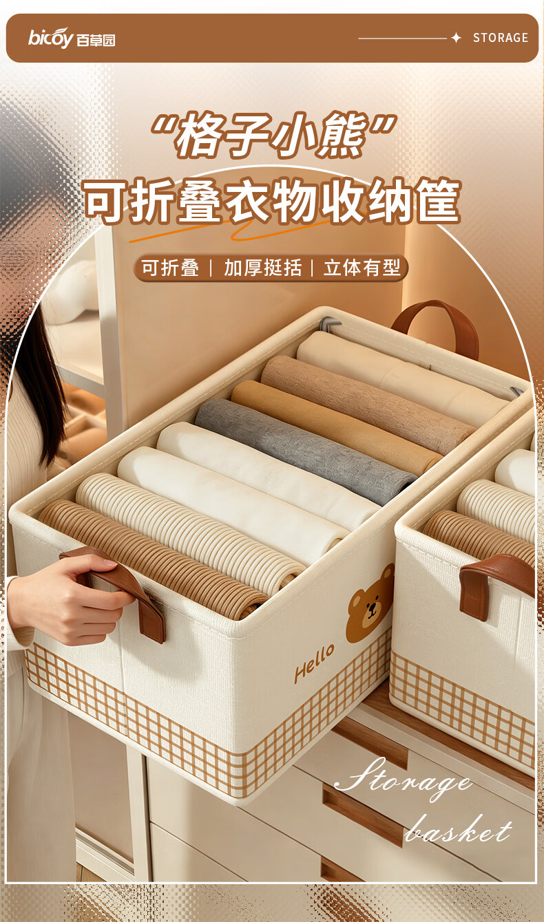 百草园收纳箱衣服裤子收纳盒筐布艺衣柜收纳折叠分层整理分隔神器大号