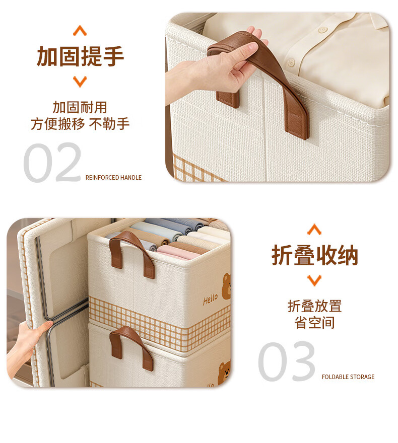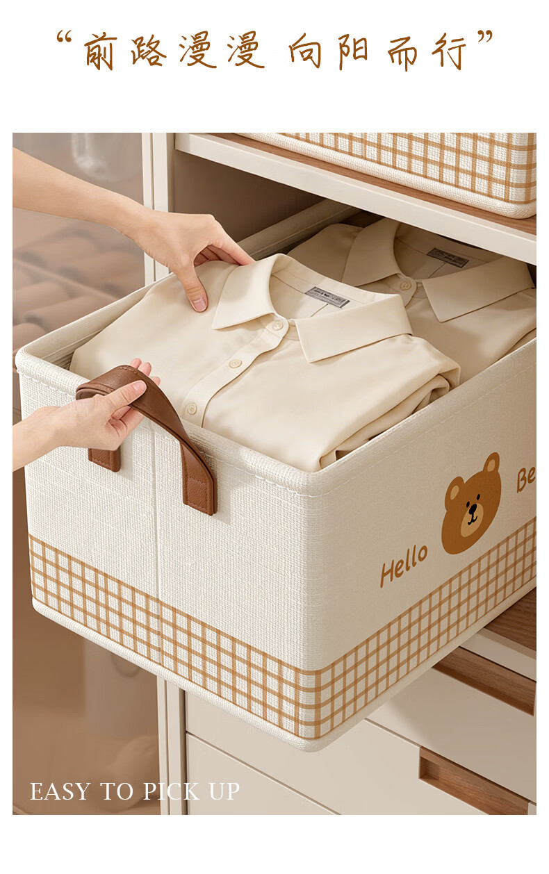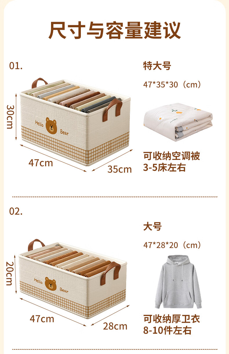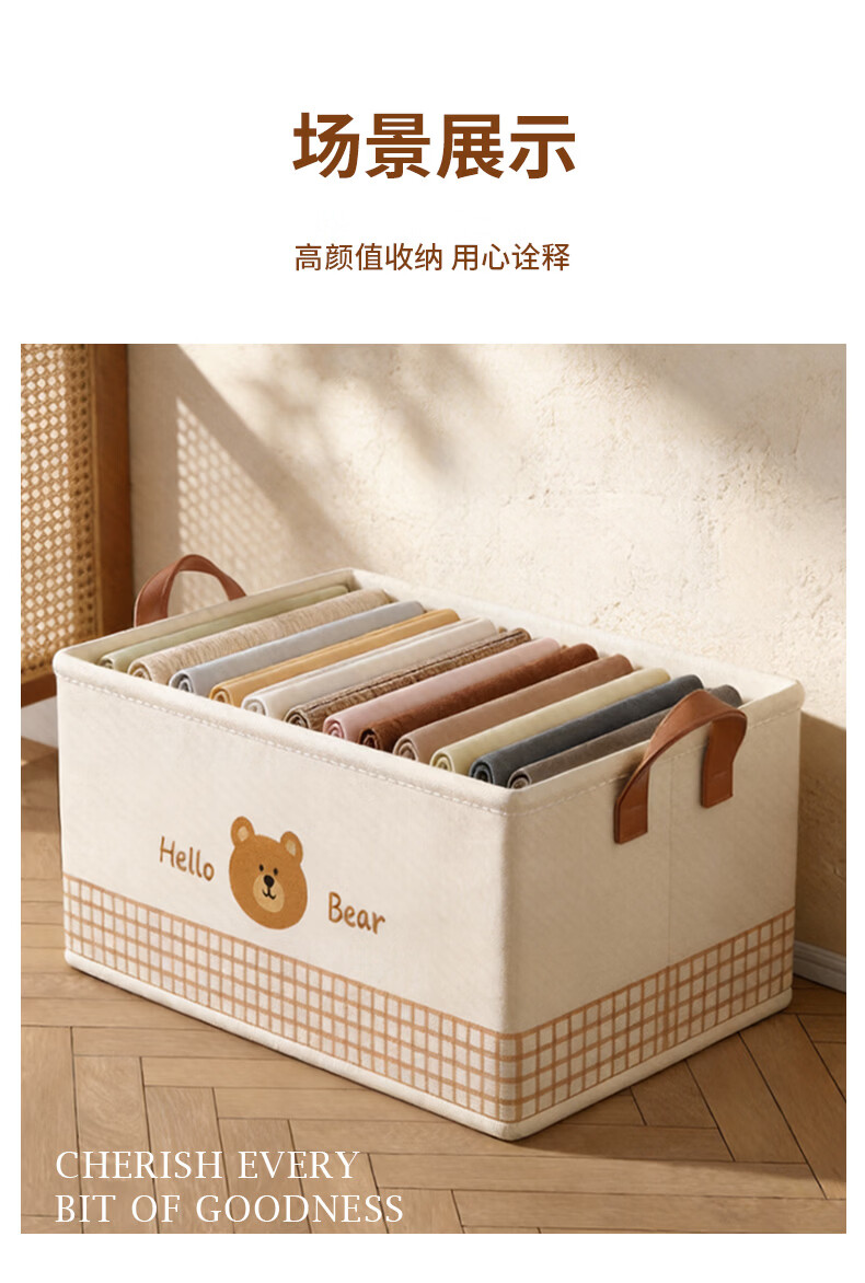 百草园收纳箱衣服裤子收纳盒筐布艺衣柜收纳折叠分层整理分隔神器大号