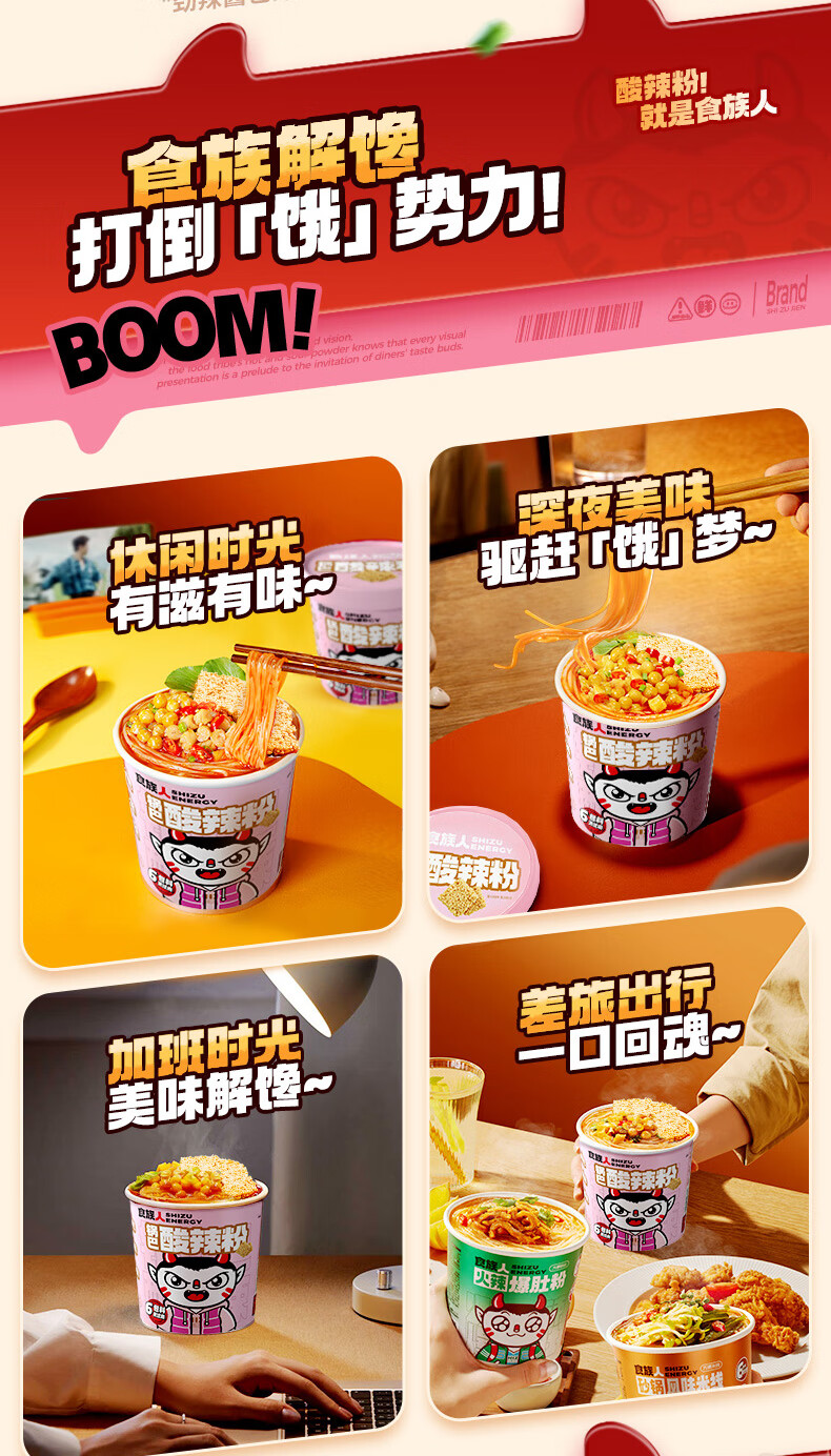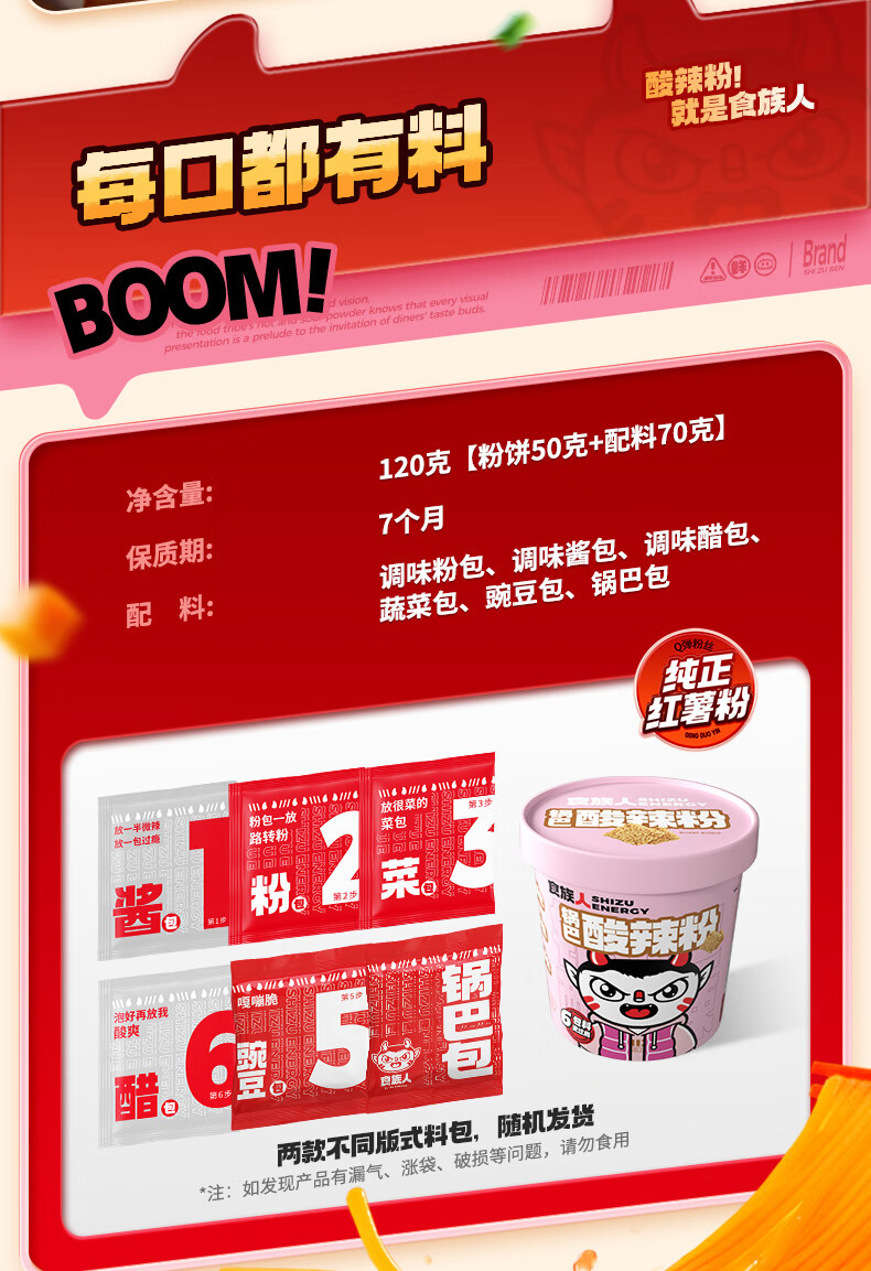 食族人酸辣粉休闲方便食品速食冲泡夜宵 【6桶】定制酸辣粉*3+锅巴酸辣粉*3
