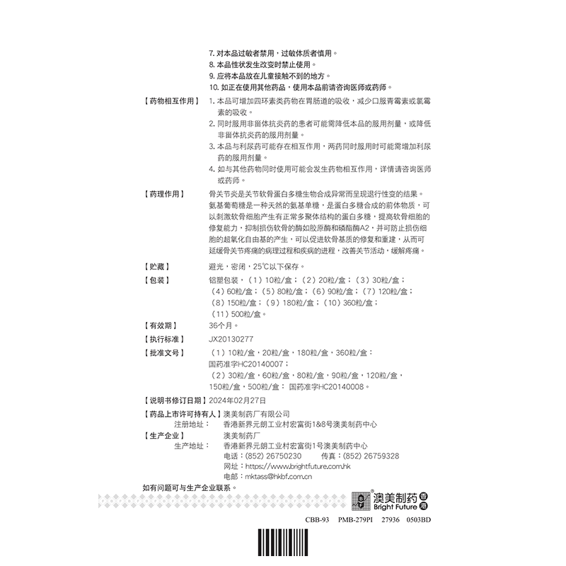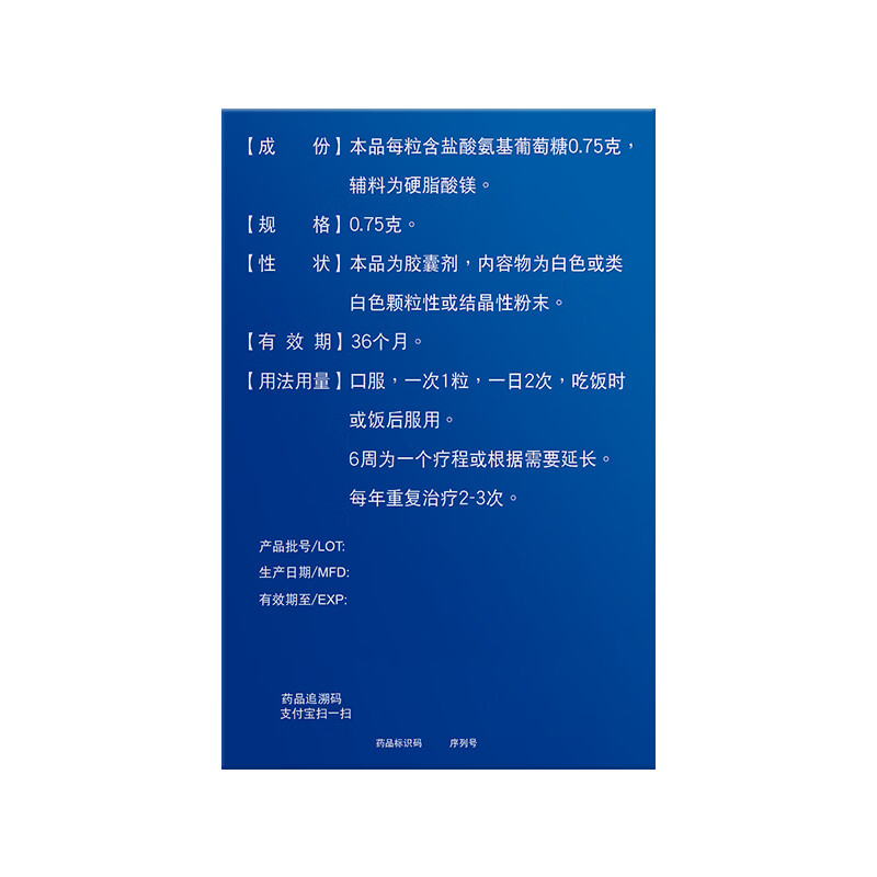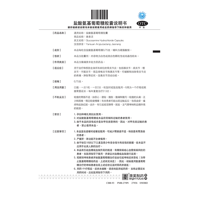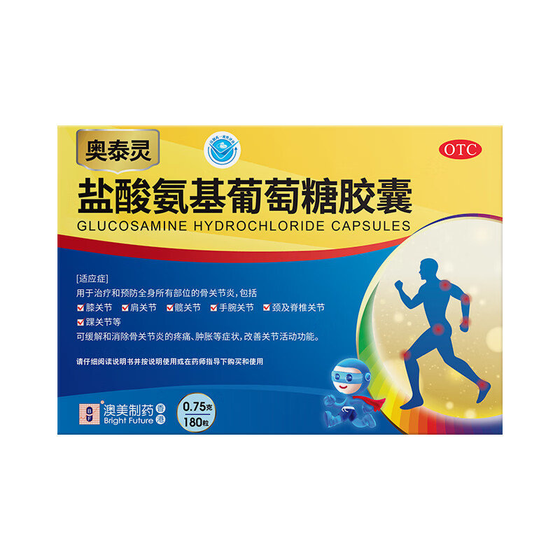 奥泰灵 盐酸氨基葡萄糖胶囊 0.75g*180粒 氨糖 治疗和预防全身所有部位的骨关节炎 澳美制药 香港制造